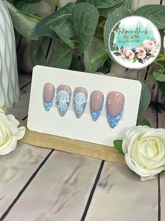 JELLYFISH - Set of 10 ocean French tip with jellyfish Nails
