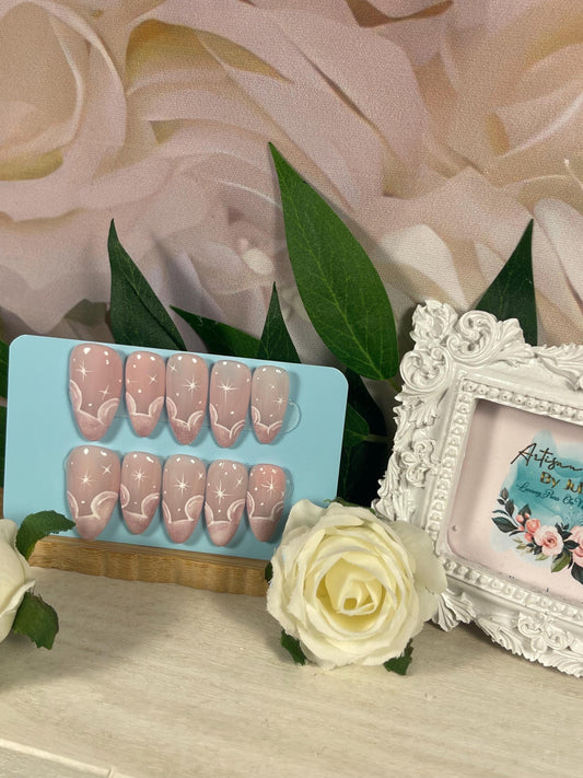 PURE MAGIC - Set of 10 Mother Of Pearl & Flower Mouse Ears Nails
