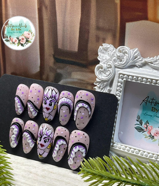URSULA - Set of 10 Little Mermaid, Sea Witch inspired Nails