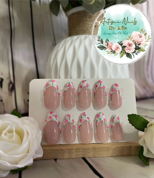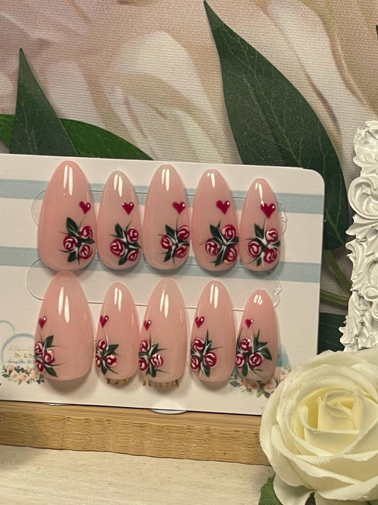 ETHEREAL ROSE - Set of 10 Vine & Rose Painted Nails