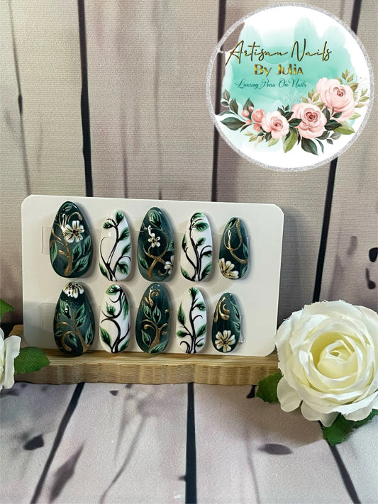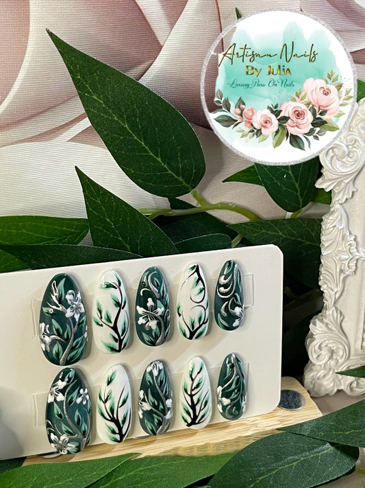 ETHEREAL COOL - Set of 10 Vine Painted Nails