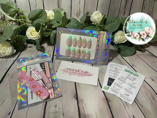 MEADOW SWEET - Set of 10 Turquoise French Tip Nails