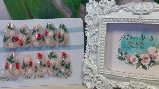 STRAWBERRY PICKIN' - Gel Press on Nails - Set of 10 Strawberry Plant Nails