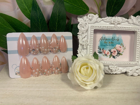 BEJEWELLED - Set of 10 Glazed Pearl & Diamond Nails