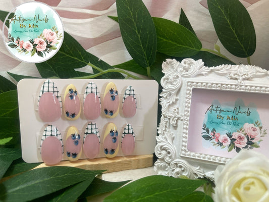 COTTAGE VIBES - Set of 10 gingham blueberry Nails