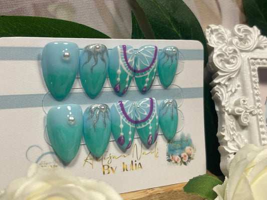 DREAMCATCHER BLUE - Set of 10 Dreamcatcher pearl ombre Nails