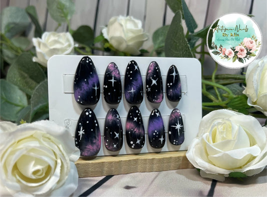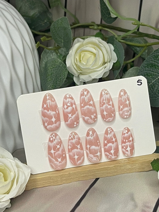 DREAMER GOLD - Set of 10 Cloud & Stars Nails - Chrome & Crystals