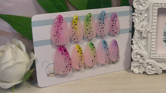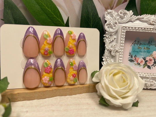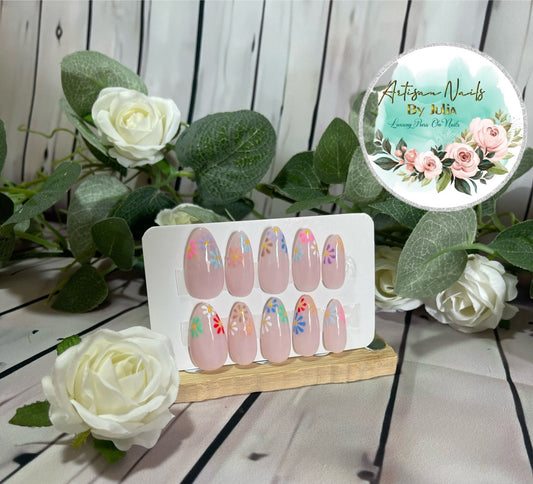 HIPPY CHIC - Juego de 10 uñas con punta floral