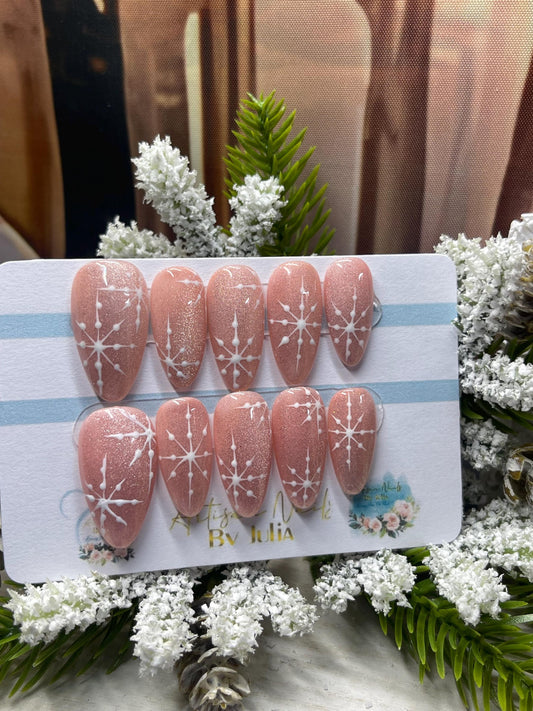 ICICLE - Juego de 10 uñas estilo copo de nieve de hielo glaseado
