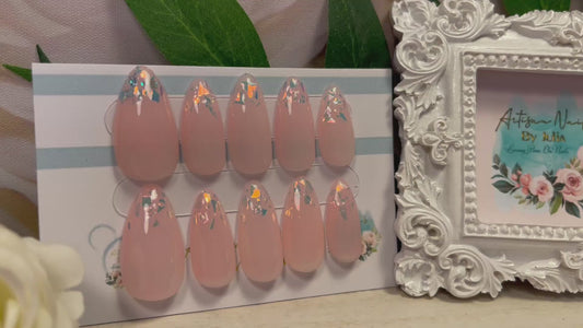 ICE SHARDS - Juego de 10 uñas de gel rosa con puntas de fragmentos de ópalo