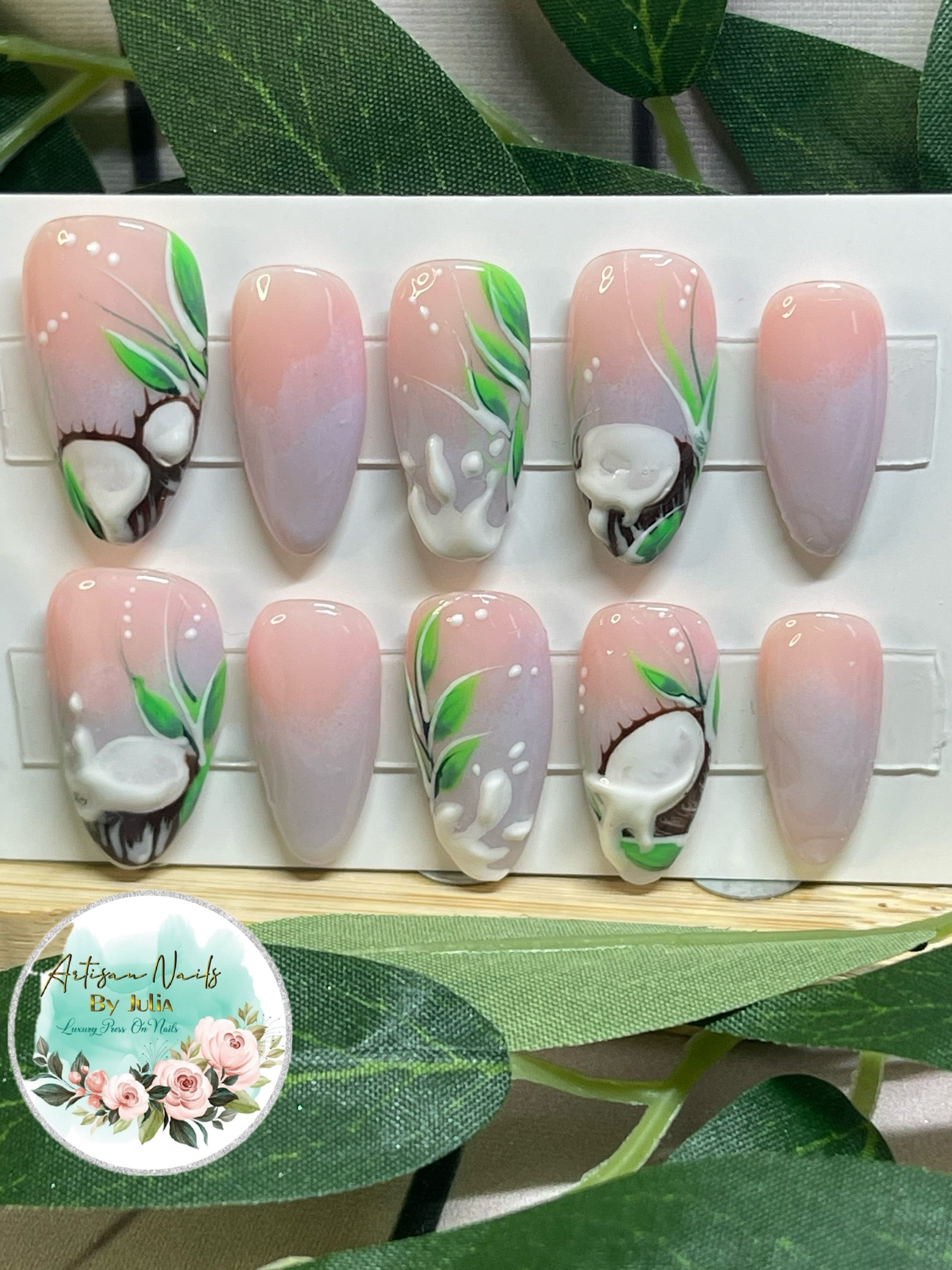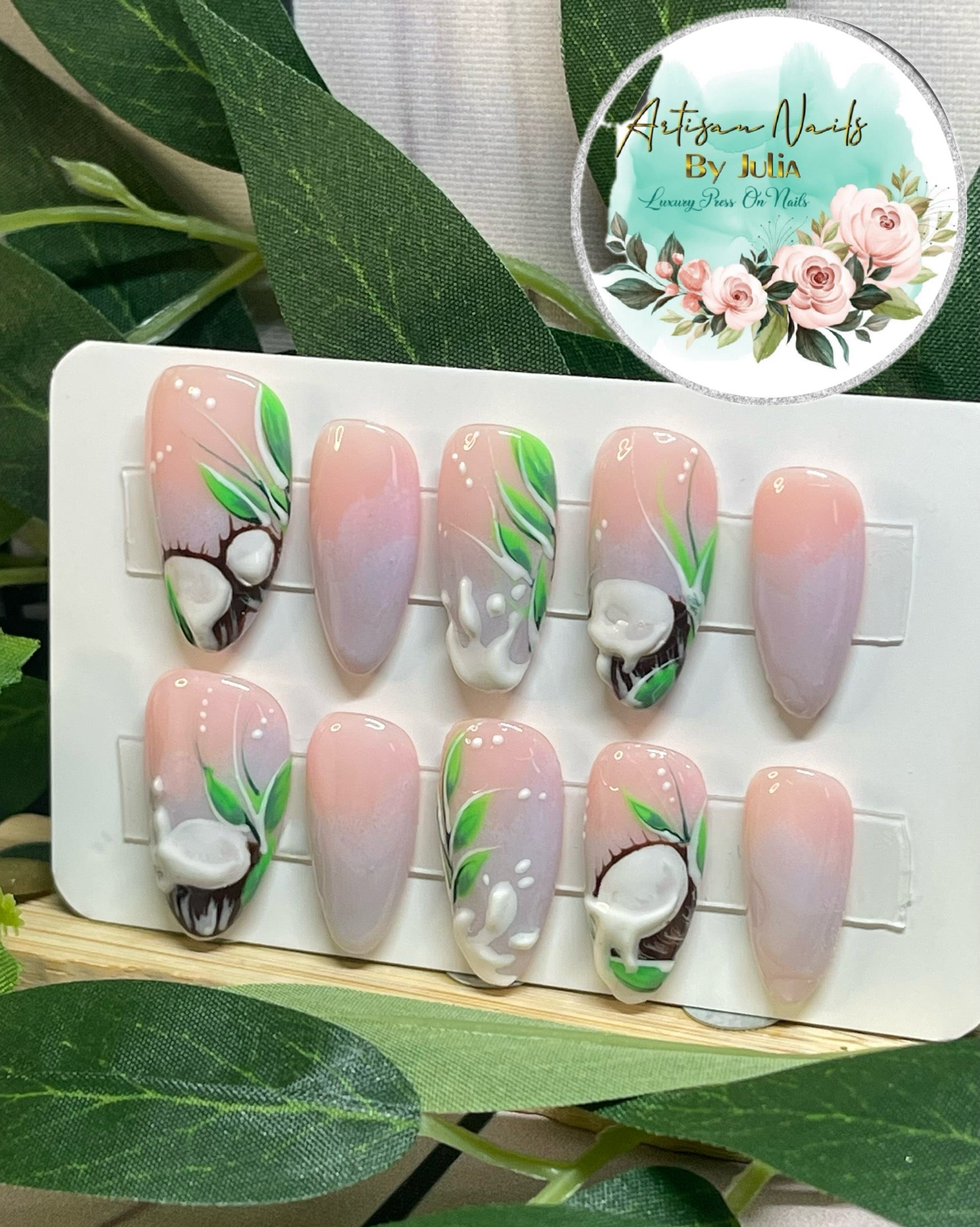 COCOS - Juego de 10 uñas de coco ombré 3D