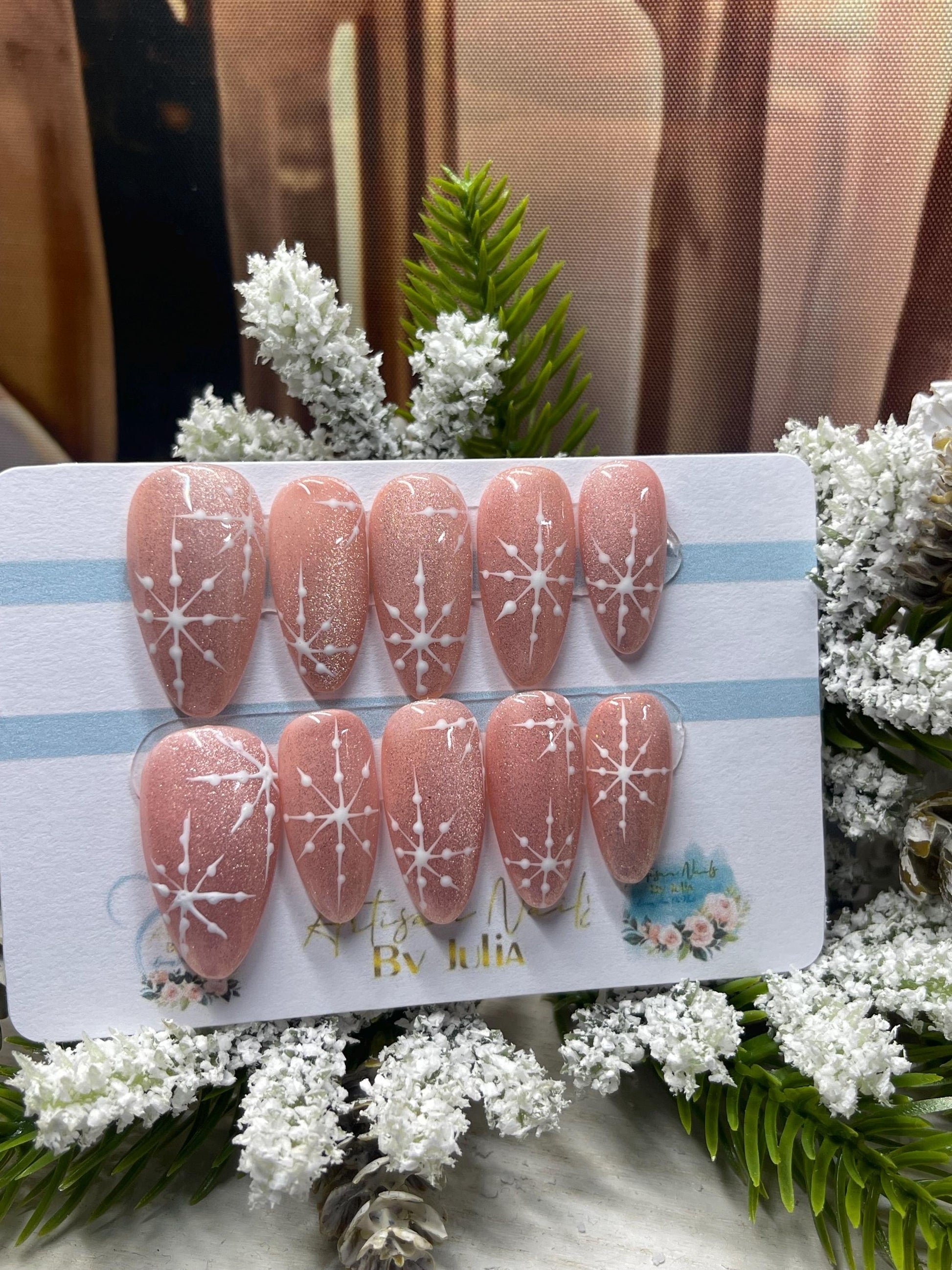 GRACEFUL - Juego de 10 uñas postizas con diseño de copos de nieve esmerilados
