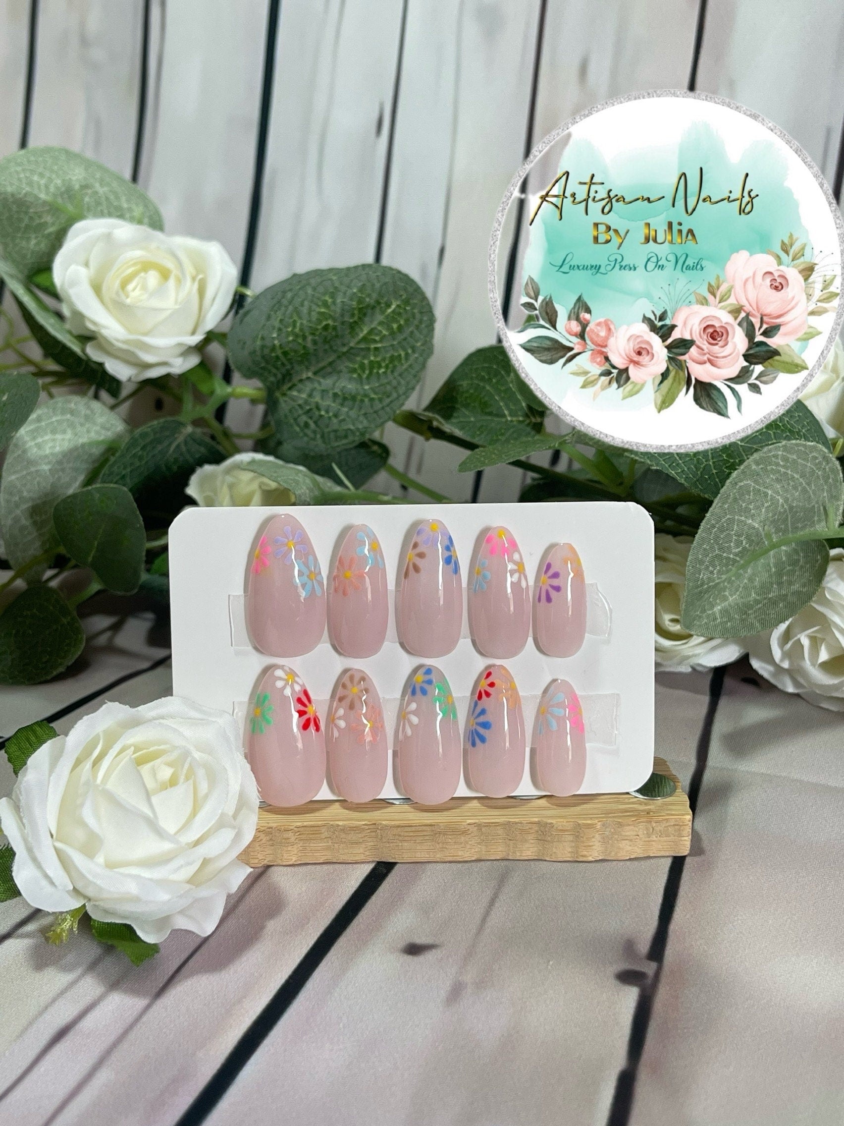 HIPPY CHIC - Juego de 10 uñas con punta floral