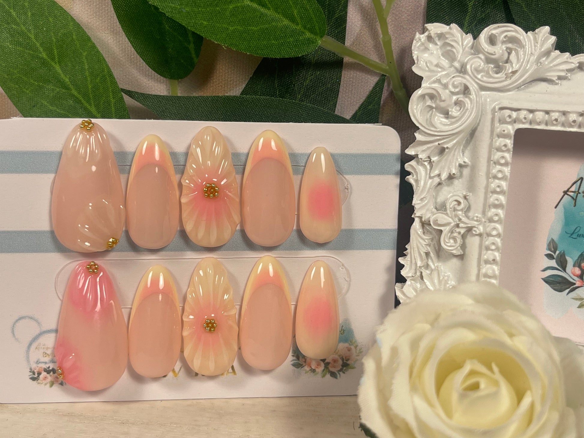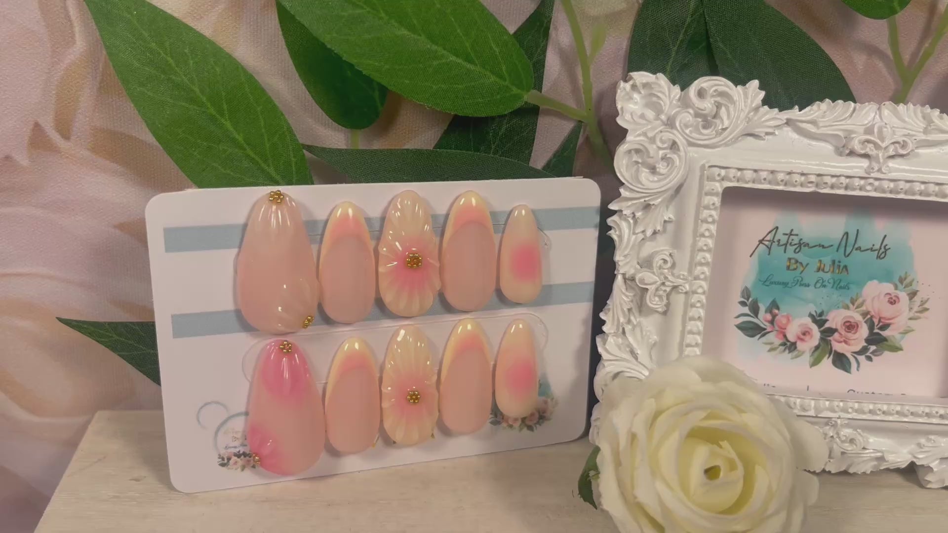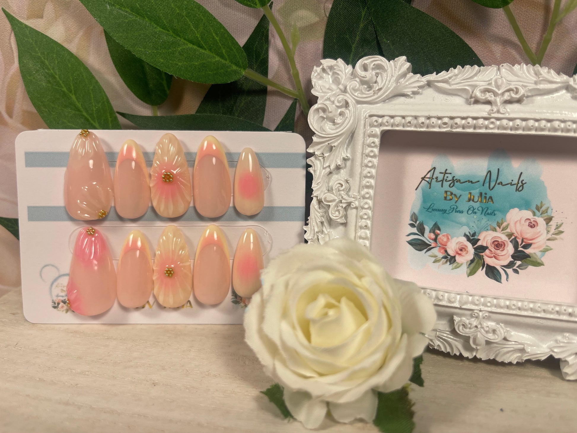 🌿Ten en cuenta que los colores pueden variar según la pantalla. Los diseños pueden presentar ligeras variaciones, ya que cada set se fabrica por encargo y se pinta a mano. Si necesitas ayuda, contáctame en info@artisannailsbyjulia.com .