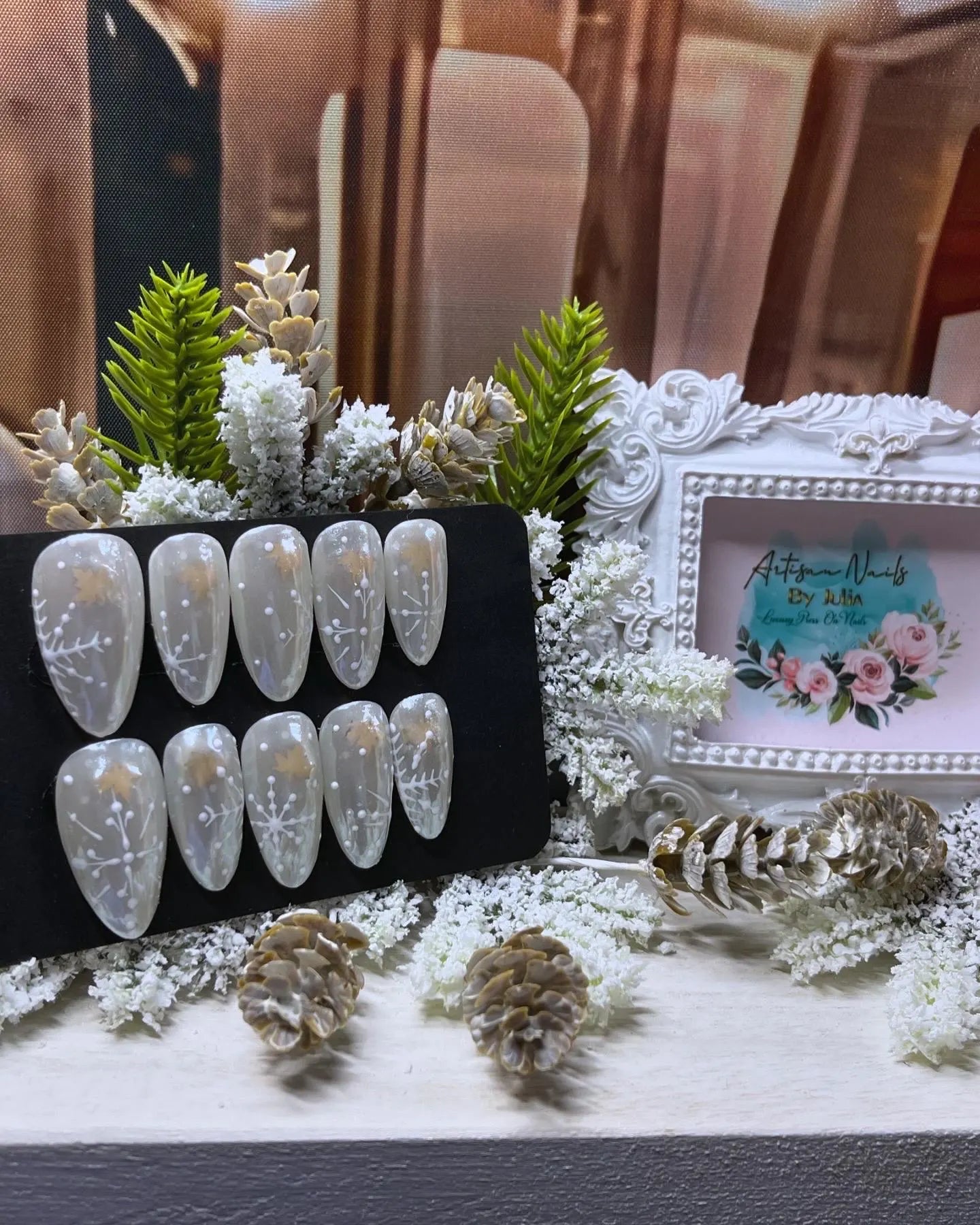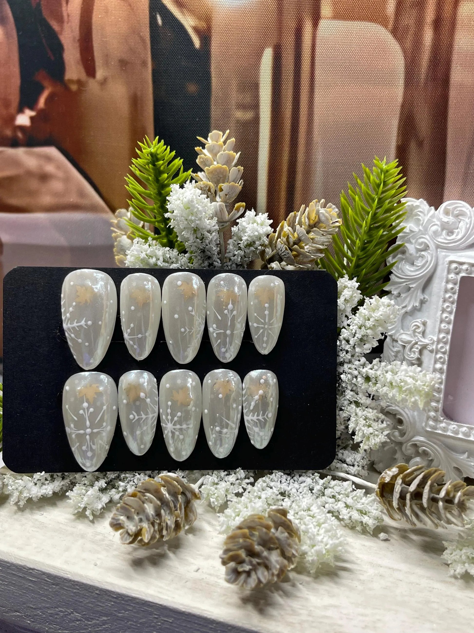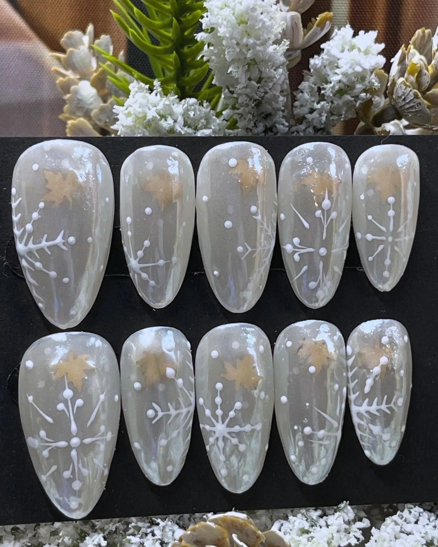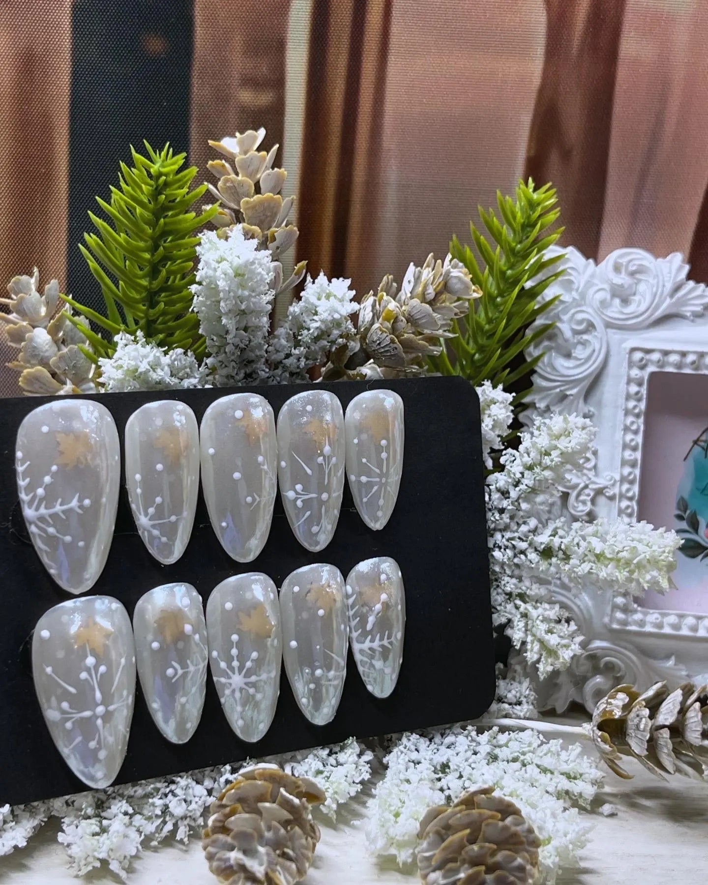 ICICLE - Juego de 10 uñas estilo copo de nieve de hielo glaseado