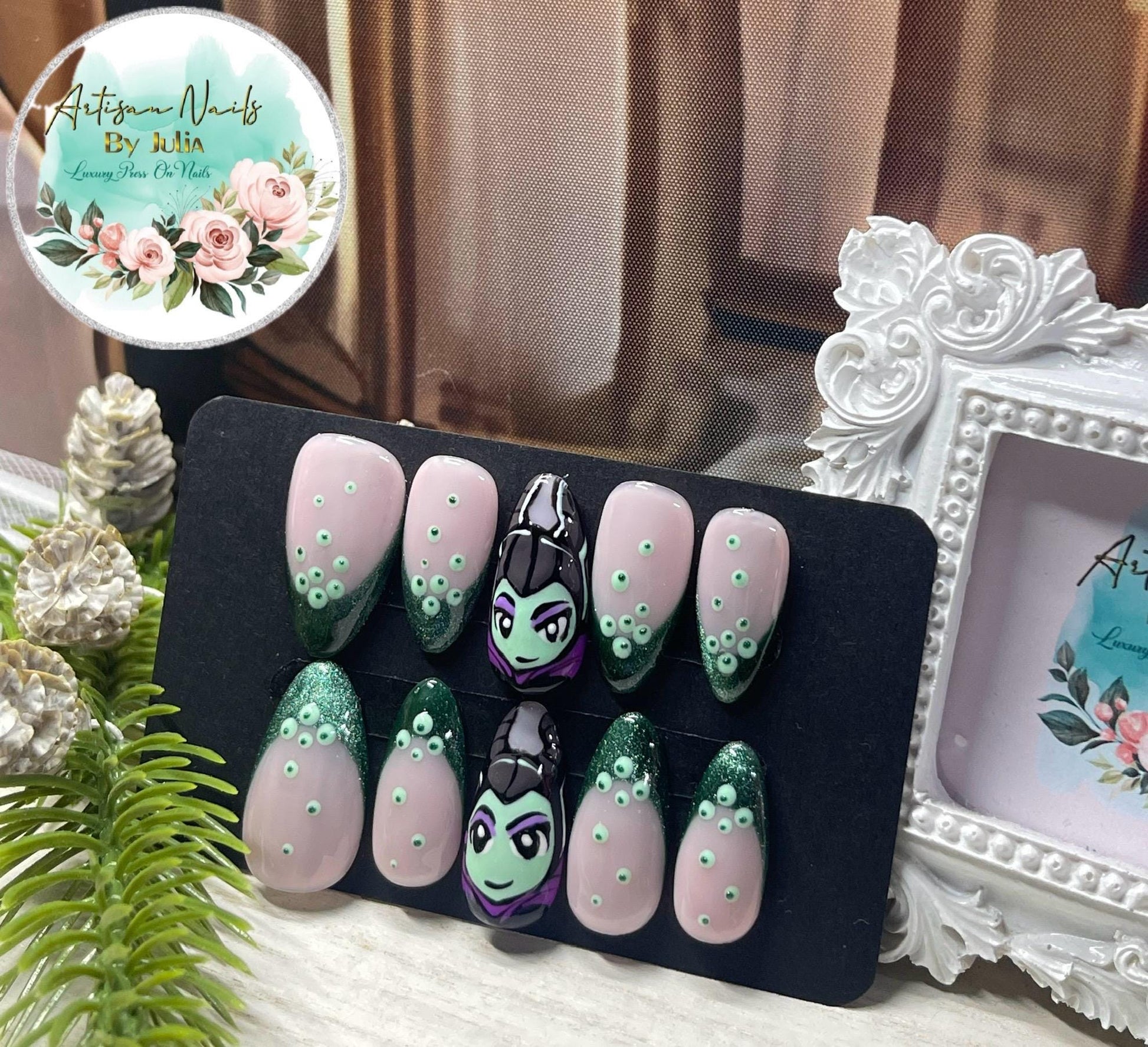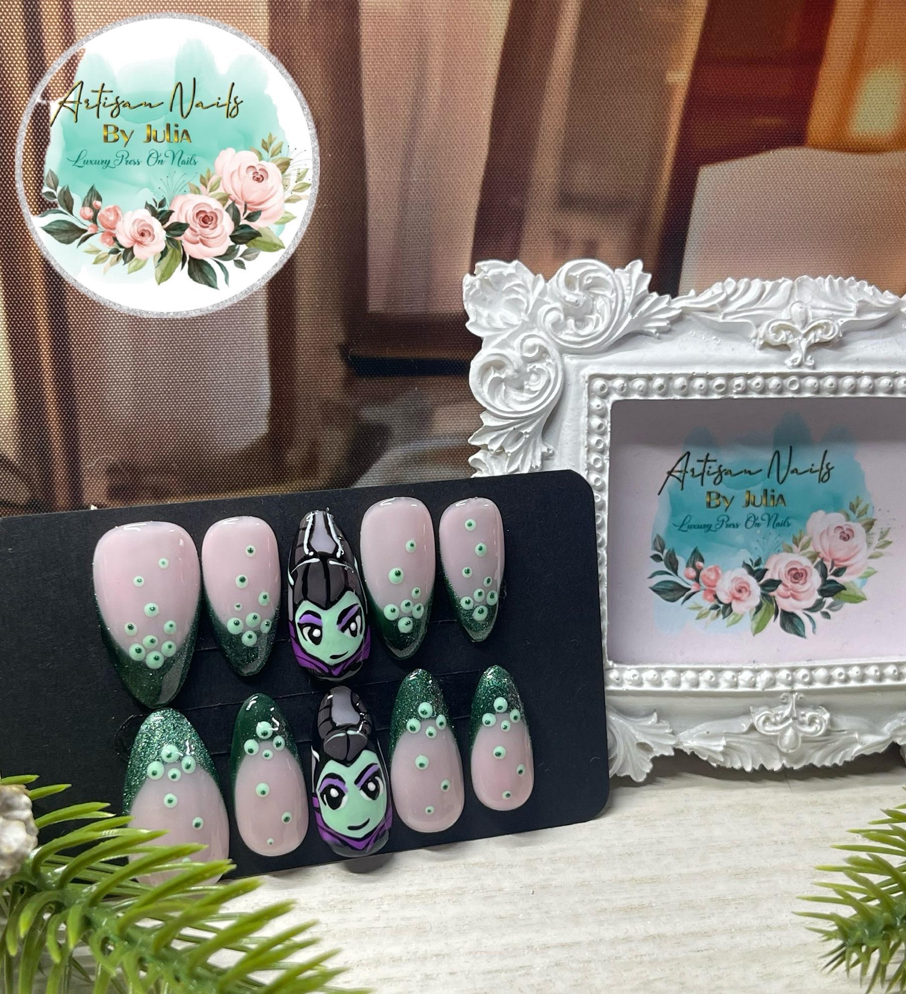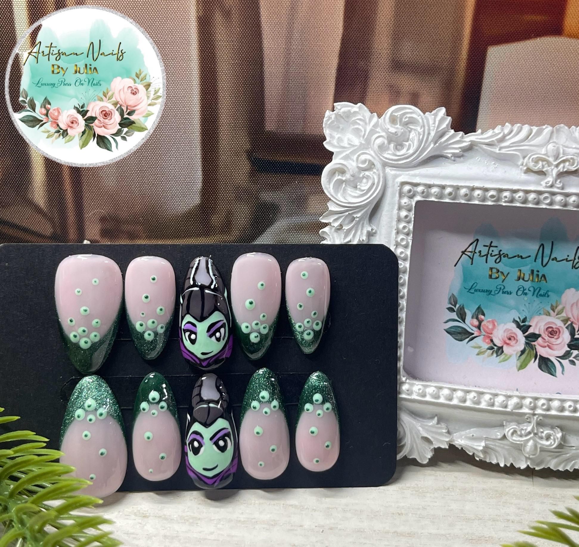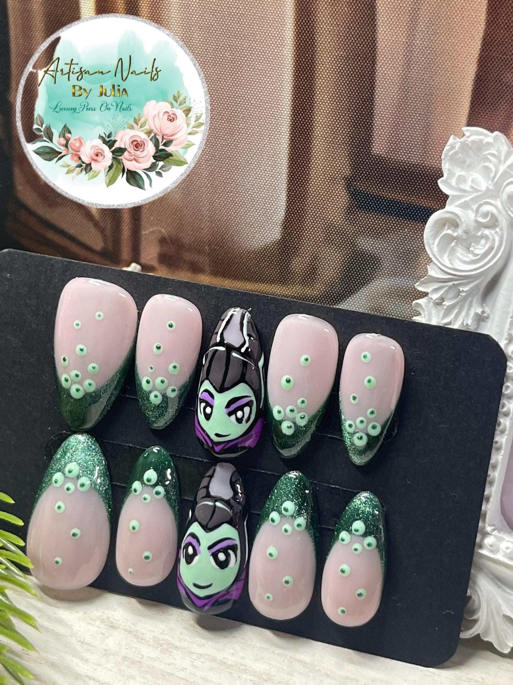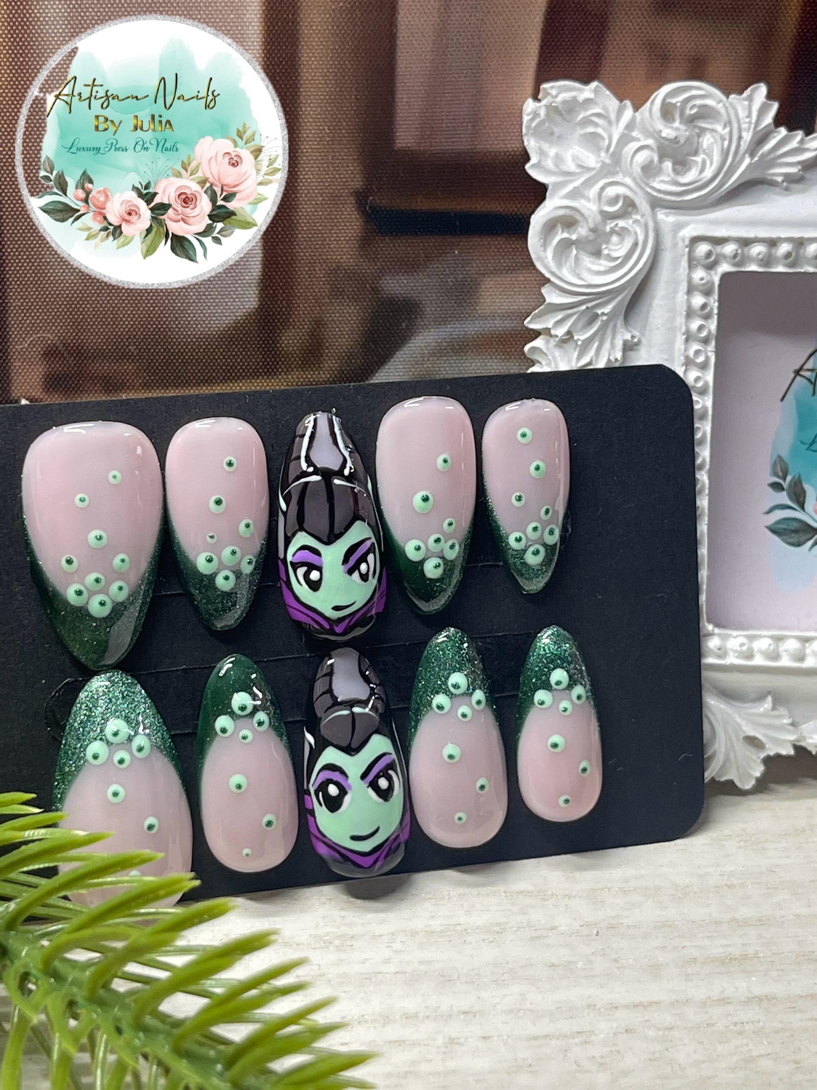 MALÉFICA - Set de 10 uñas inspiradas en Maléfica