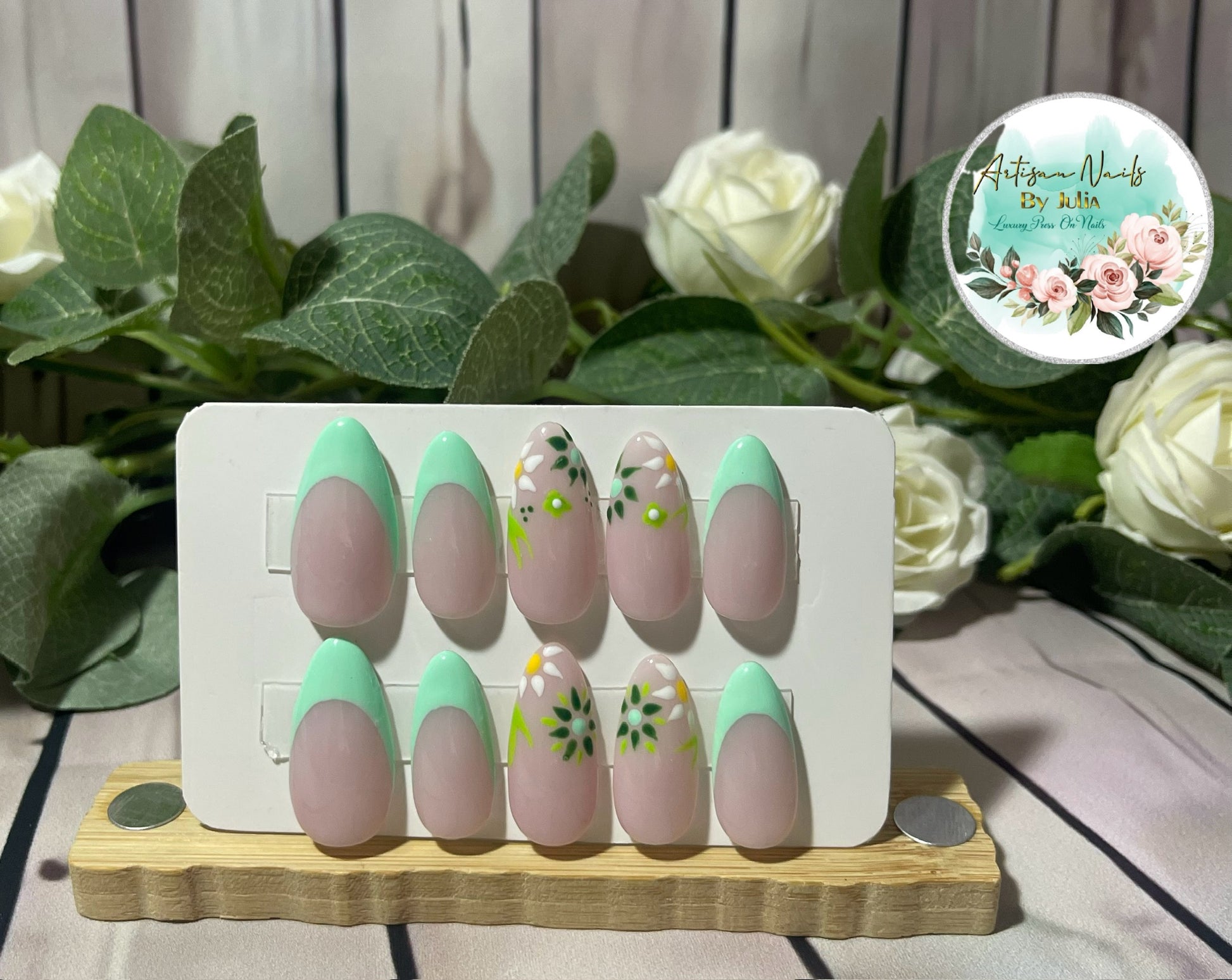 MEADOW SWEET - Juego de 10 uñas francesas turquesas