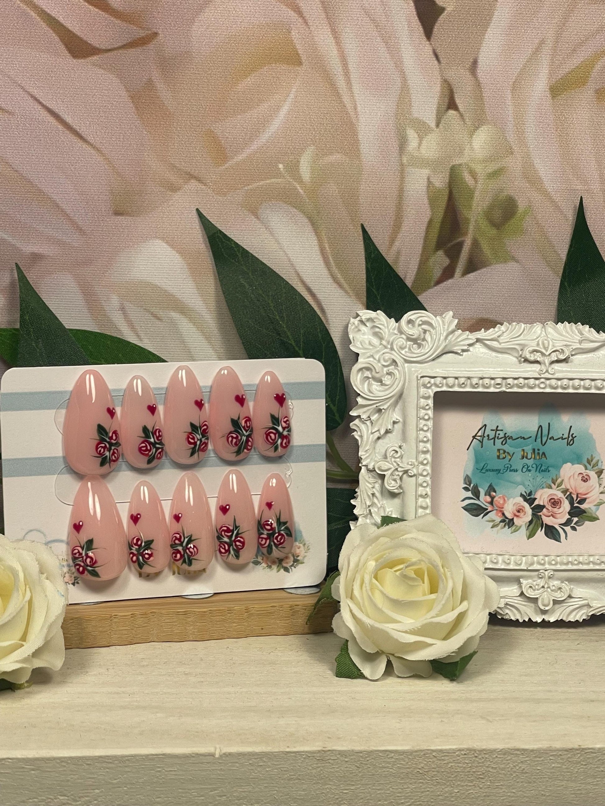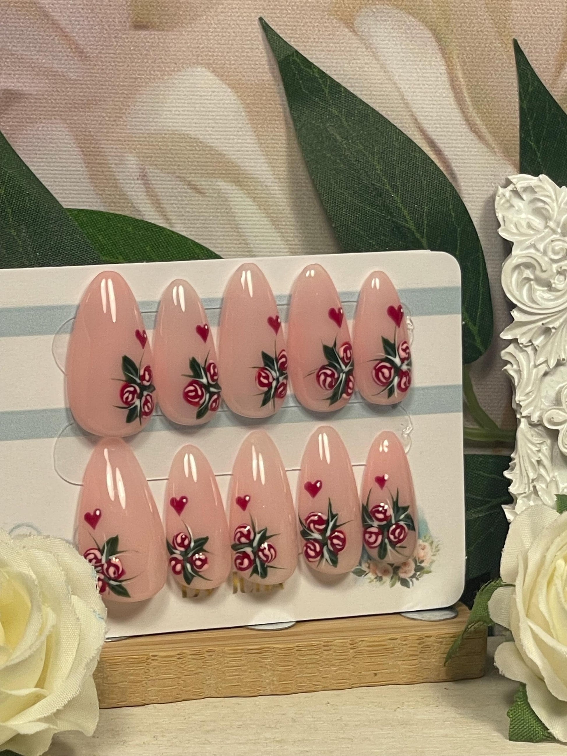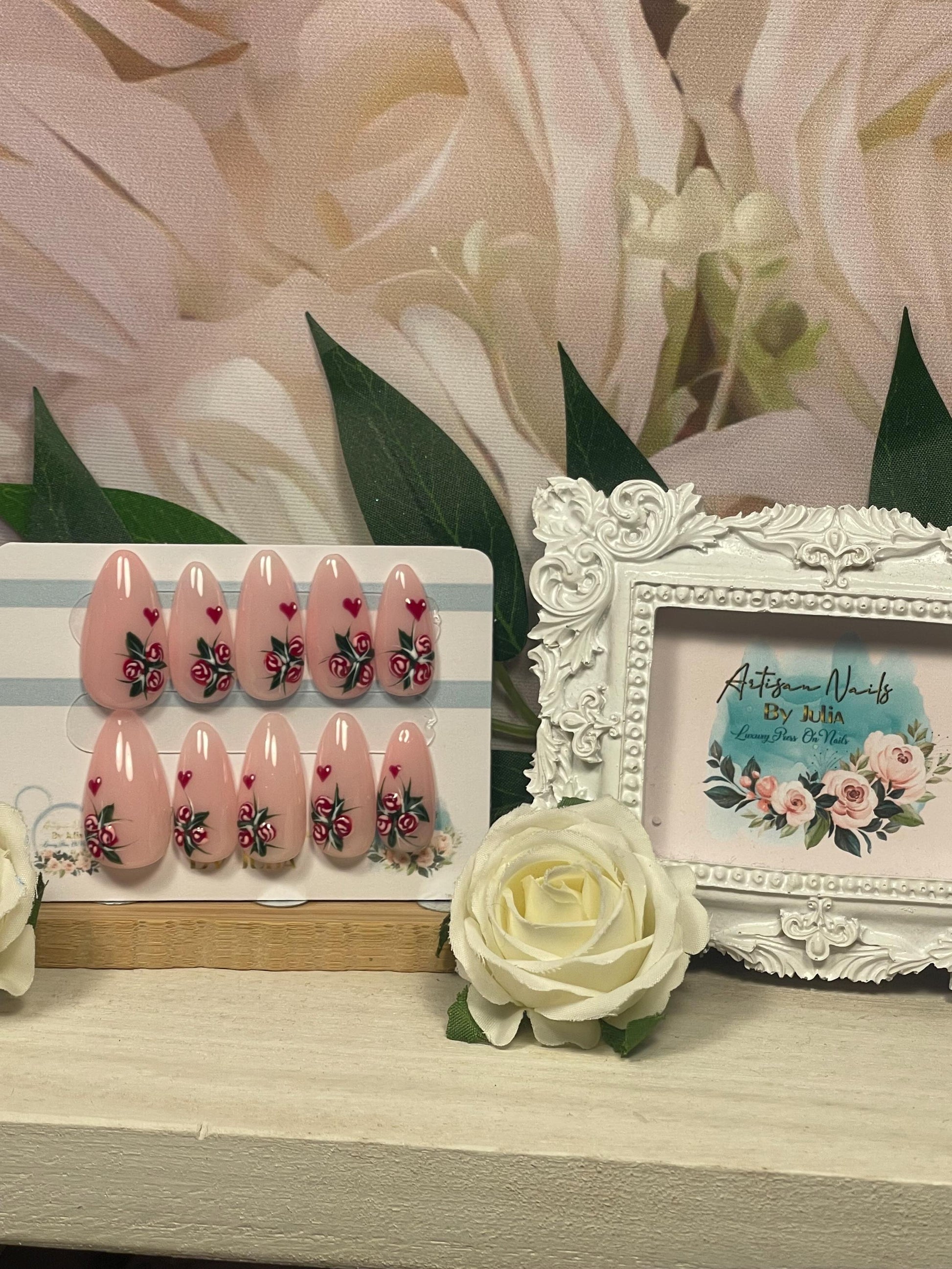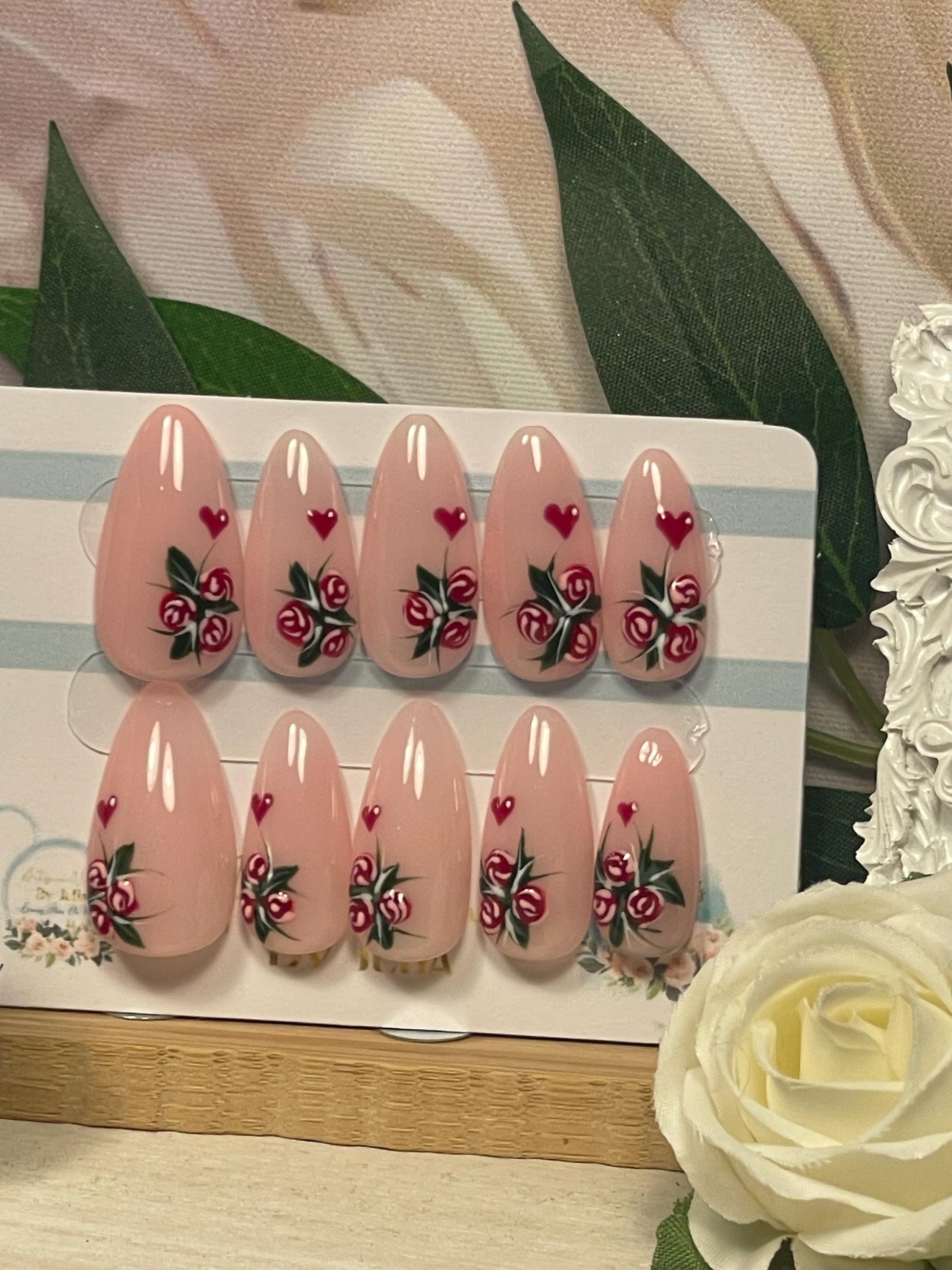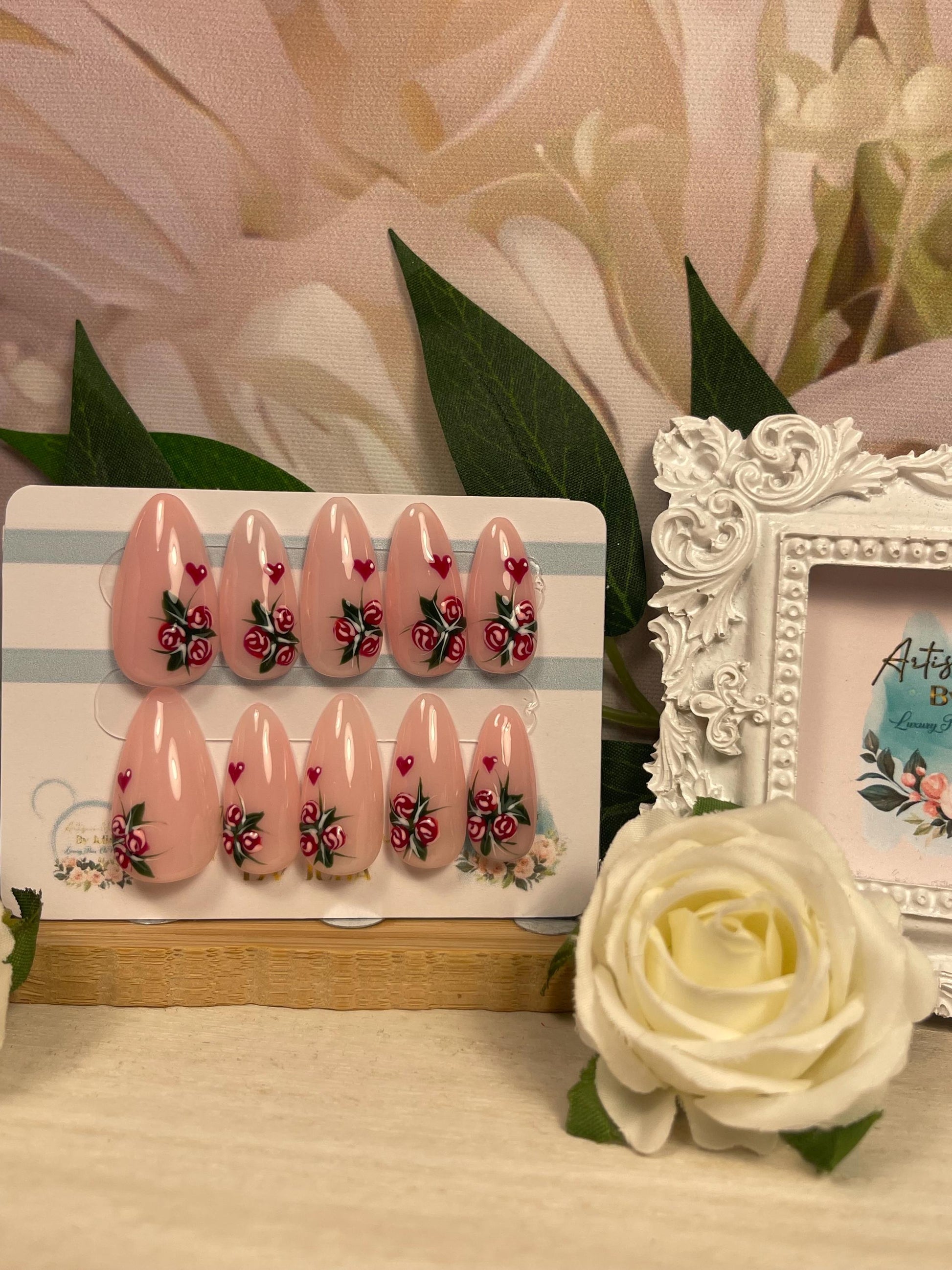 LAS ROSAS SON ROJAS - Juego de 10 uñas con detalles de rosas rojas