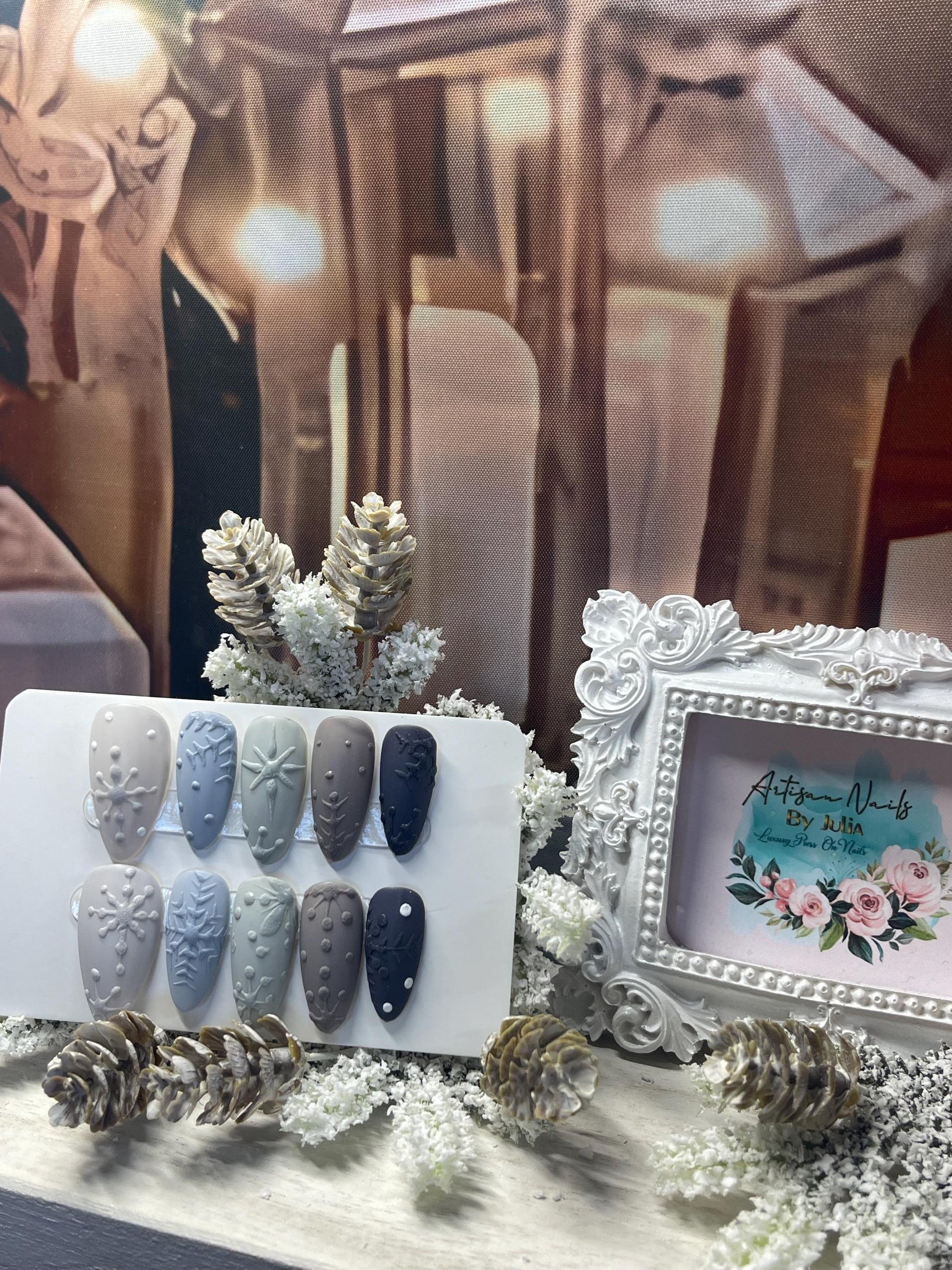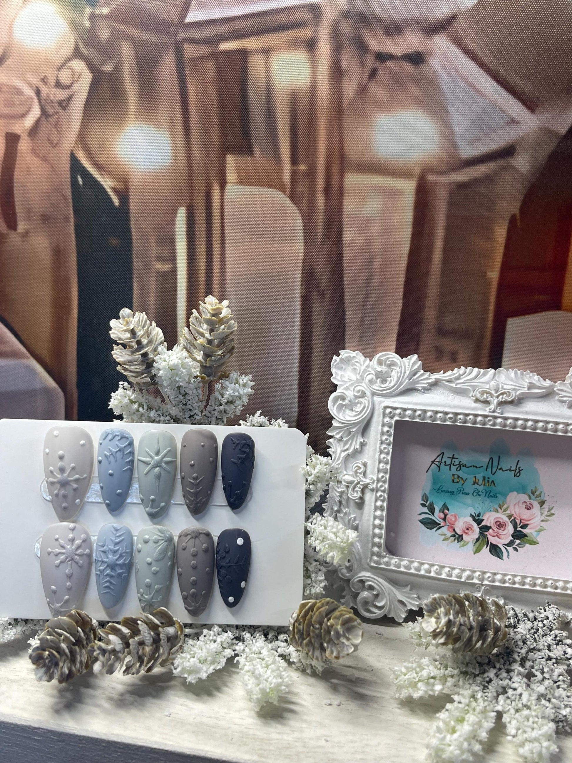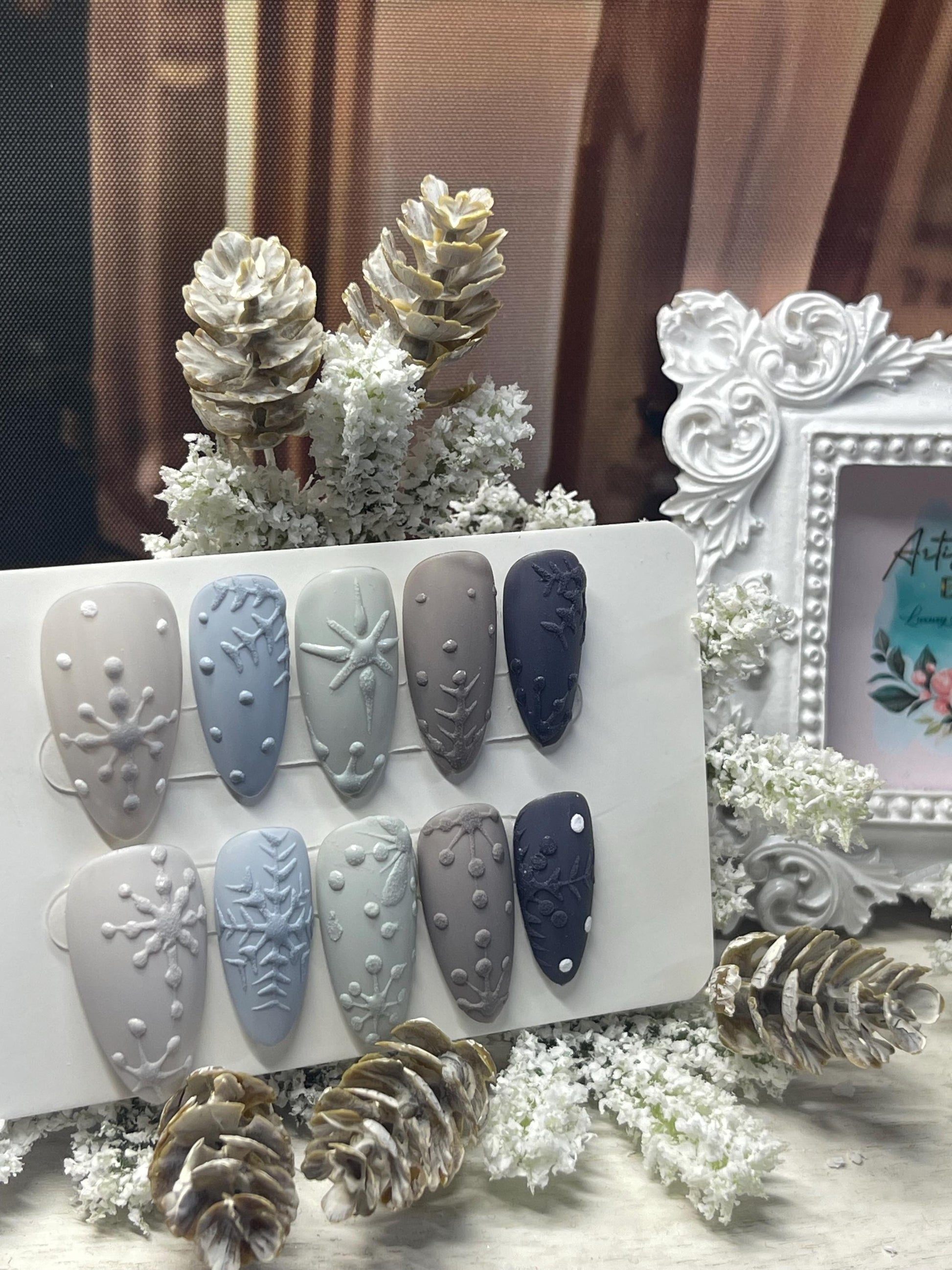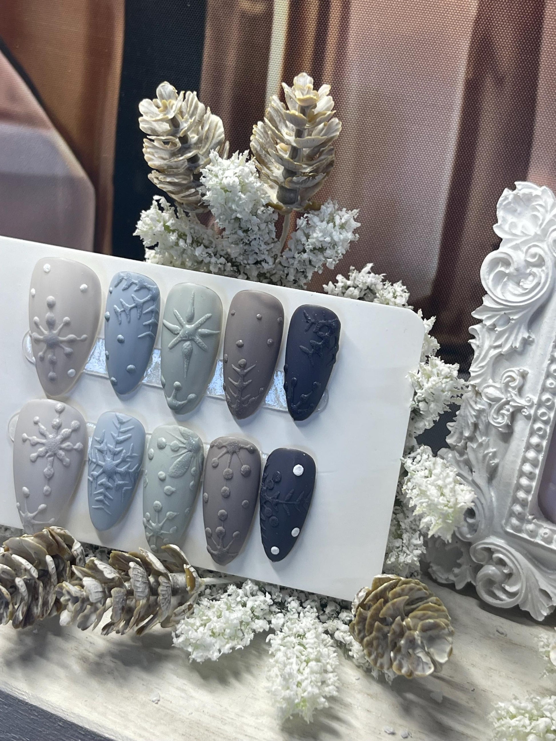 TONOS DE INVIERNO - Set de 10 tonos mate 3D para uñas con copos de nieve