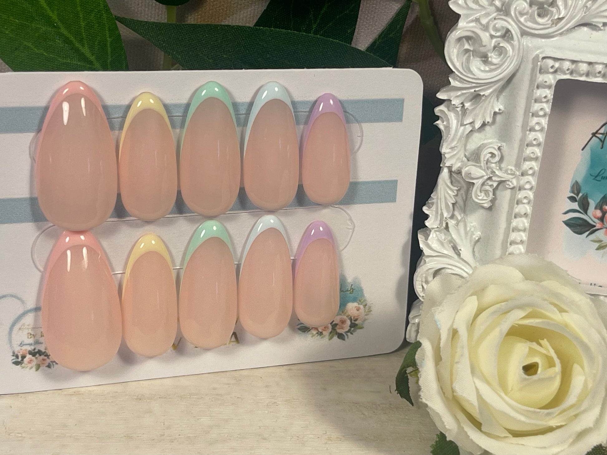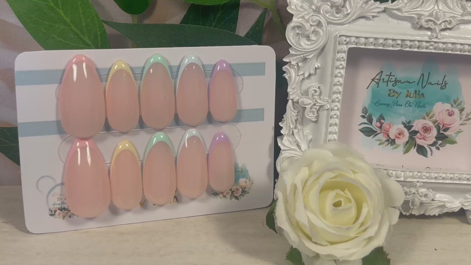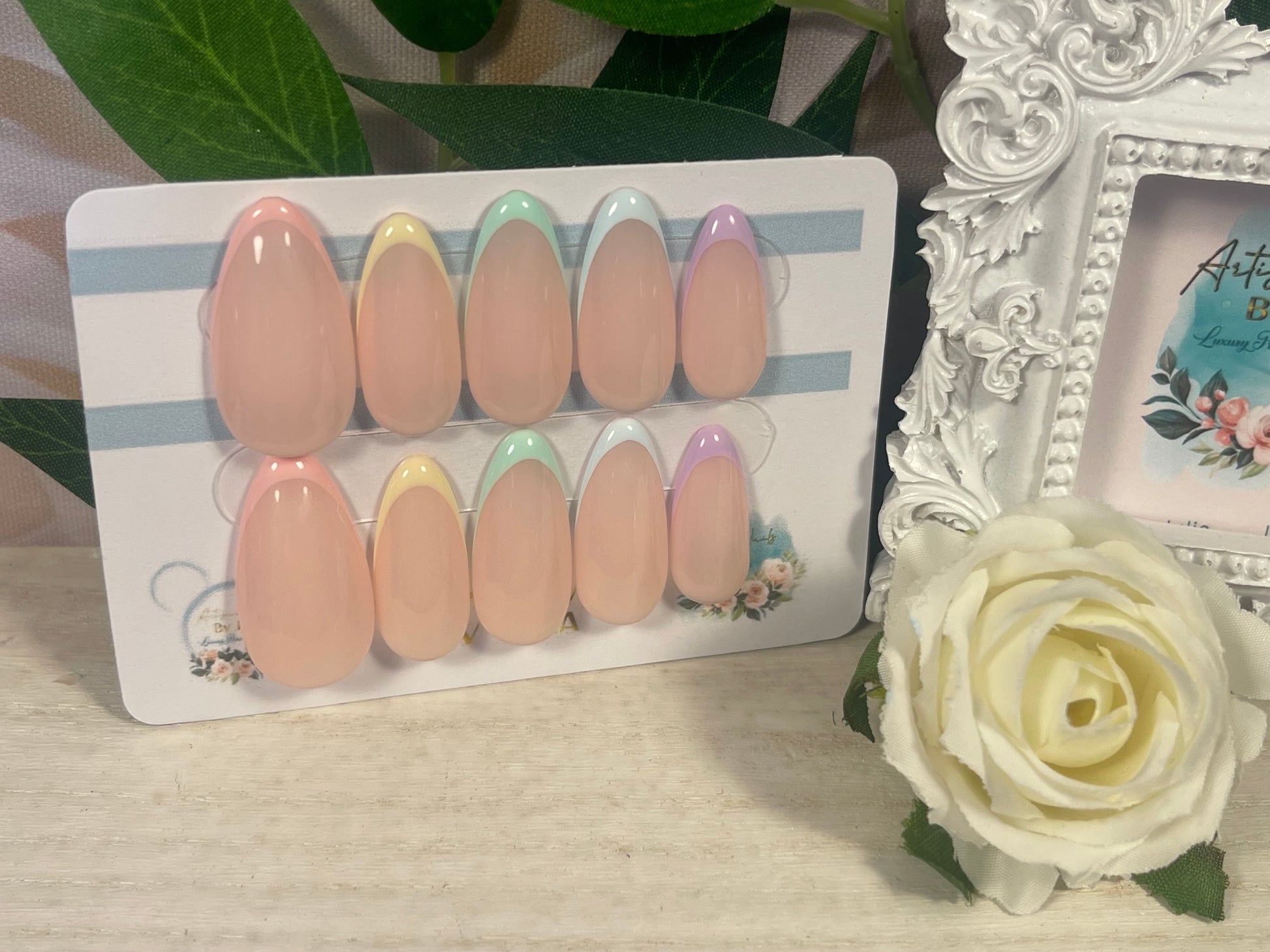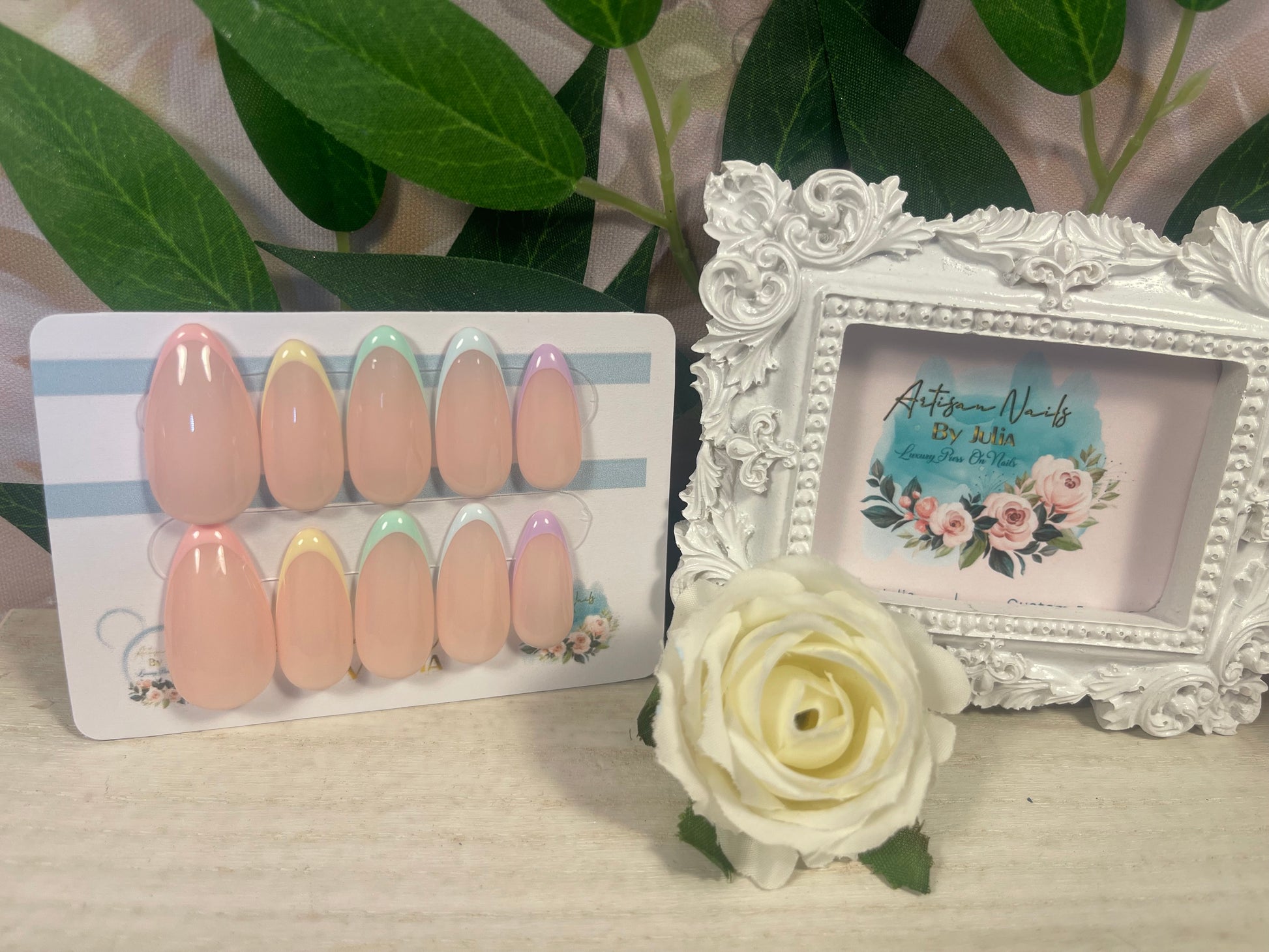 ARCOÍRIS BRILLANTE - Juego de 10 uñas francesas con punta de arcoíris y estrellas