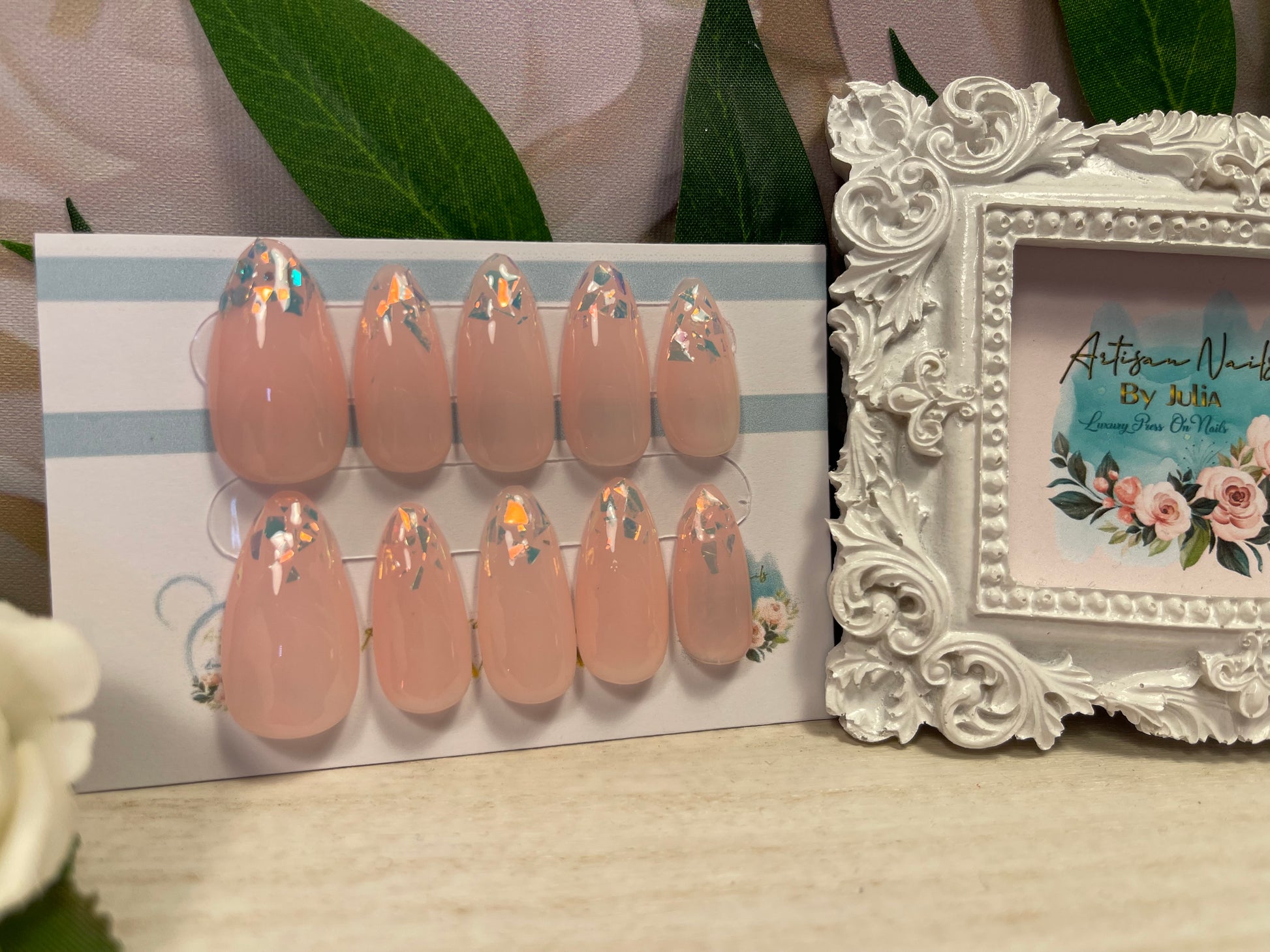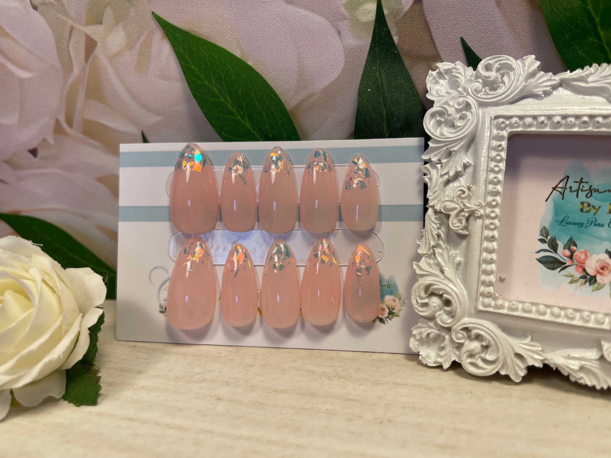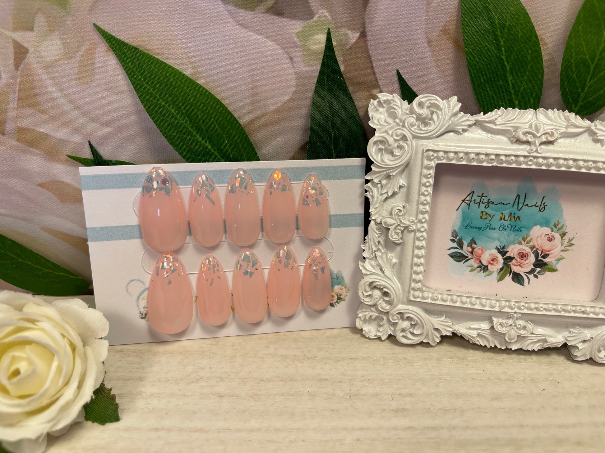 ICE SHARDS - Juego de 10 uñas de gel rosa con puntas de fragmentos de ópalo