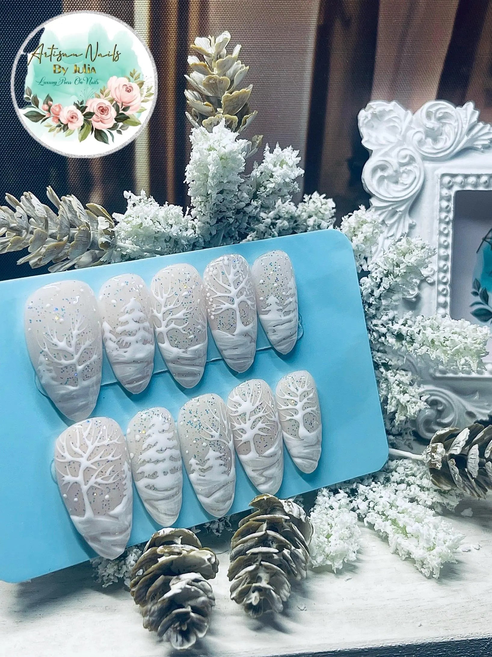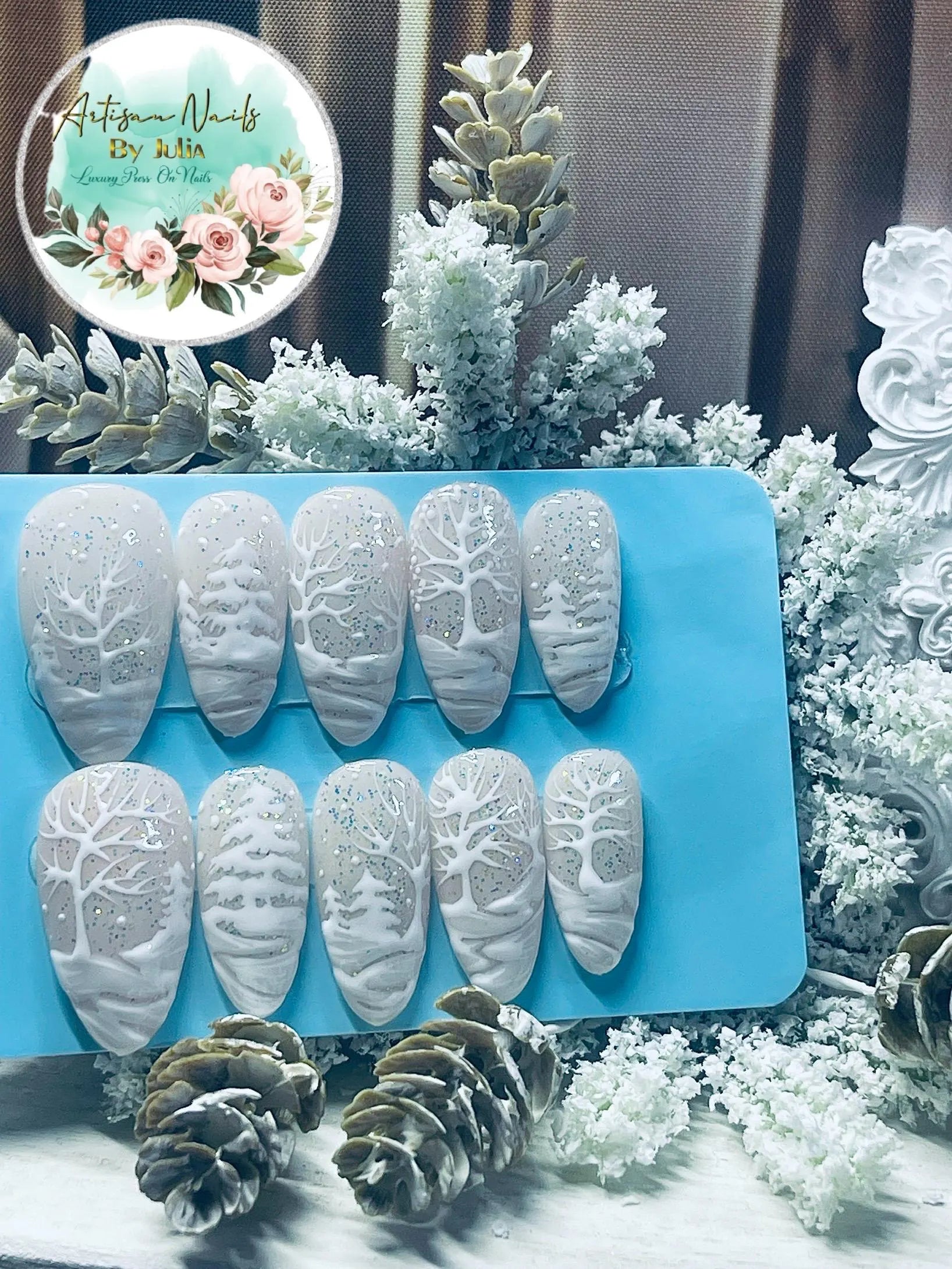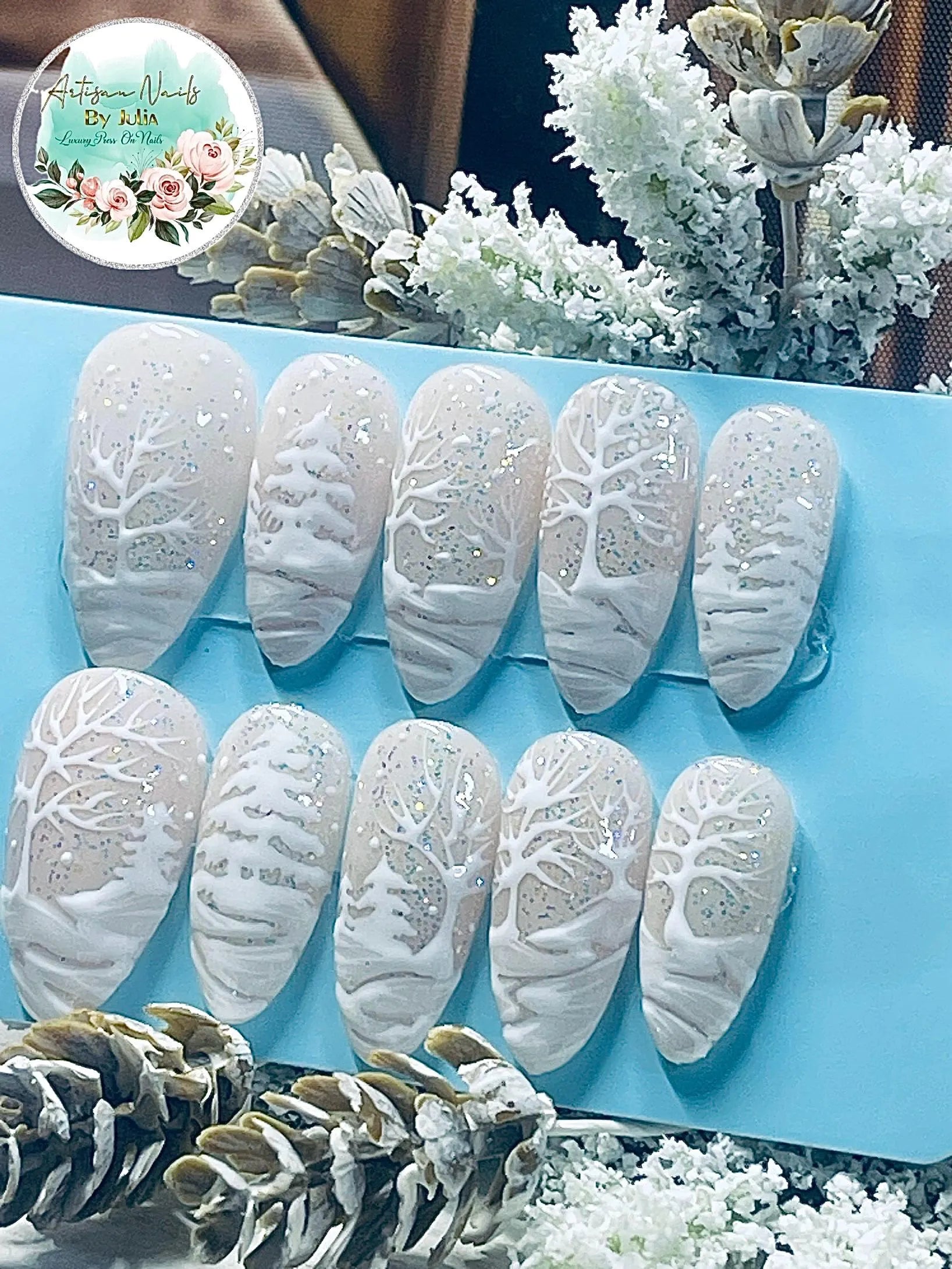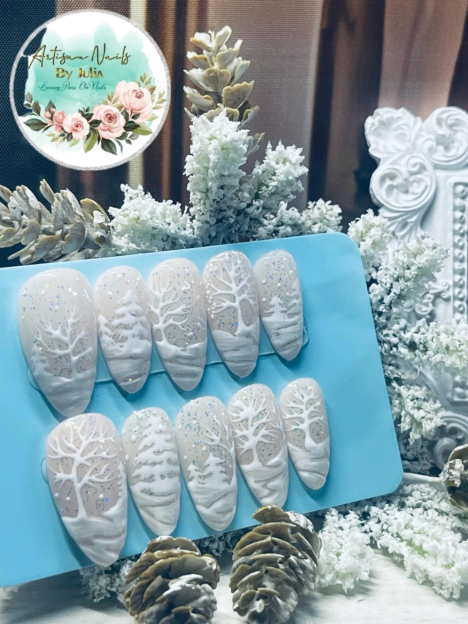 PAÍS DE LAS MARAVILLAS INVERNAL - Conjunto de uñas con escena invernal y purpurina