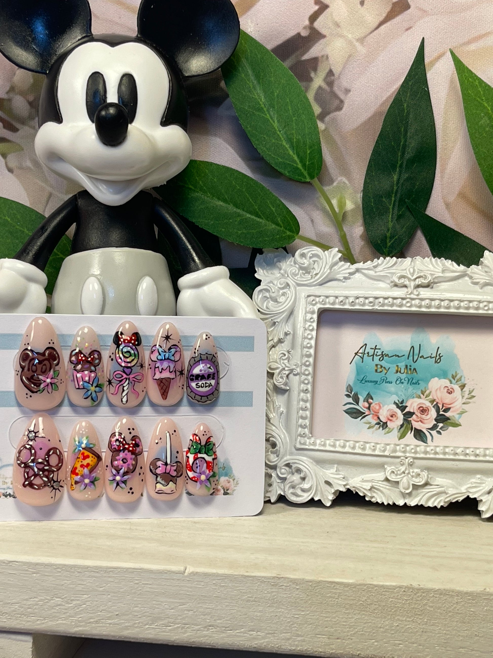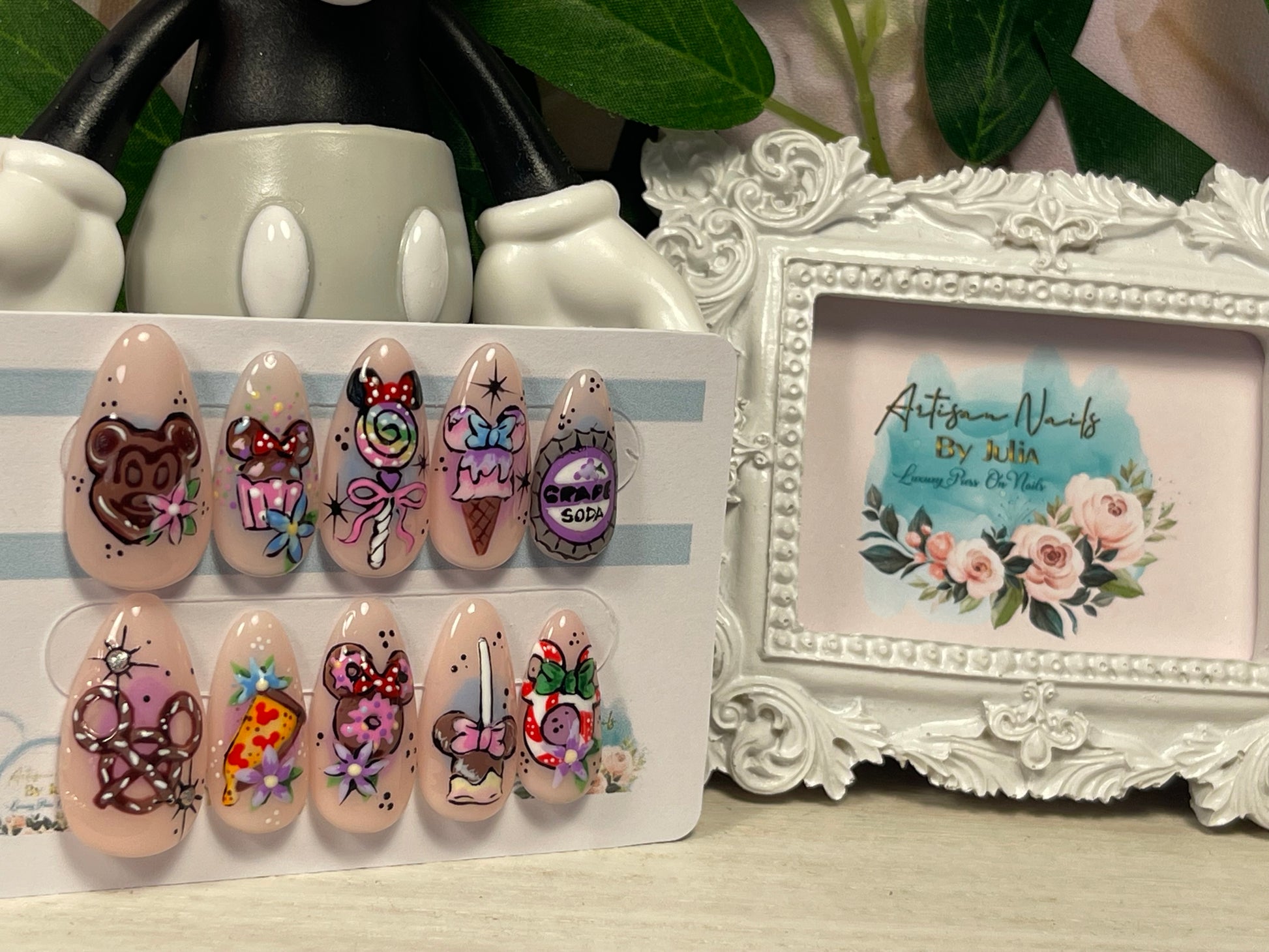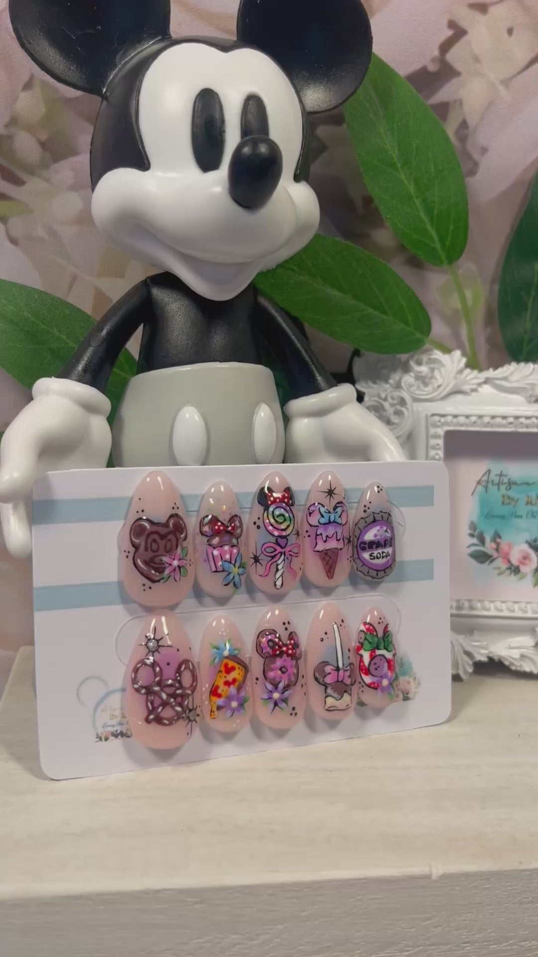 DÍAS DE DISNEY - Set de 10 uñas de estrella esmaltadas con mini detalles de Disney