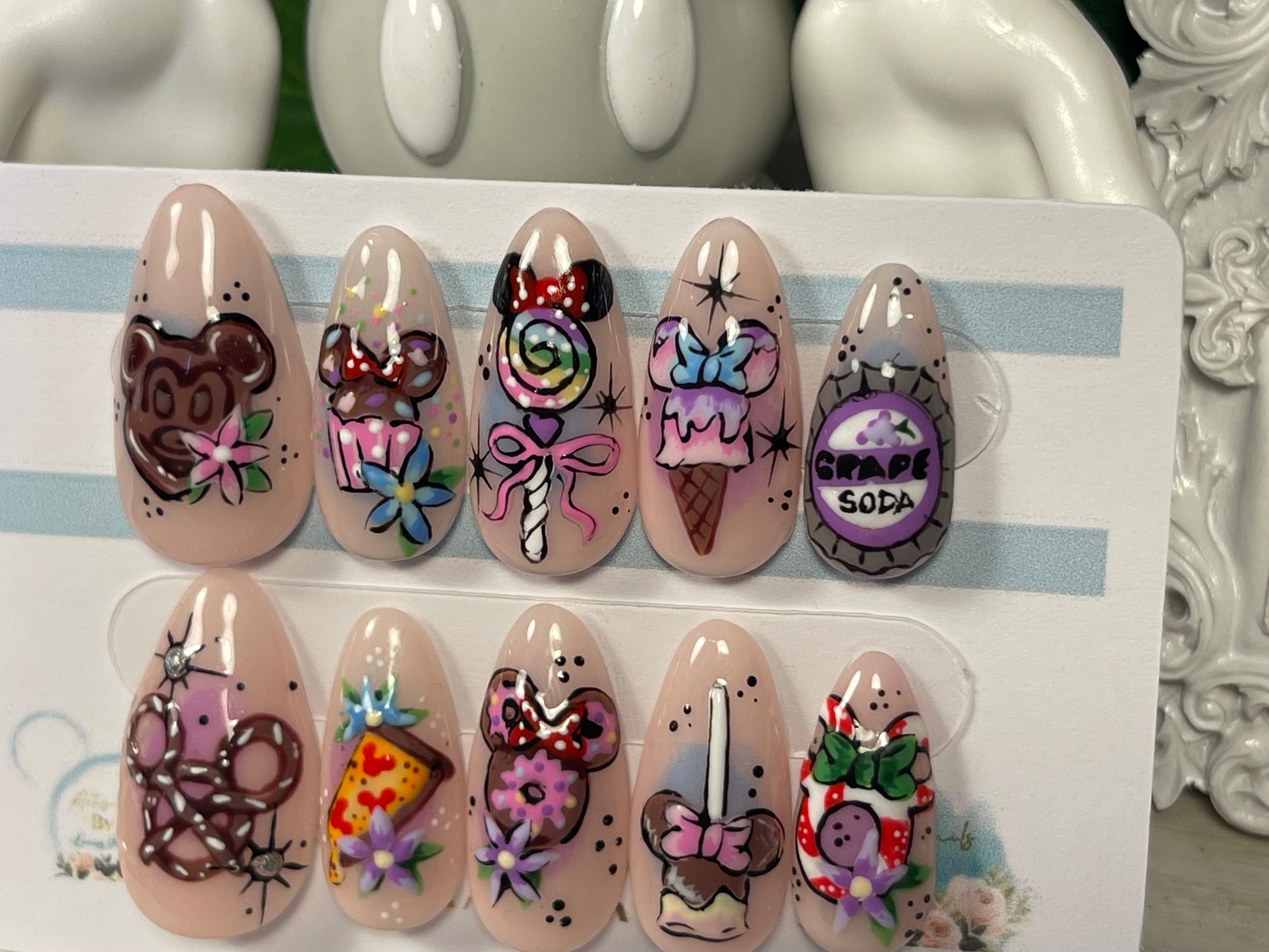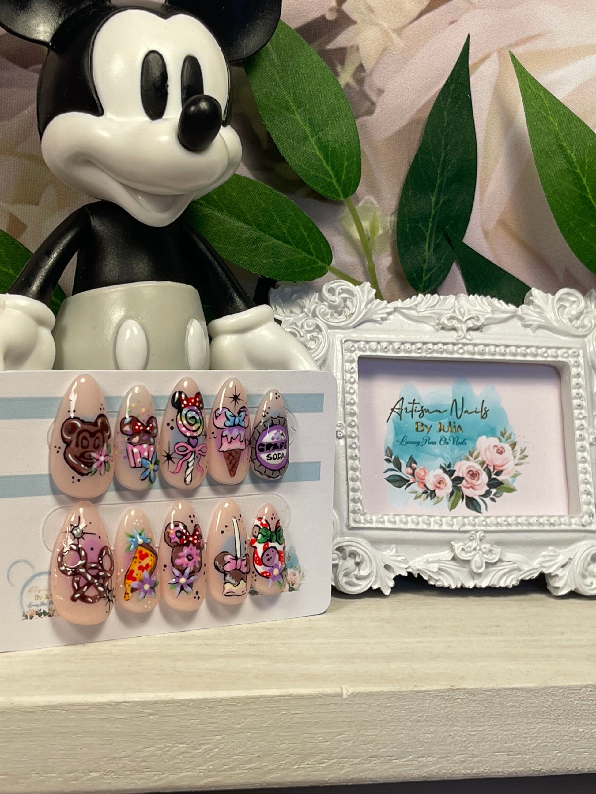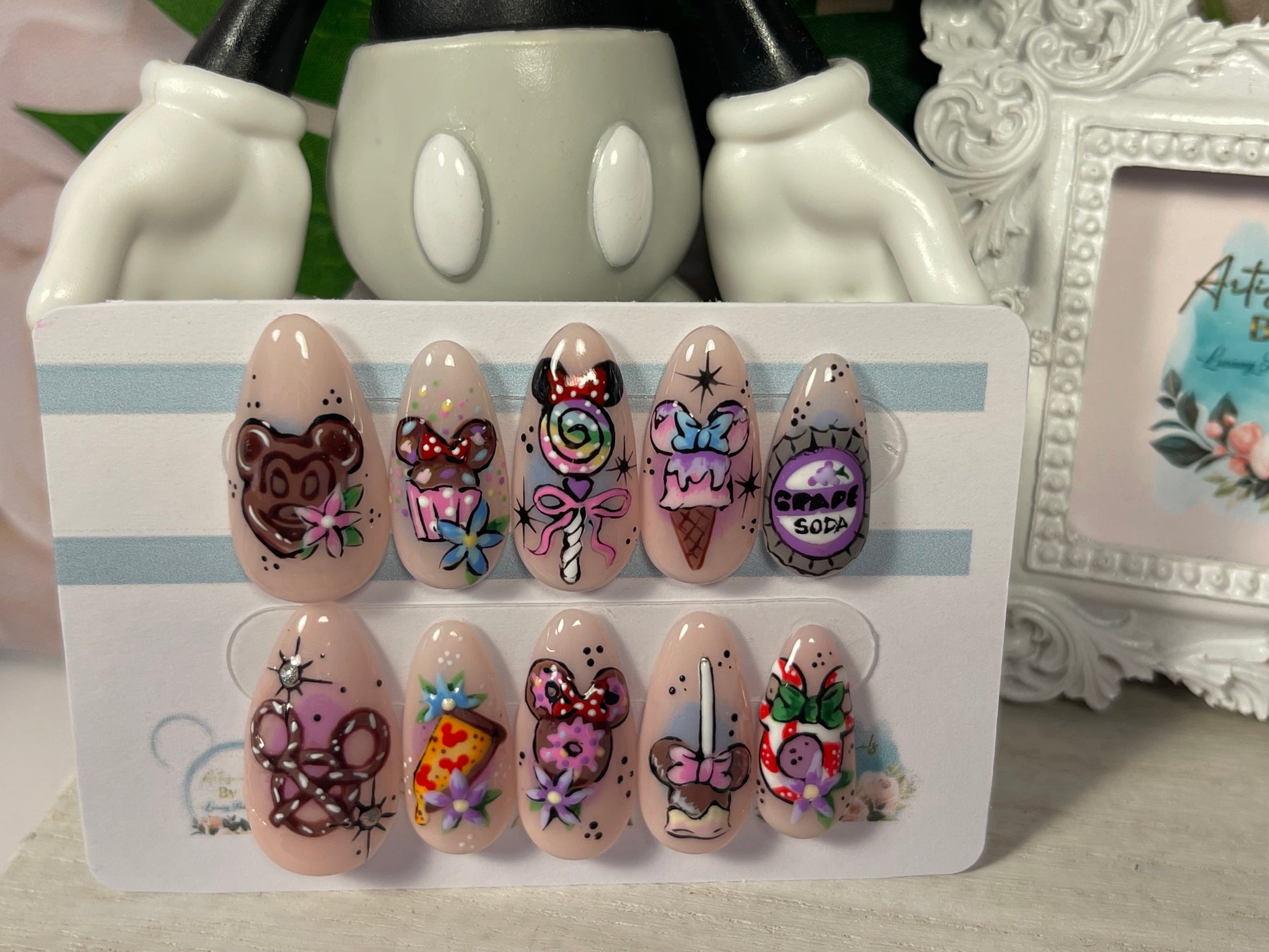 DÍAS DE DISNEY - Set de 10 uñas de estrella esmaltadas con mini detalles de Disney