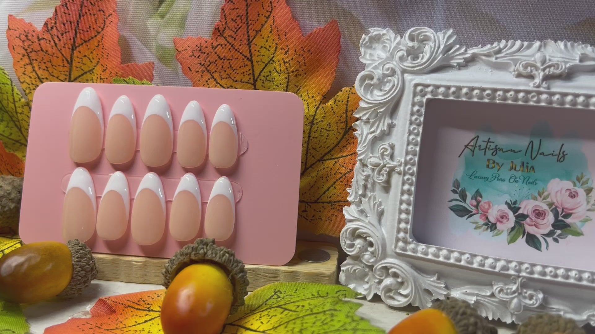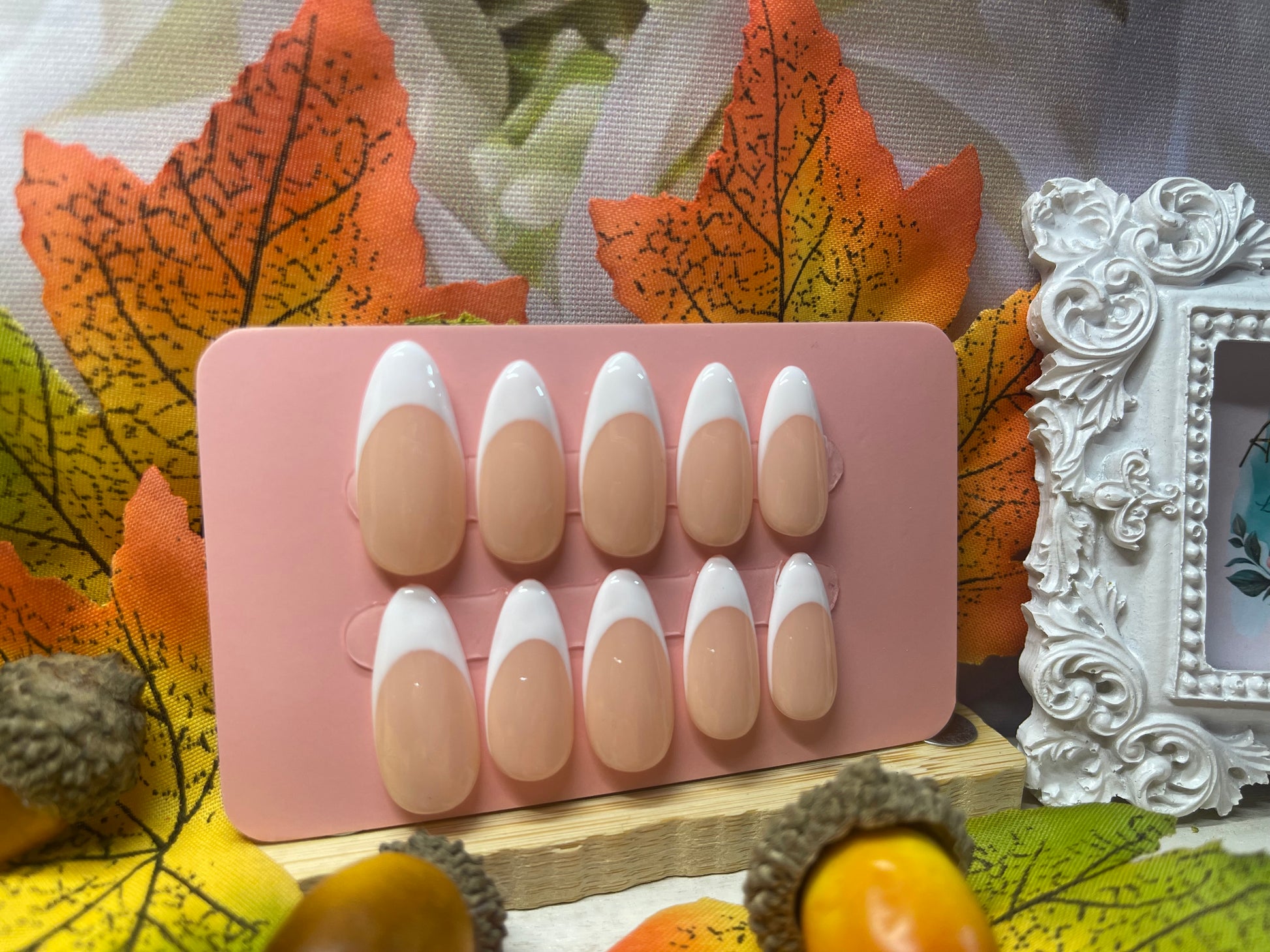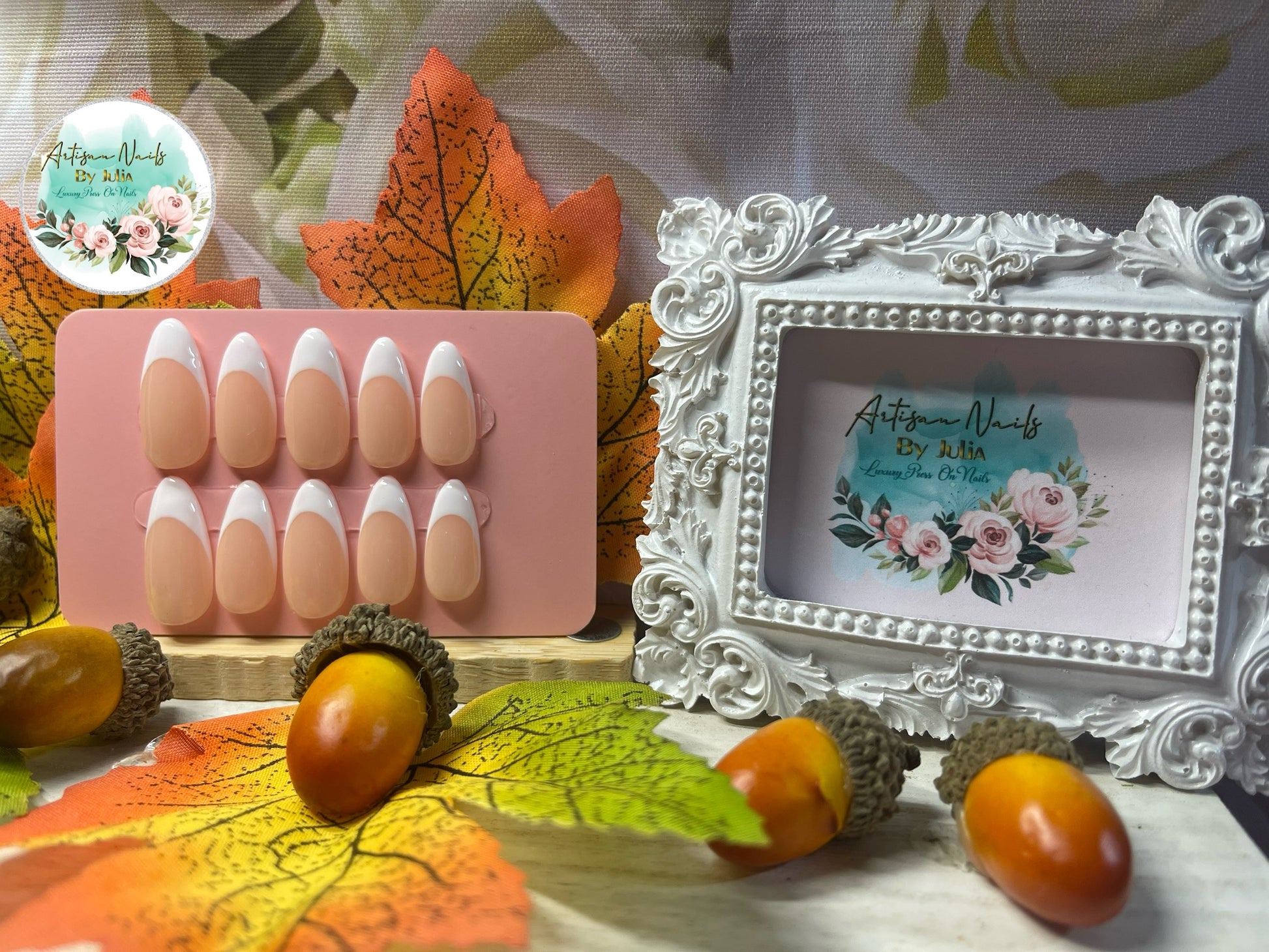 CLASSIC FRENCH - Gel Press on Nails - Lot de 10 faux ongles French Tip classiques - Fabriqués sur commande