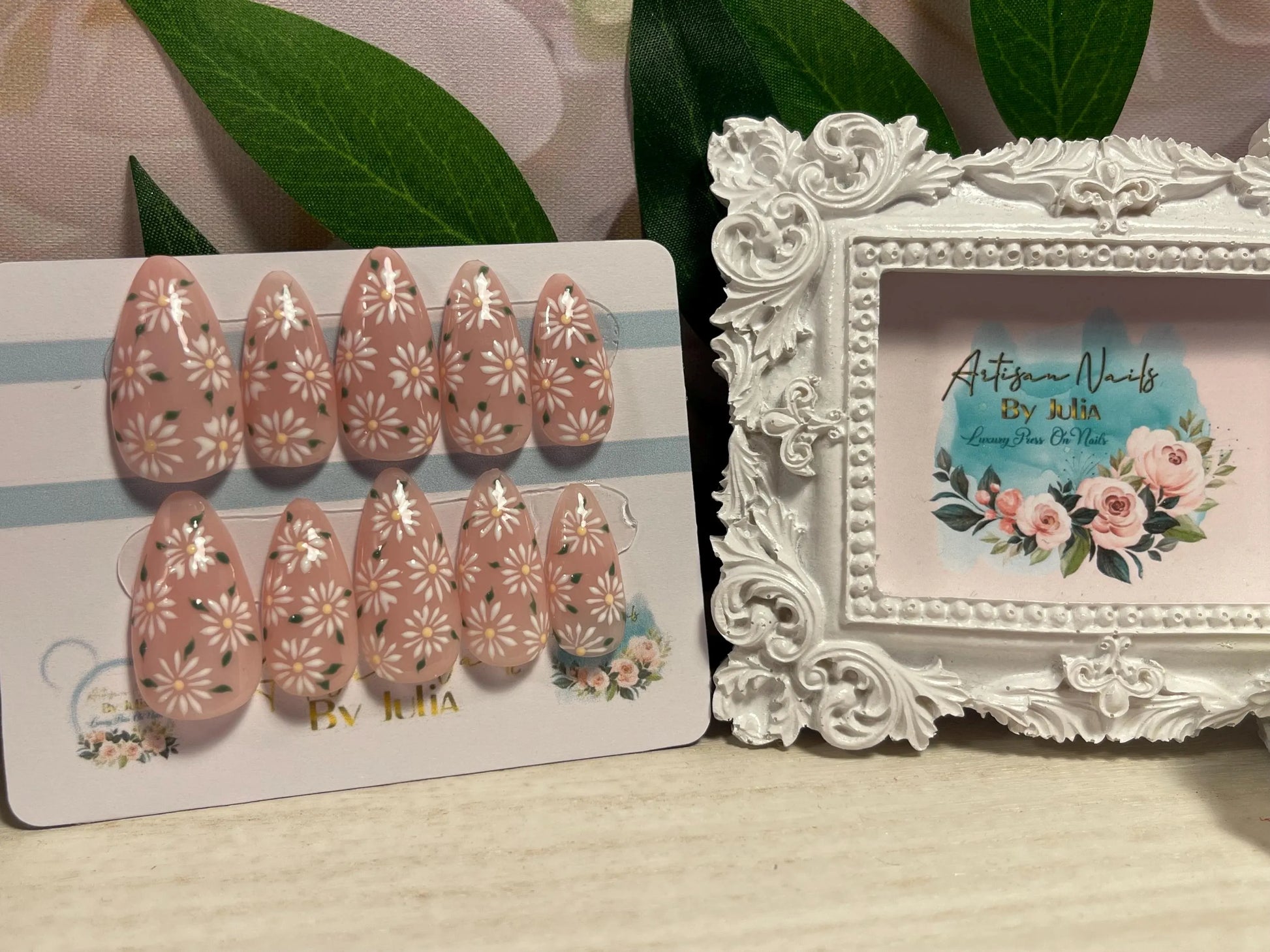 DAISY CHAIN - Set of 10 Delicate Daisy Spring Nails