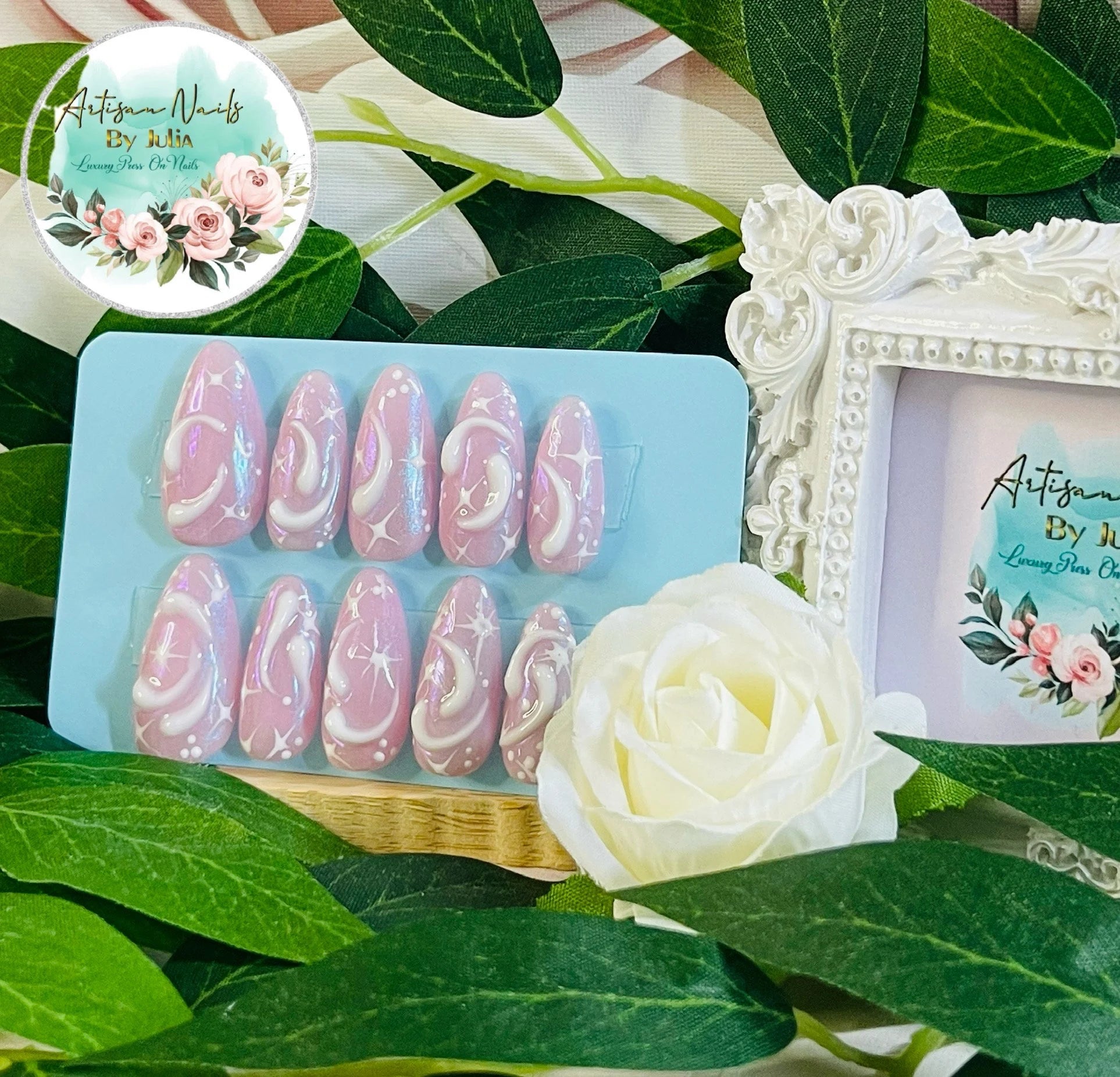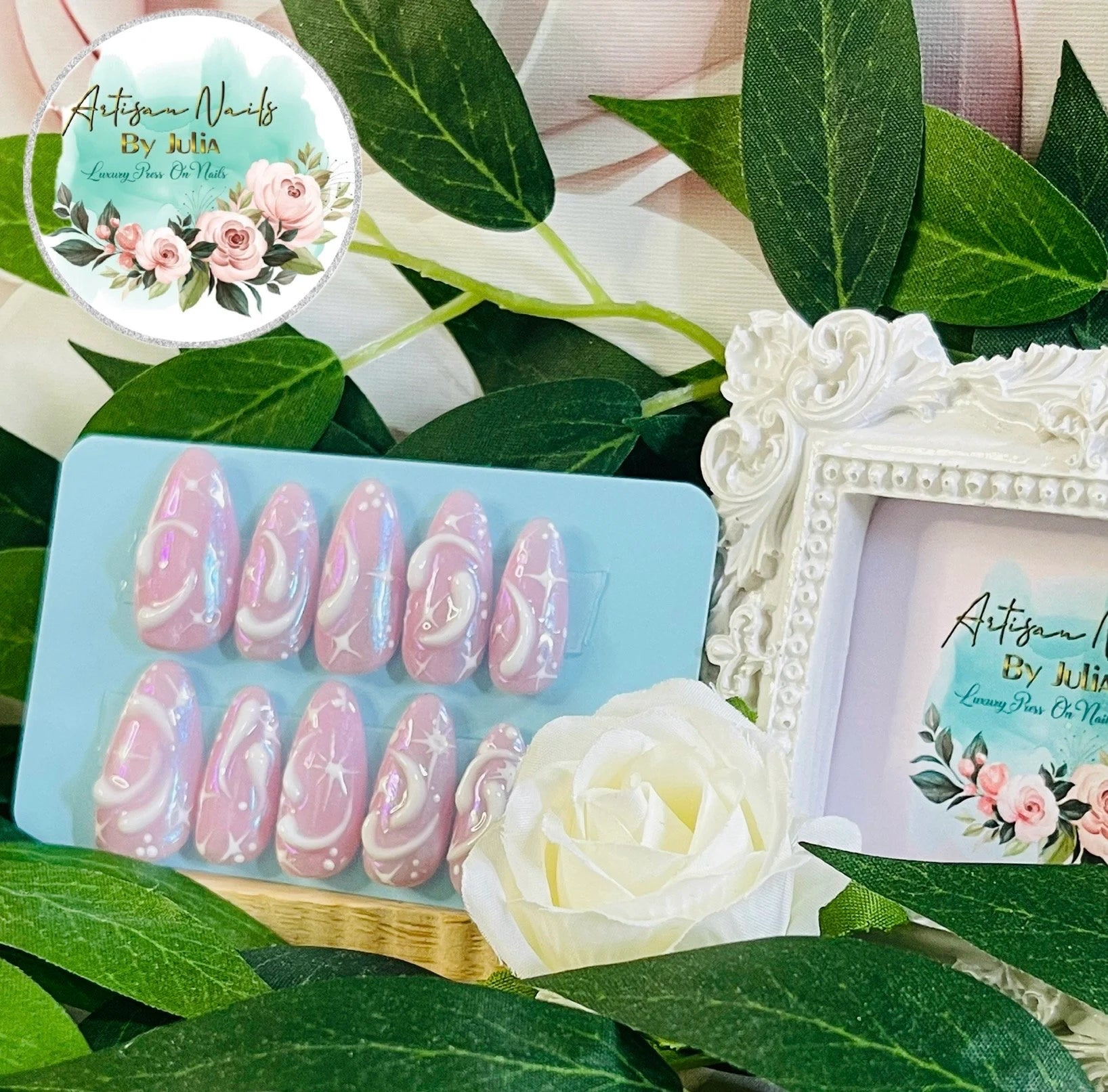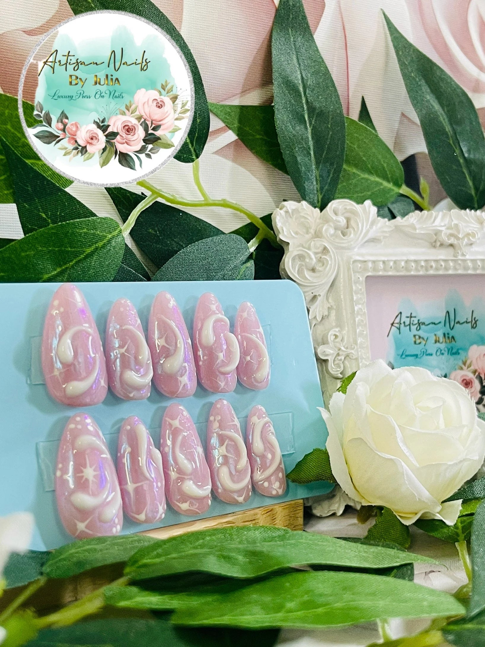 DAYDREAMER - Gel Press on Nails - Lot de 10 ongles 3D tourbillons et étoiles - Fabriqué sur commande