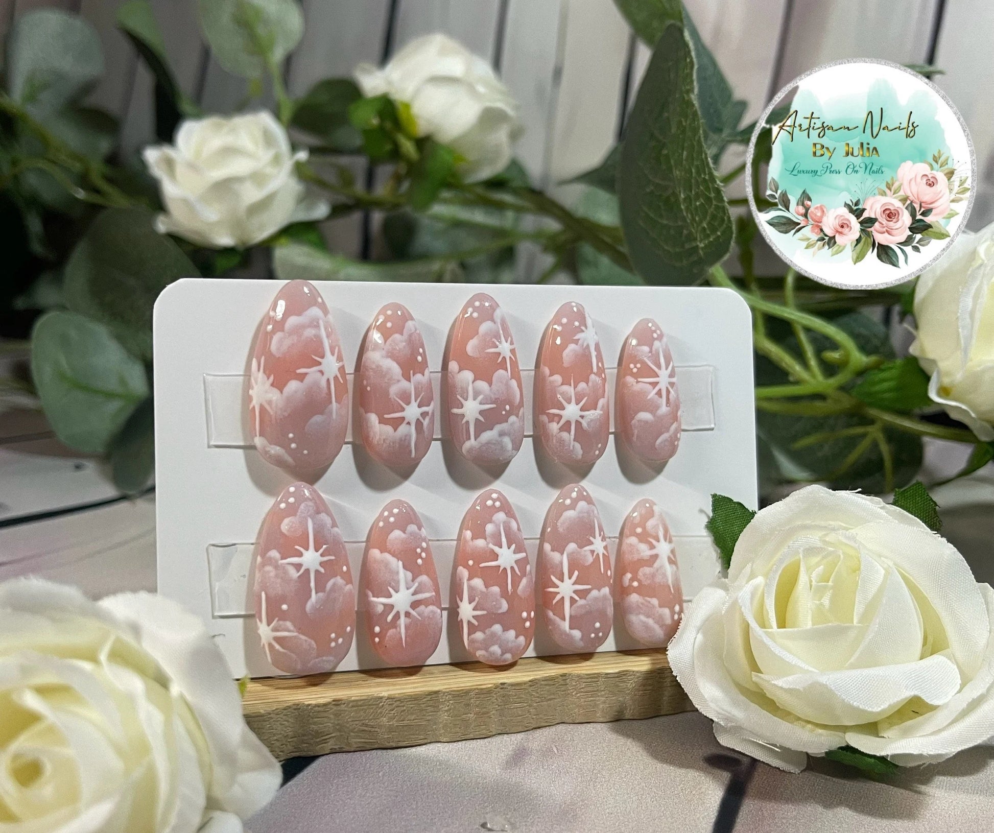 DREAMER - Gel Press on Nails - Lot de 10 ongles Cloud & Stars - Fabriqué sur commande