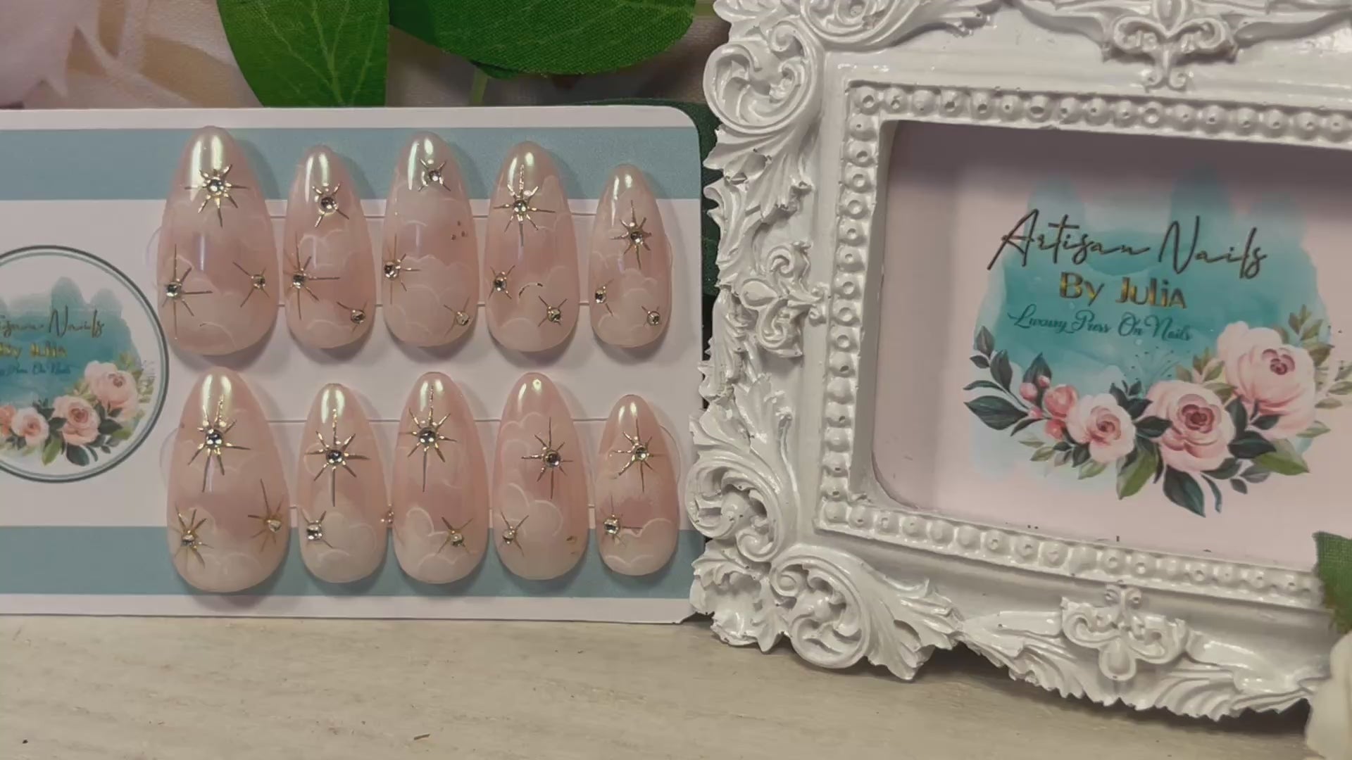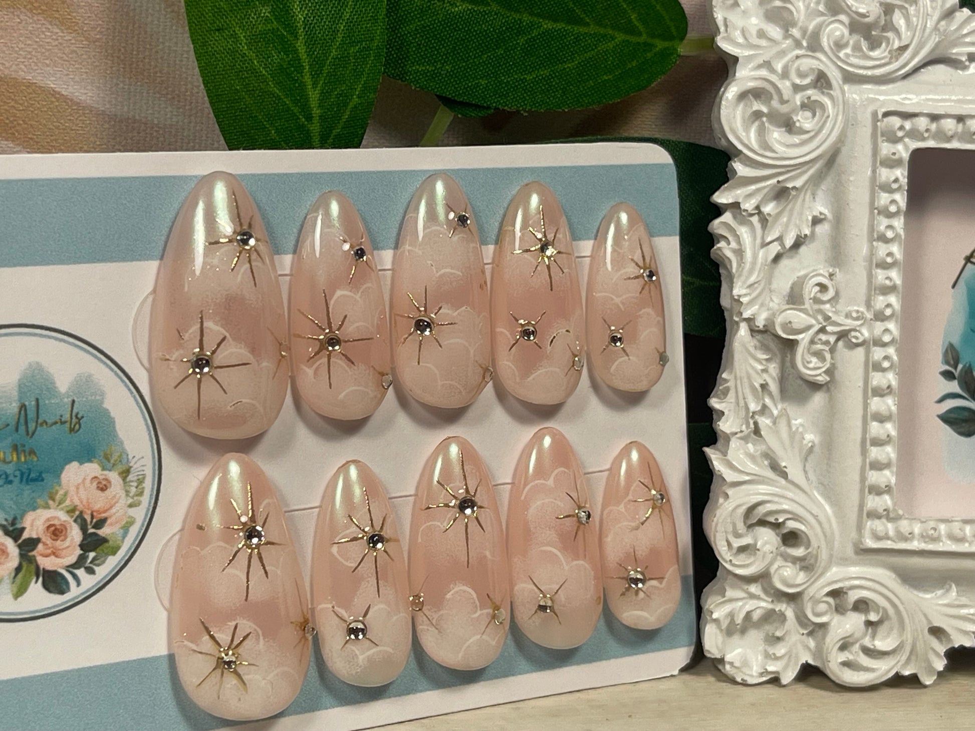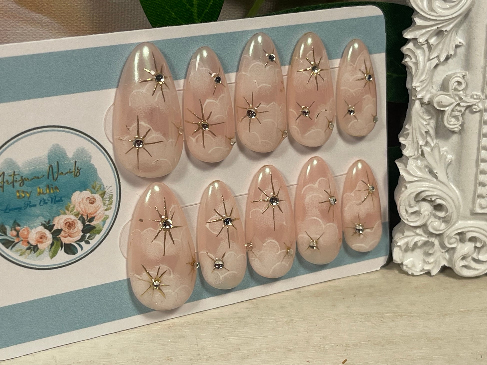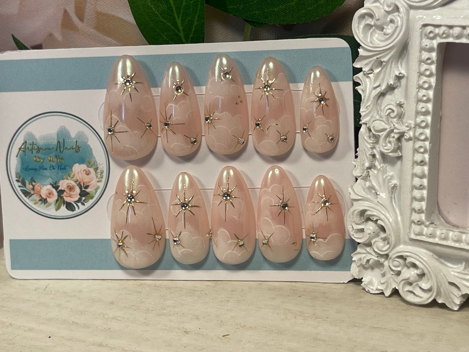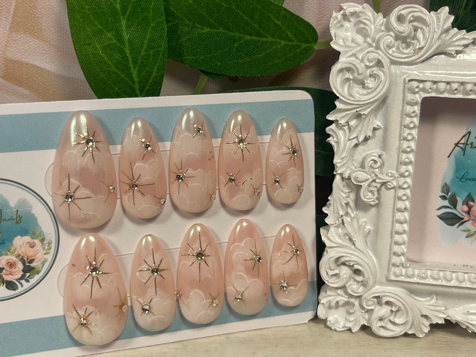 DREAMER - Gel Press on Nails - Lot de 10 ongles Cloud & Stars - Fabriqué sur commande
