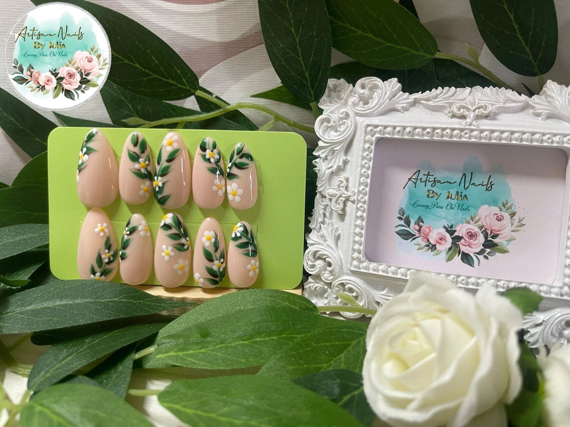 🌿 10 ongles sur mesure dans la taille et le design de votre choix.