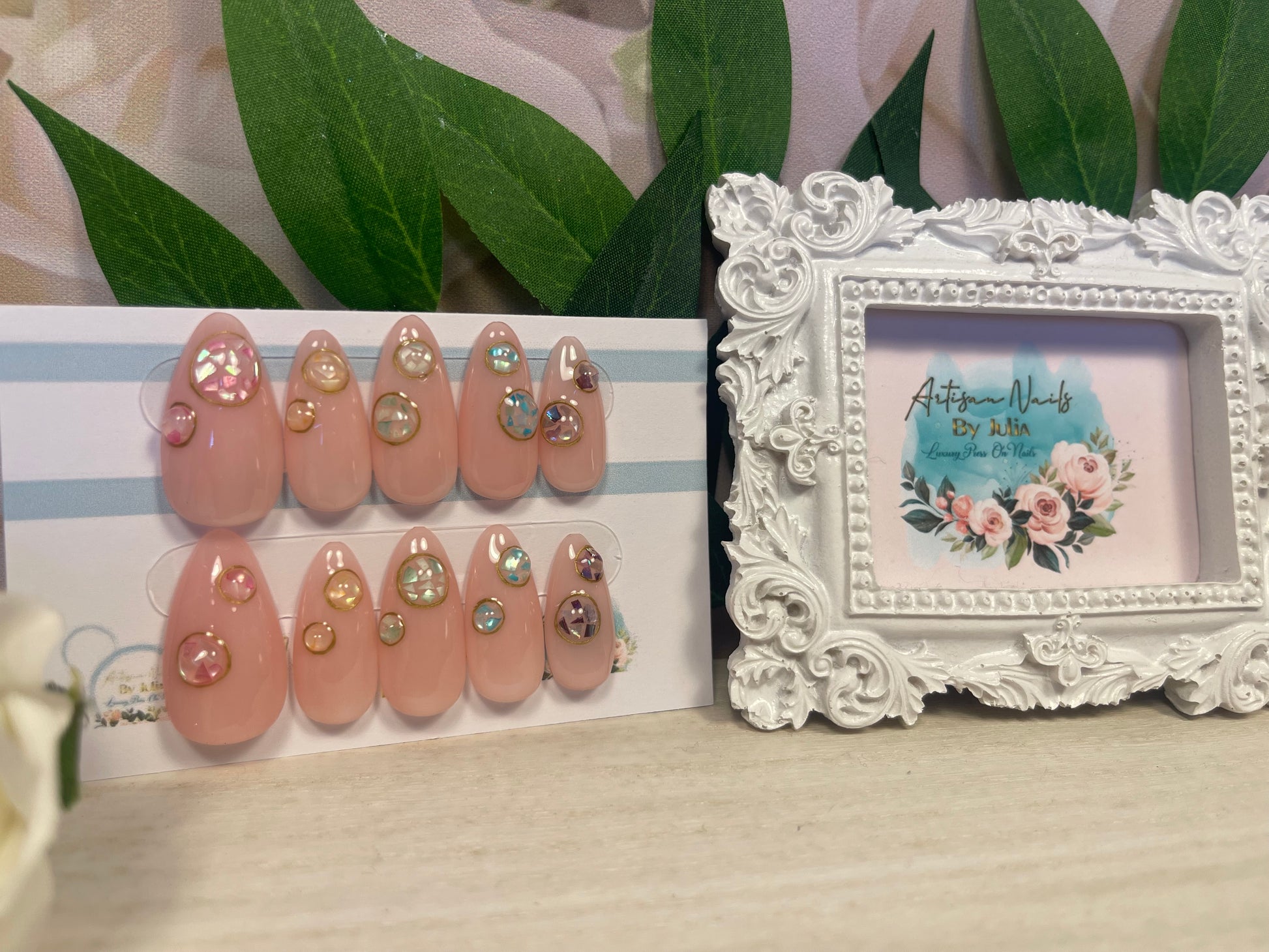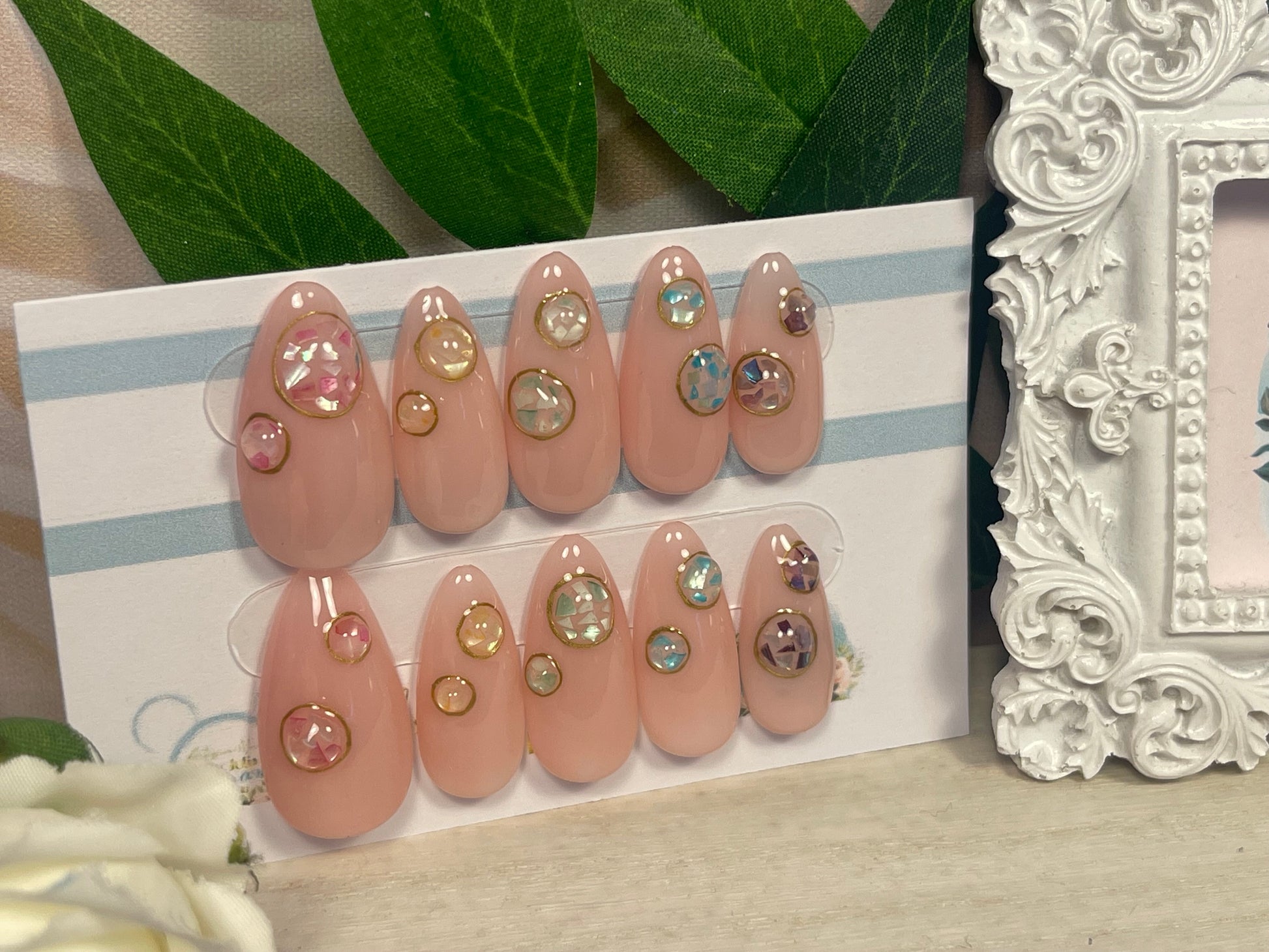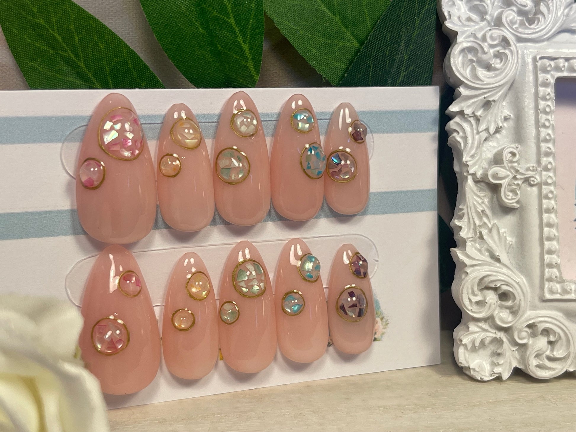 OPAL BUBBLES - Set of 10 mother of pearl encapsulated Nails