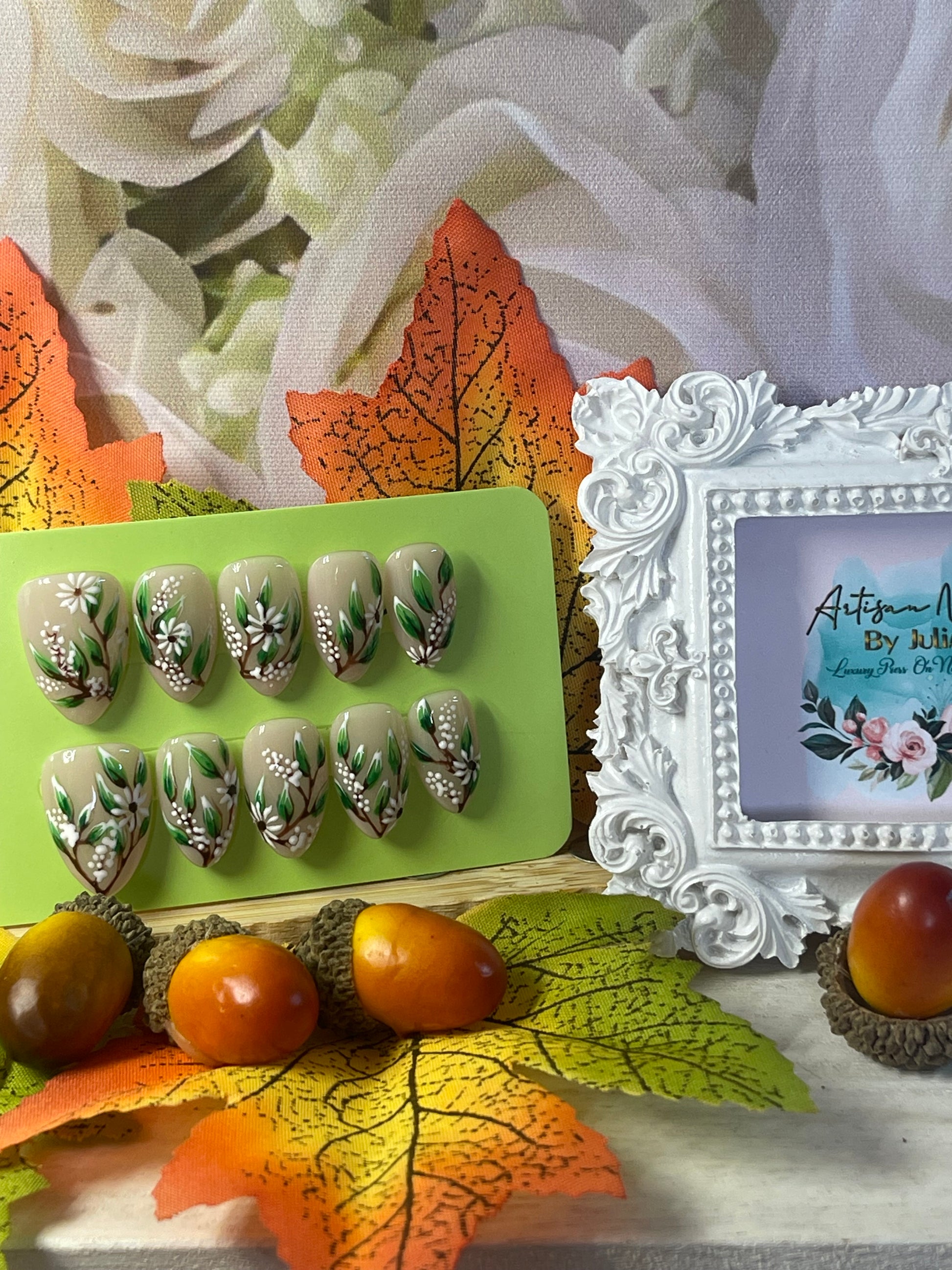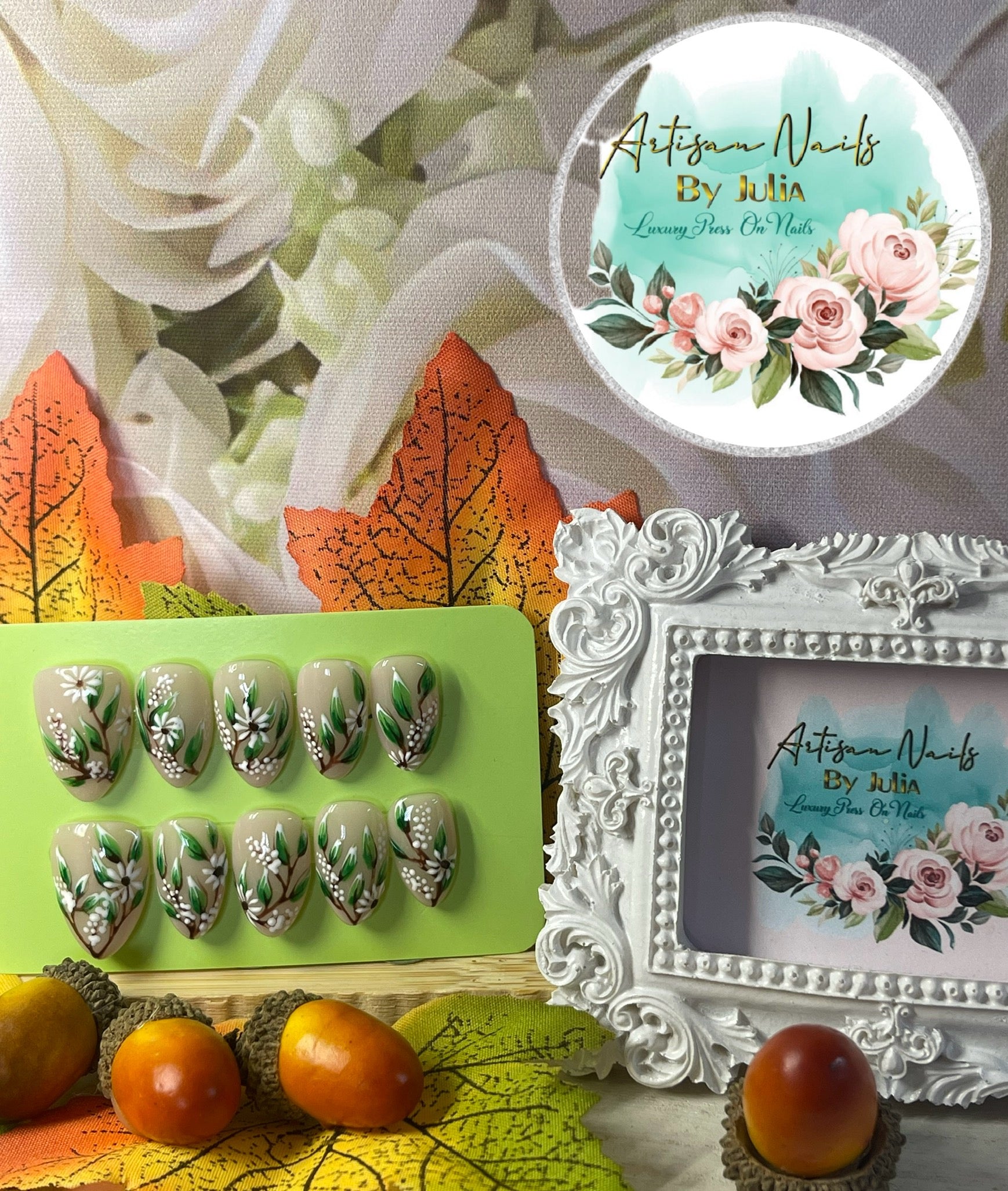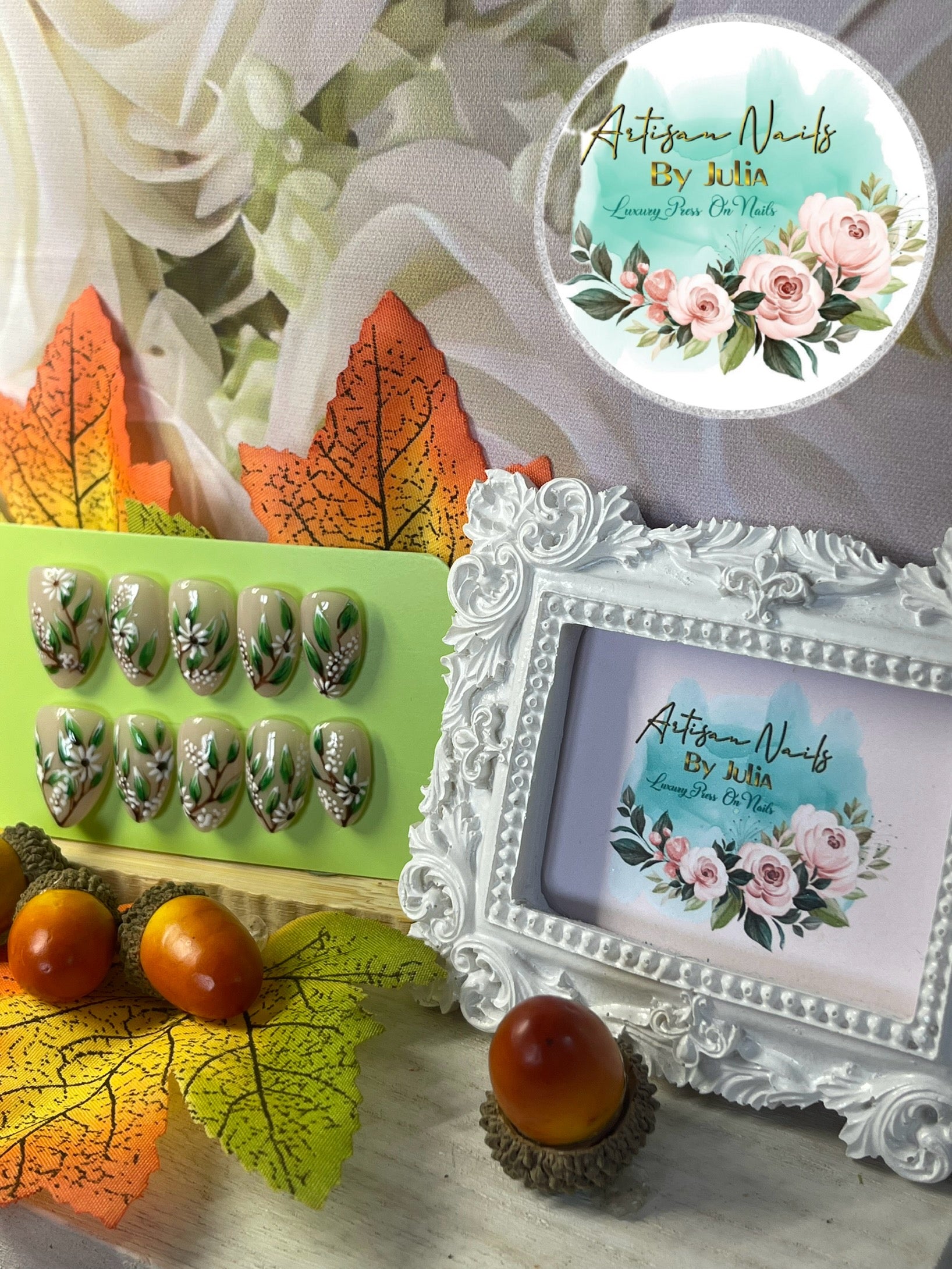 🌿 10 ongles sur mesure dans la taille et le design de votre choix.