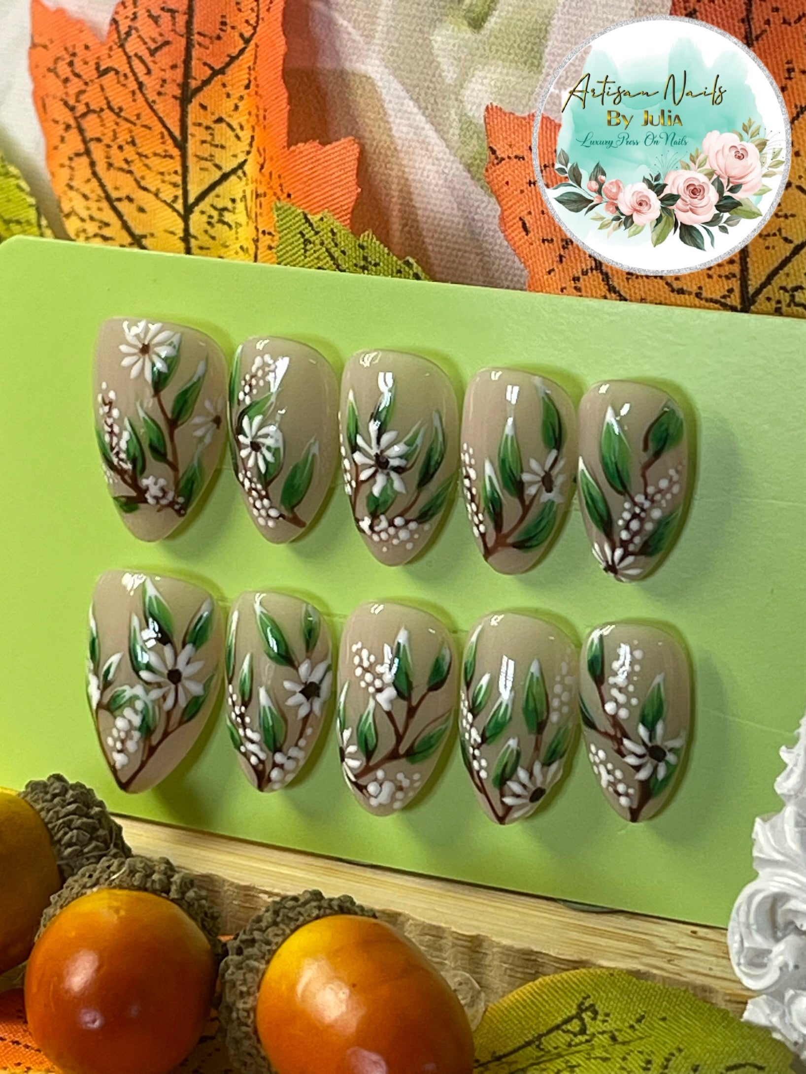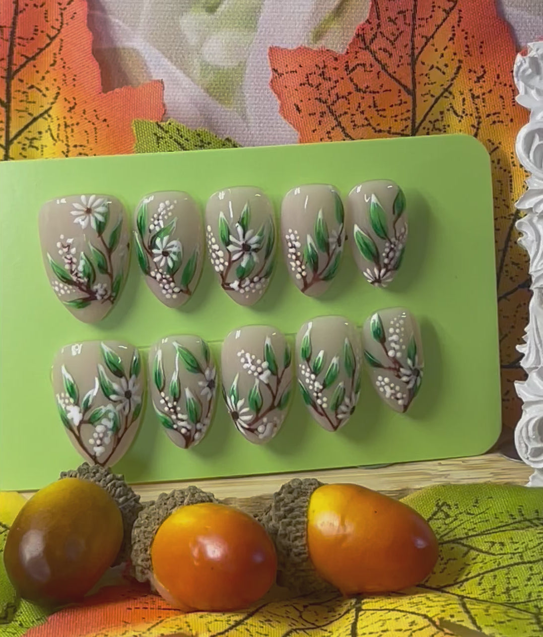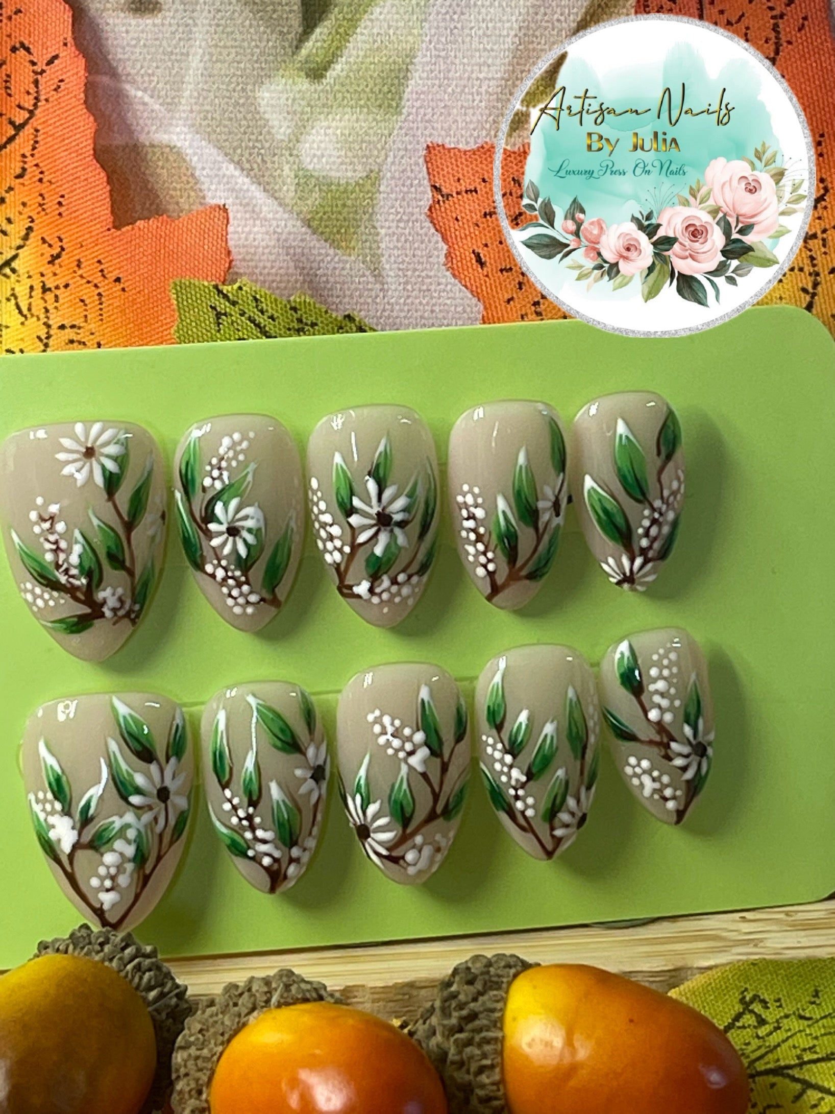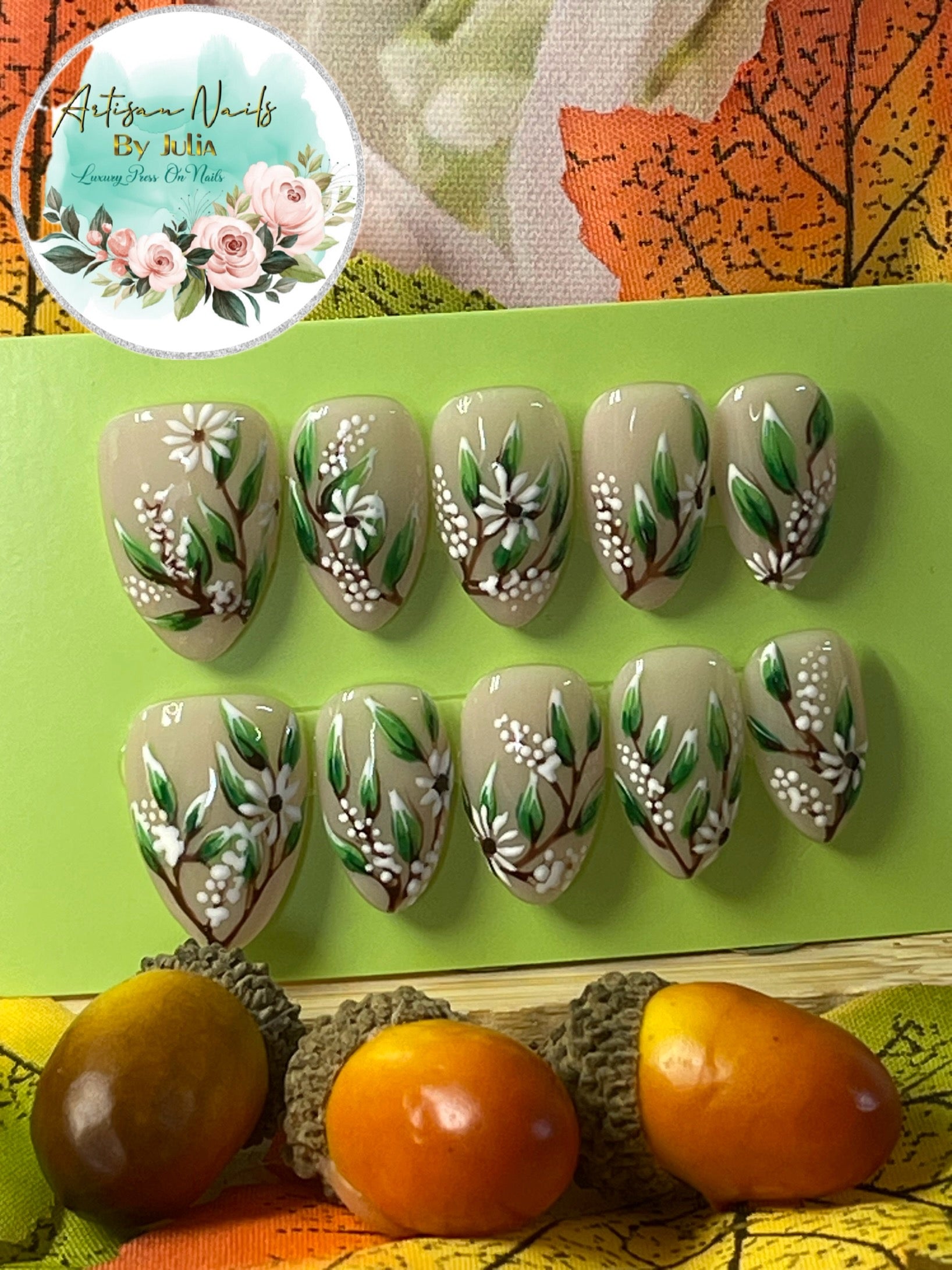 🌿 10 ongles sur mesure dans la taille et le design de votre choix.