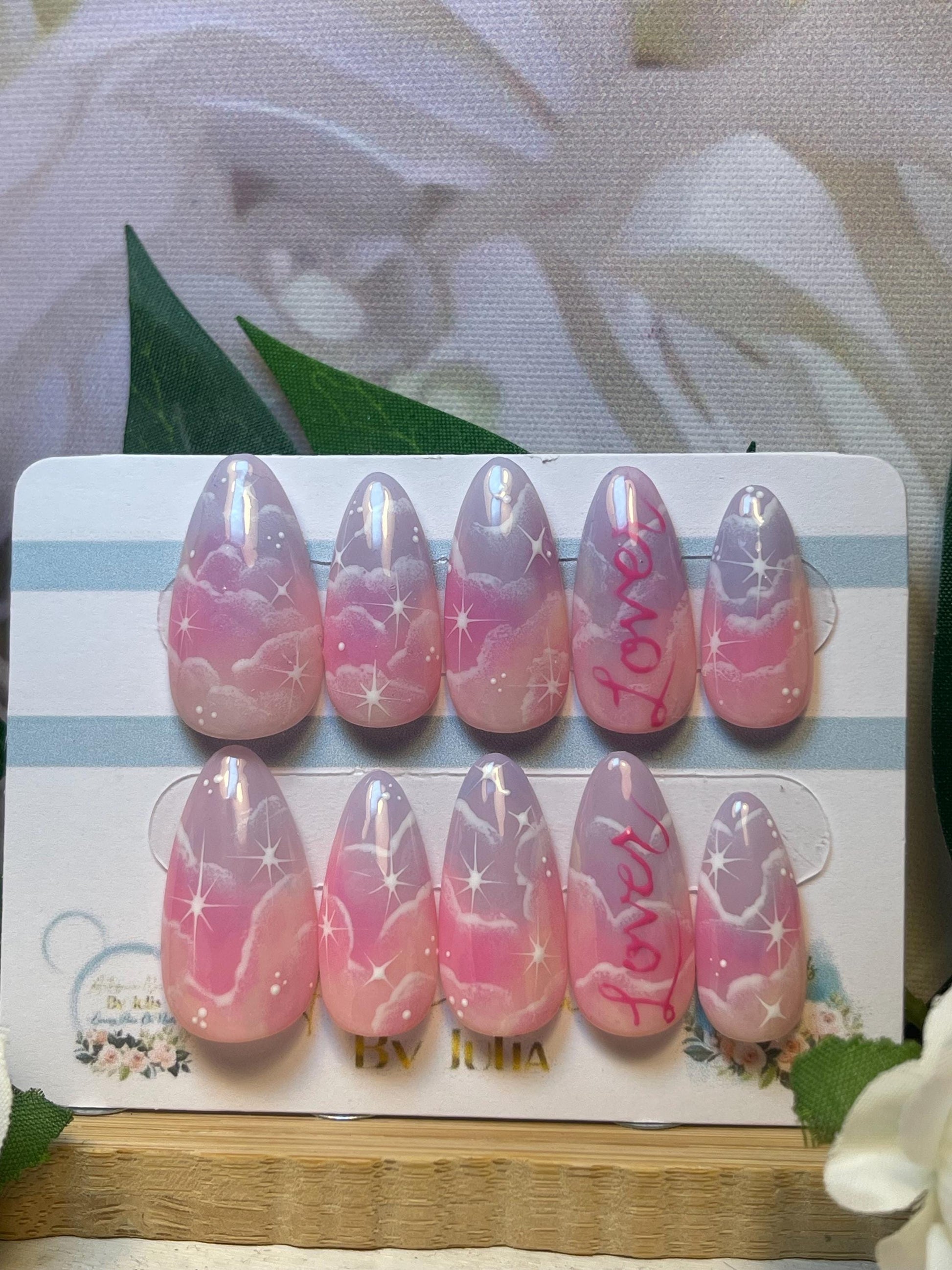 LOVER - Set of 10 Sunset Colours, Cloud & Stars Nails