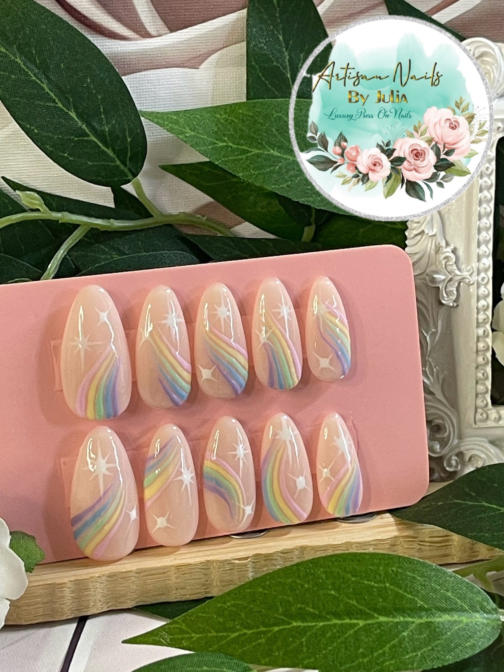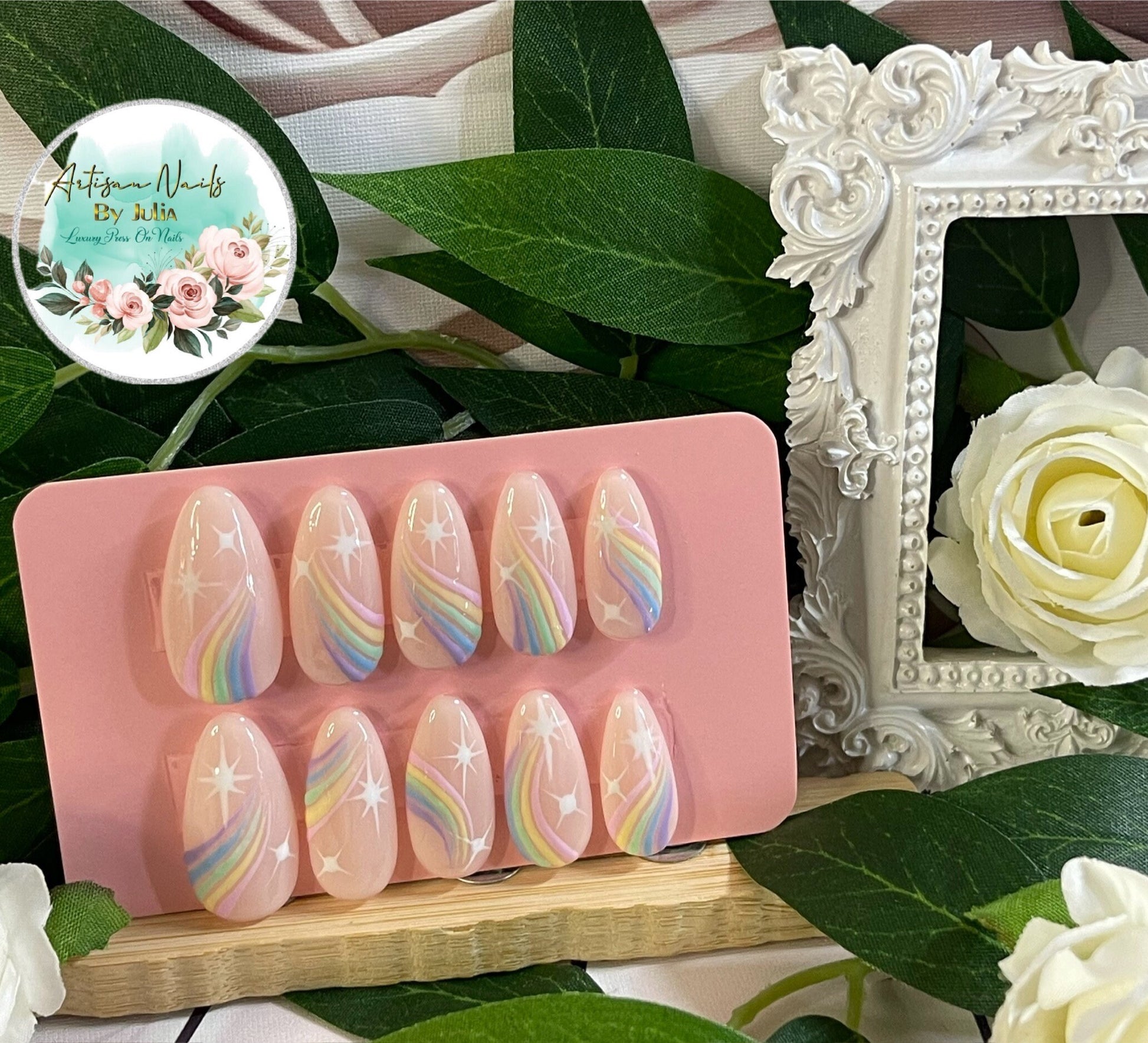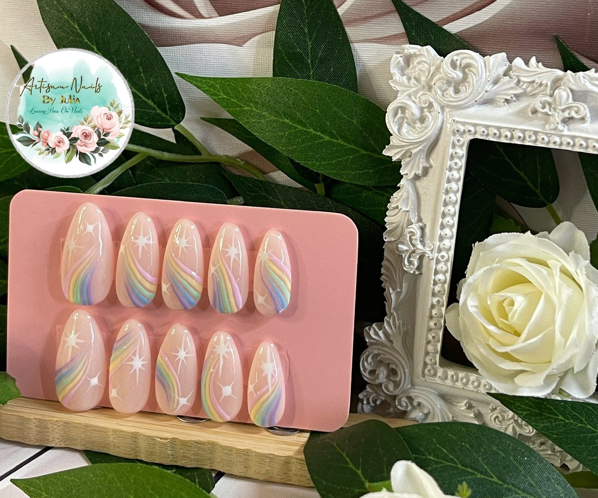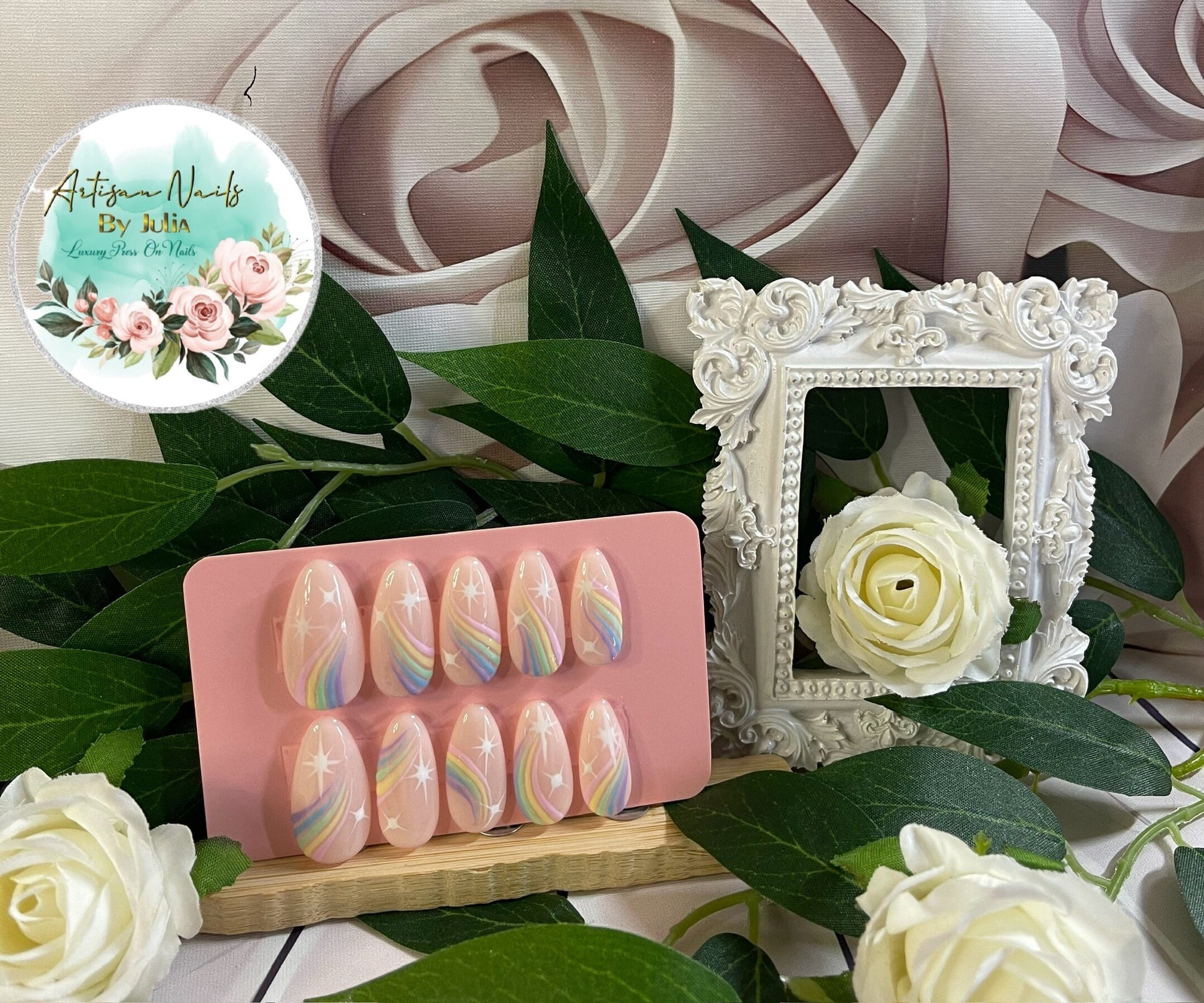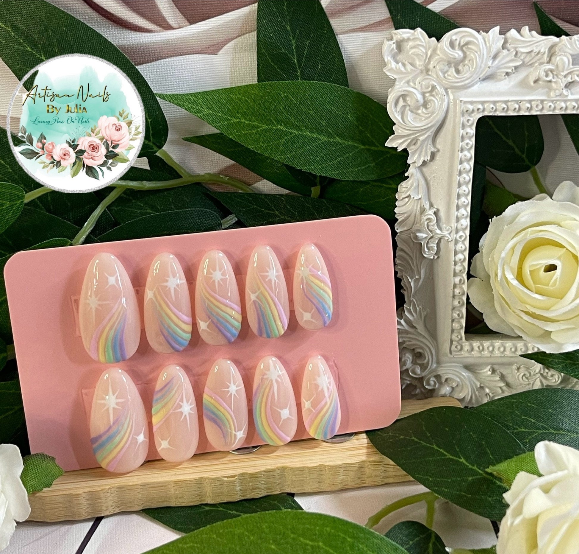 SHOOTING STAR - Set of 10 Pastel Rainbow Nails with Stars