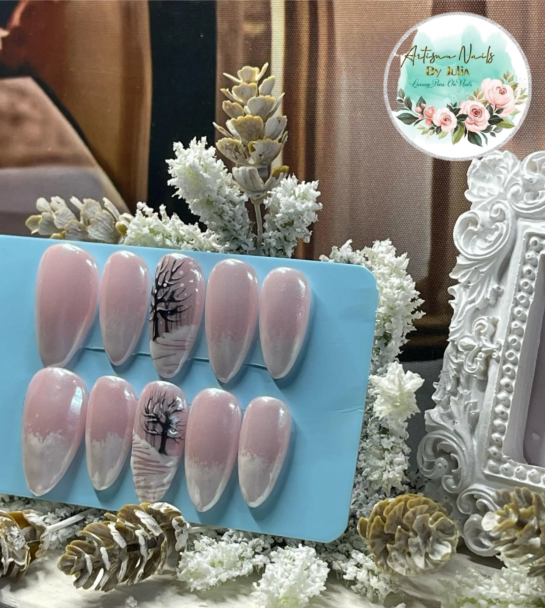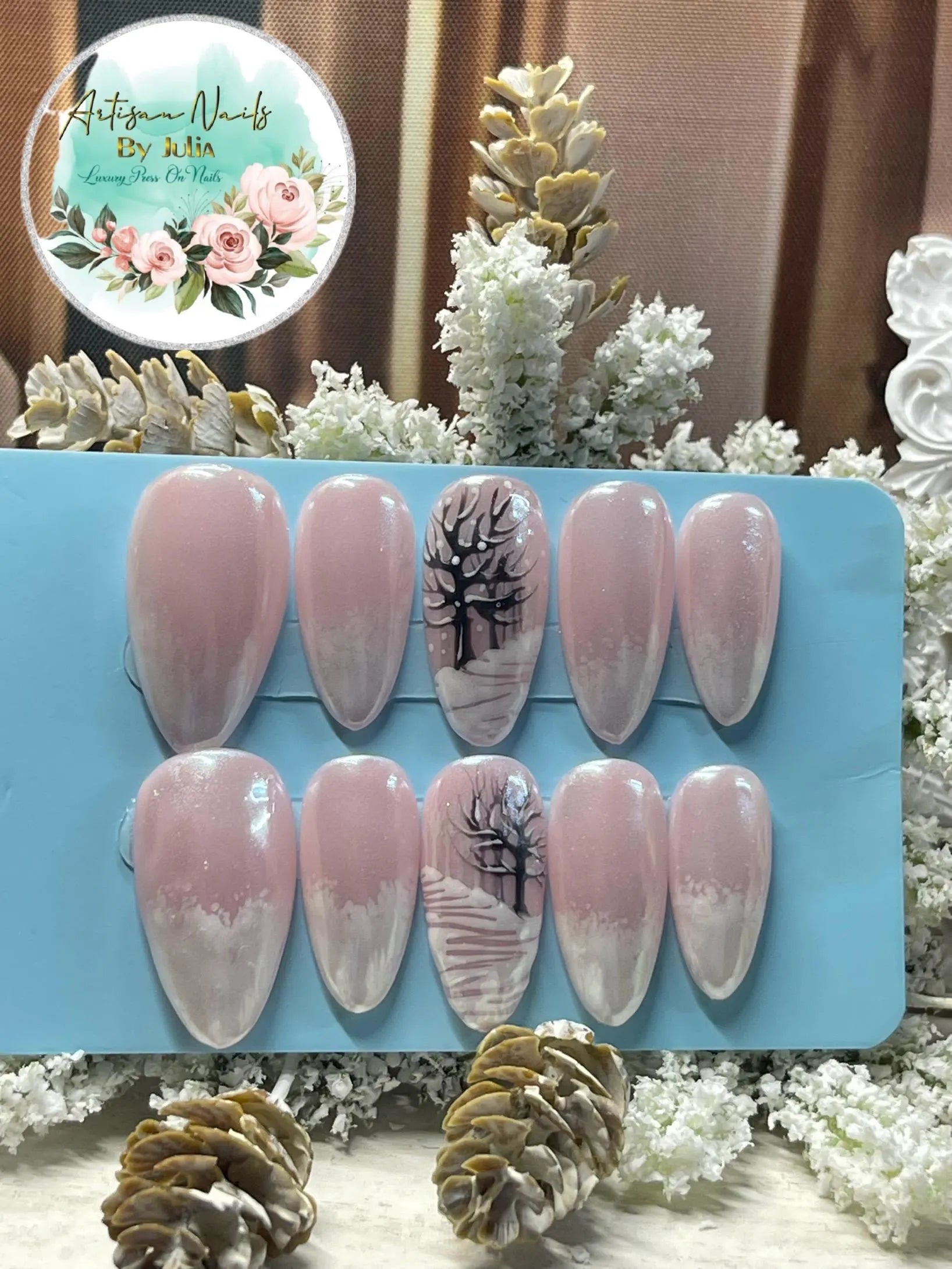🌿Ongles à coller personnalisés. 🌿Fabriqués sur commande 🌿Ongles en amande 🌿Faux ongles 🌿Ongles réutilisables 🌿Ongles carrés 🌿Ongles inspirés de l'hiver 🌿Ongles en gel 🌿Ongles longs 🌿Ongles cercueil 🌿Ongles flocon de neige 🌿Couleurs hivernales atténuées 🌿Ongles d'hiver 🌿