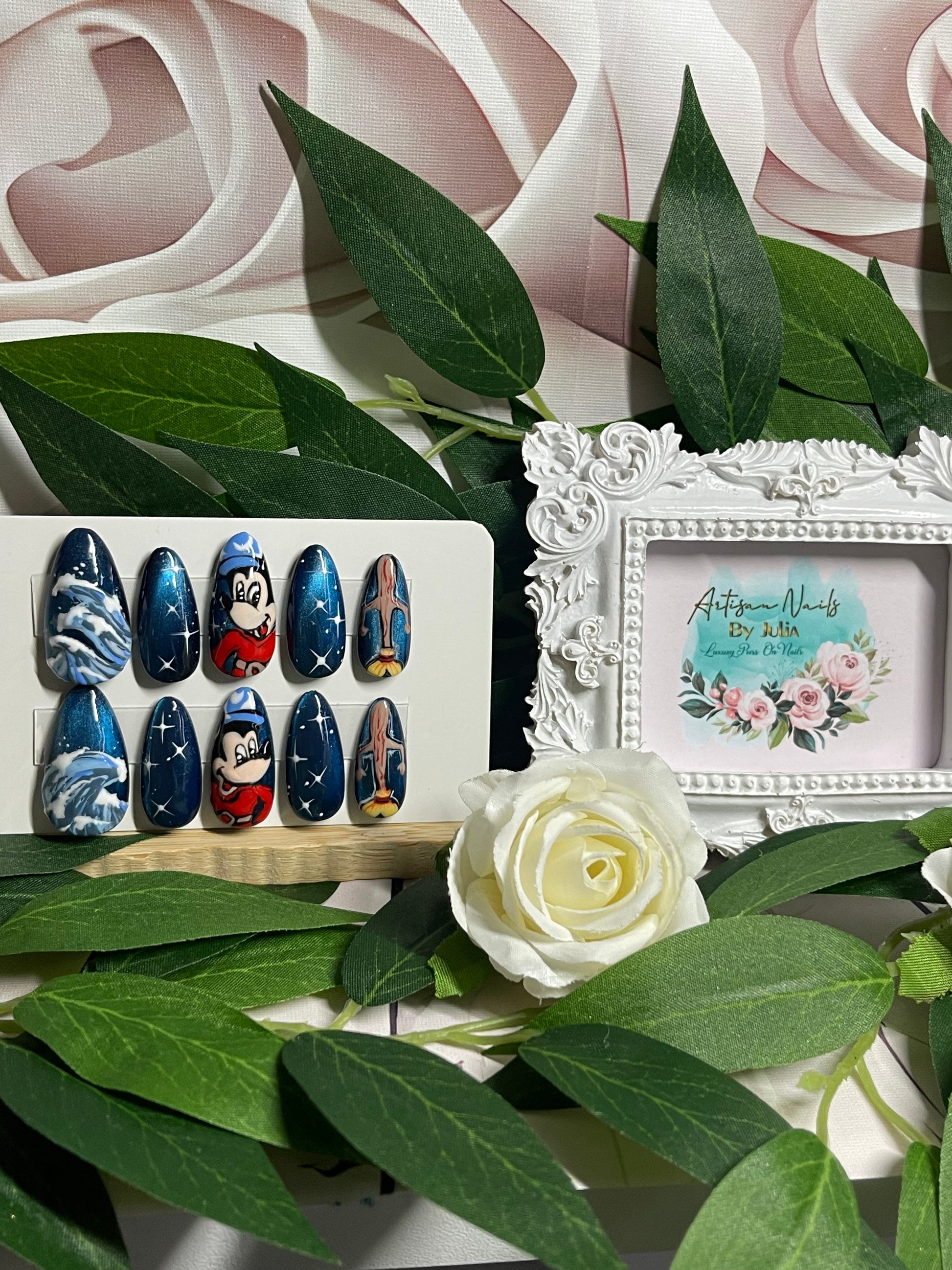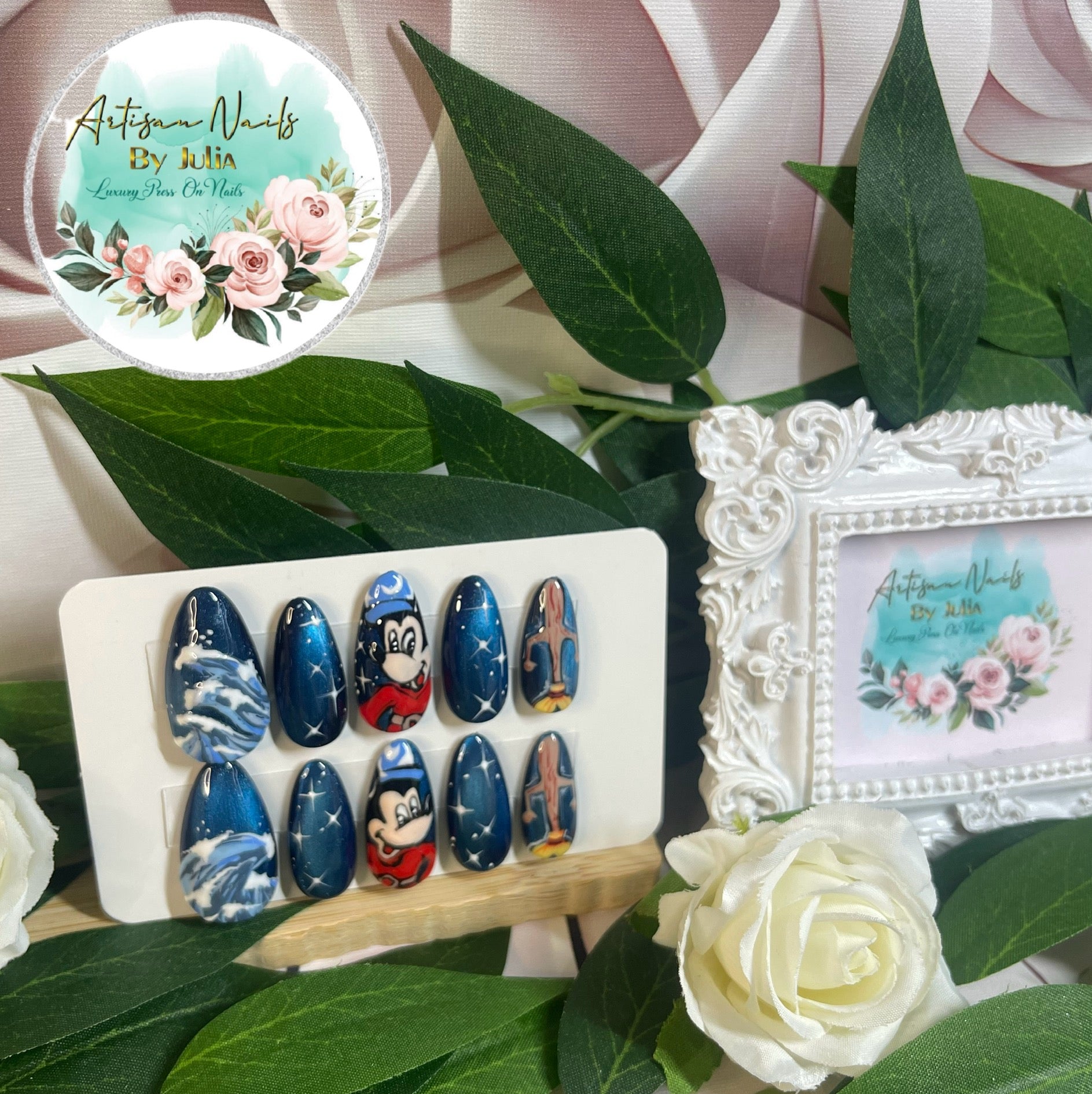 L'APPRENTI SORCIER - Gel Press on Nails - Lot de 10 ongles inspirés de Fantasia - Fabriqués sur commande