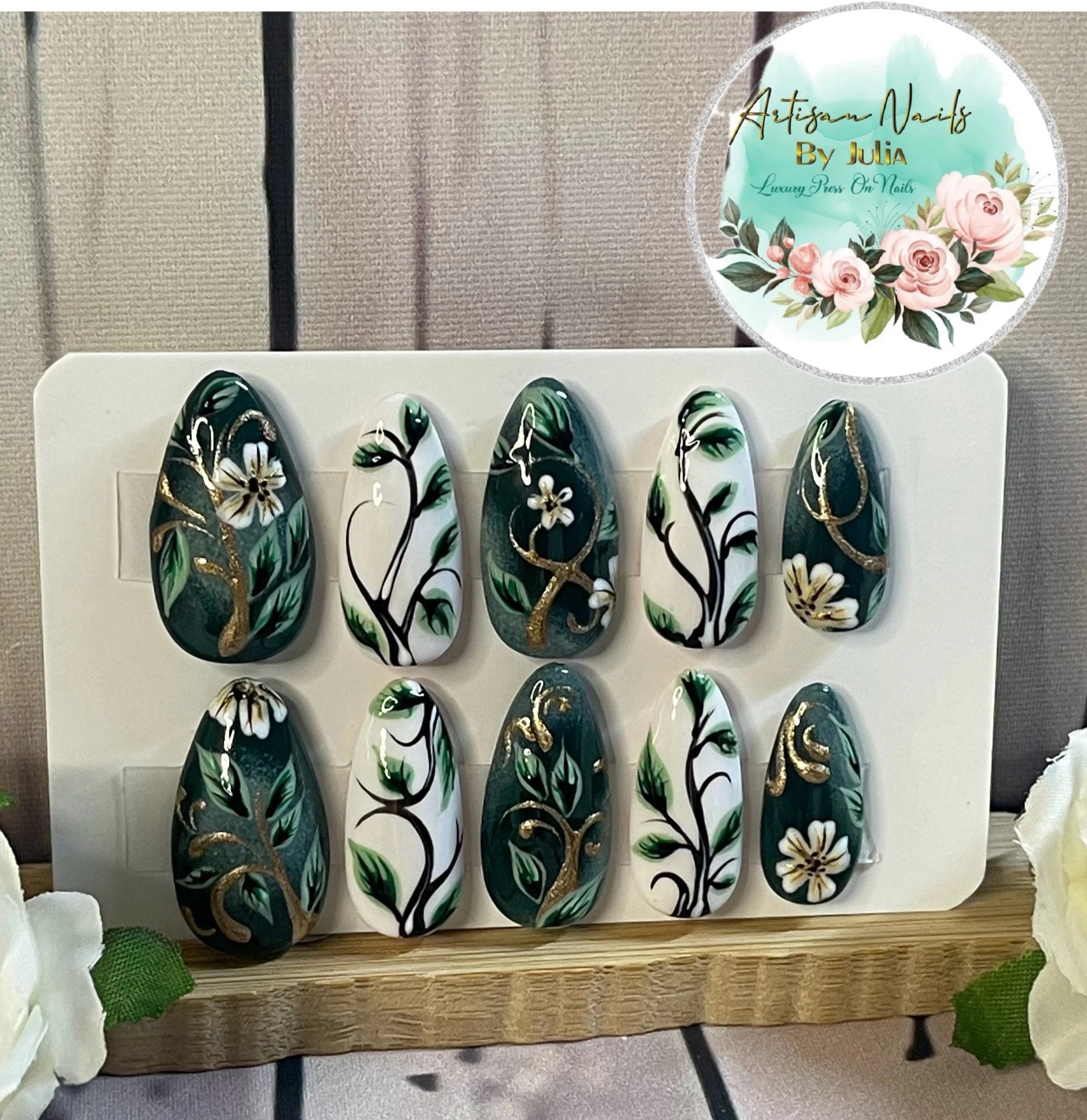 ETHEREAL - Set of 10 Vine Painted Nails