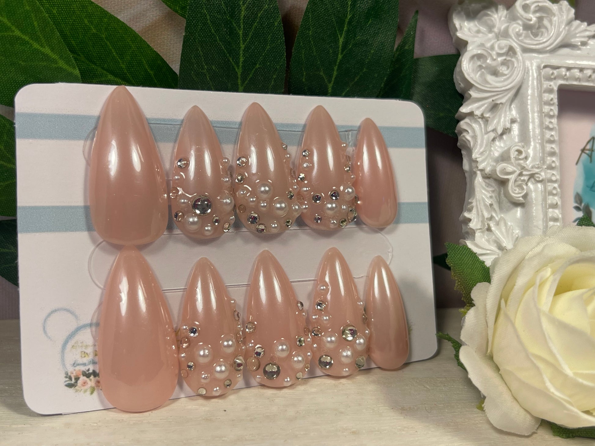 BEJEWELLED - Set of 10 Glazed Pearl & Diamond Nails