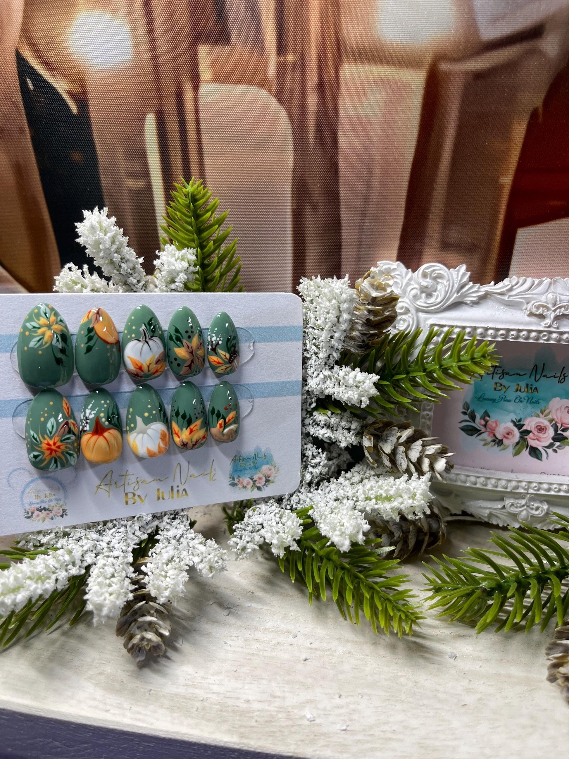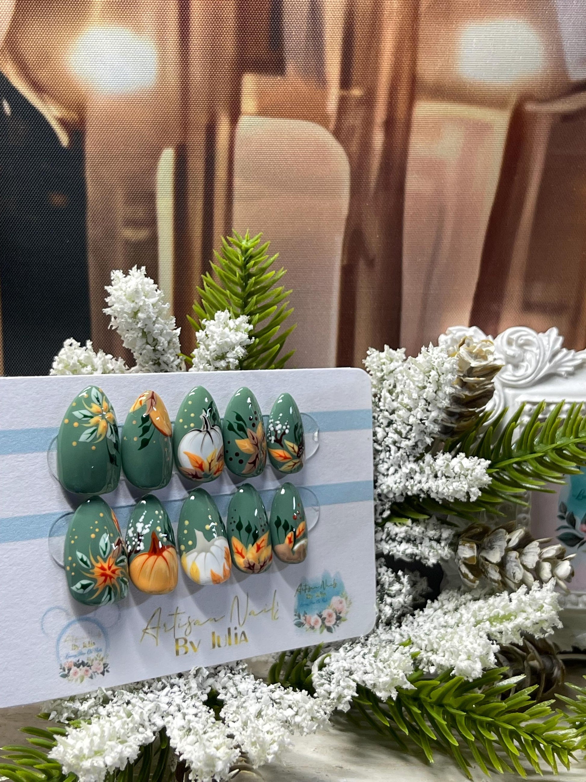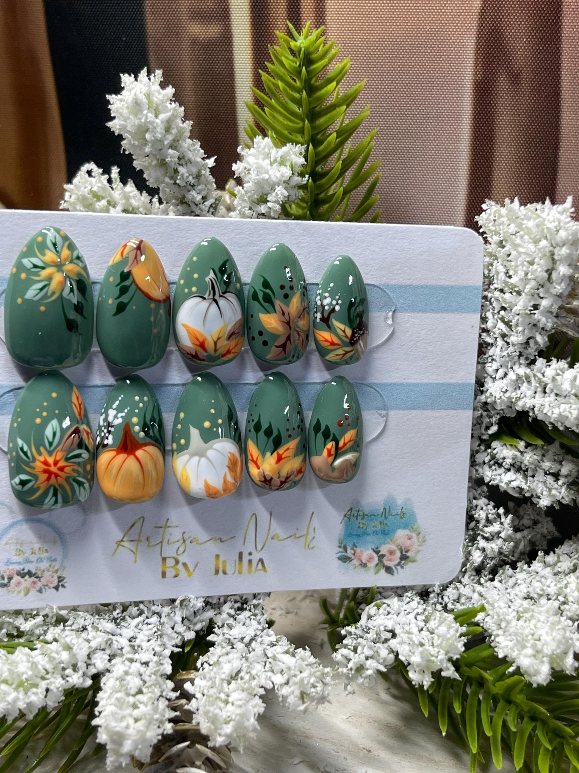 THANKFUL - Set of 10 Thanksgiving Pumpkin Nails in Fall colours