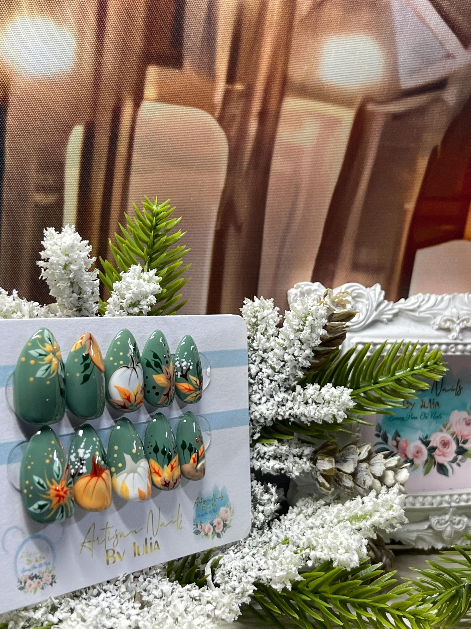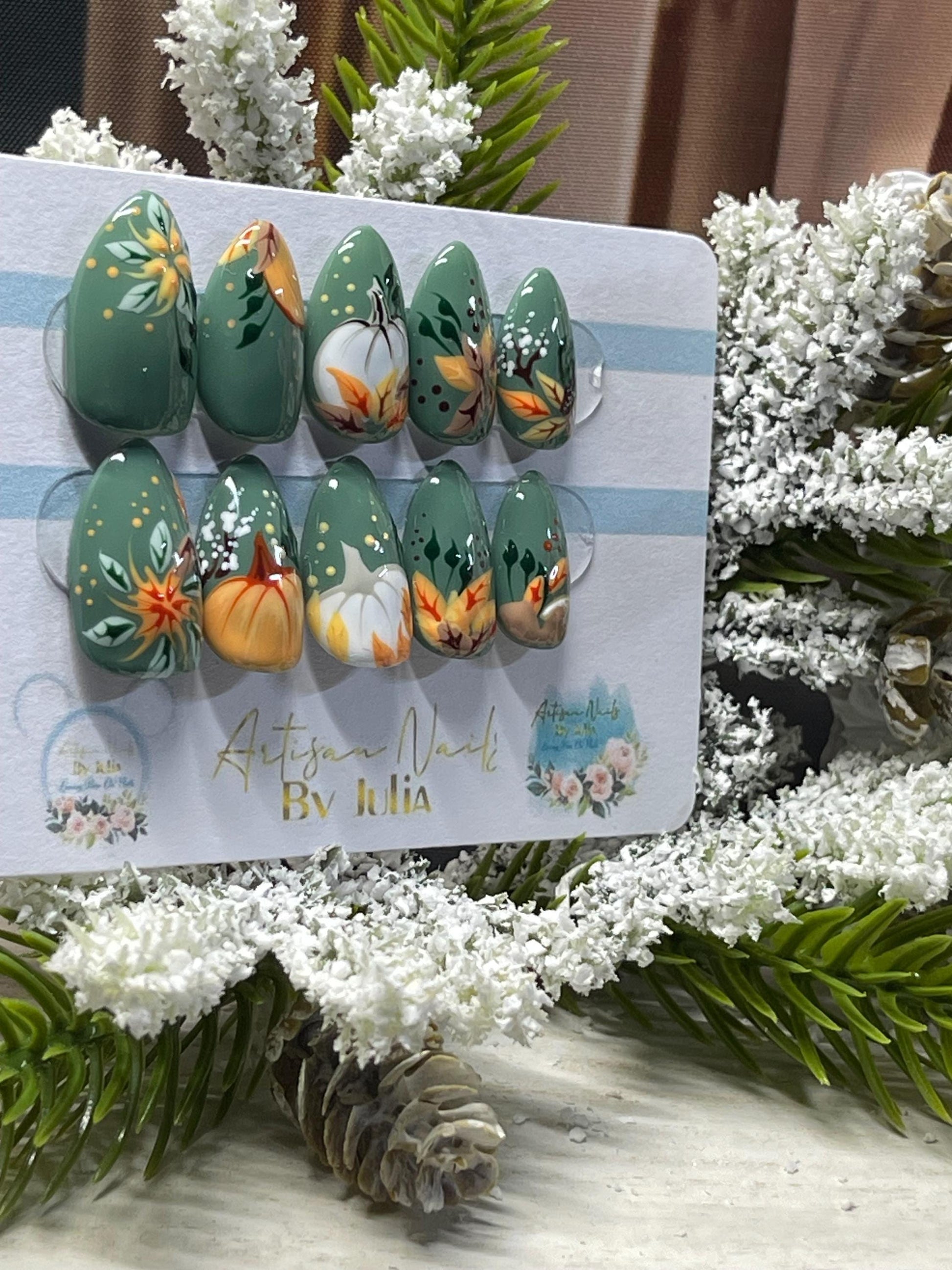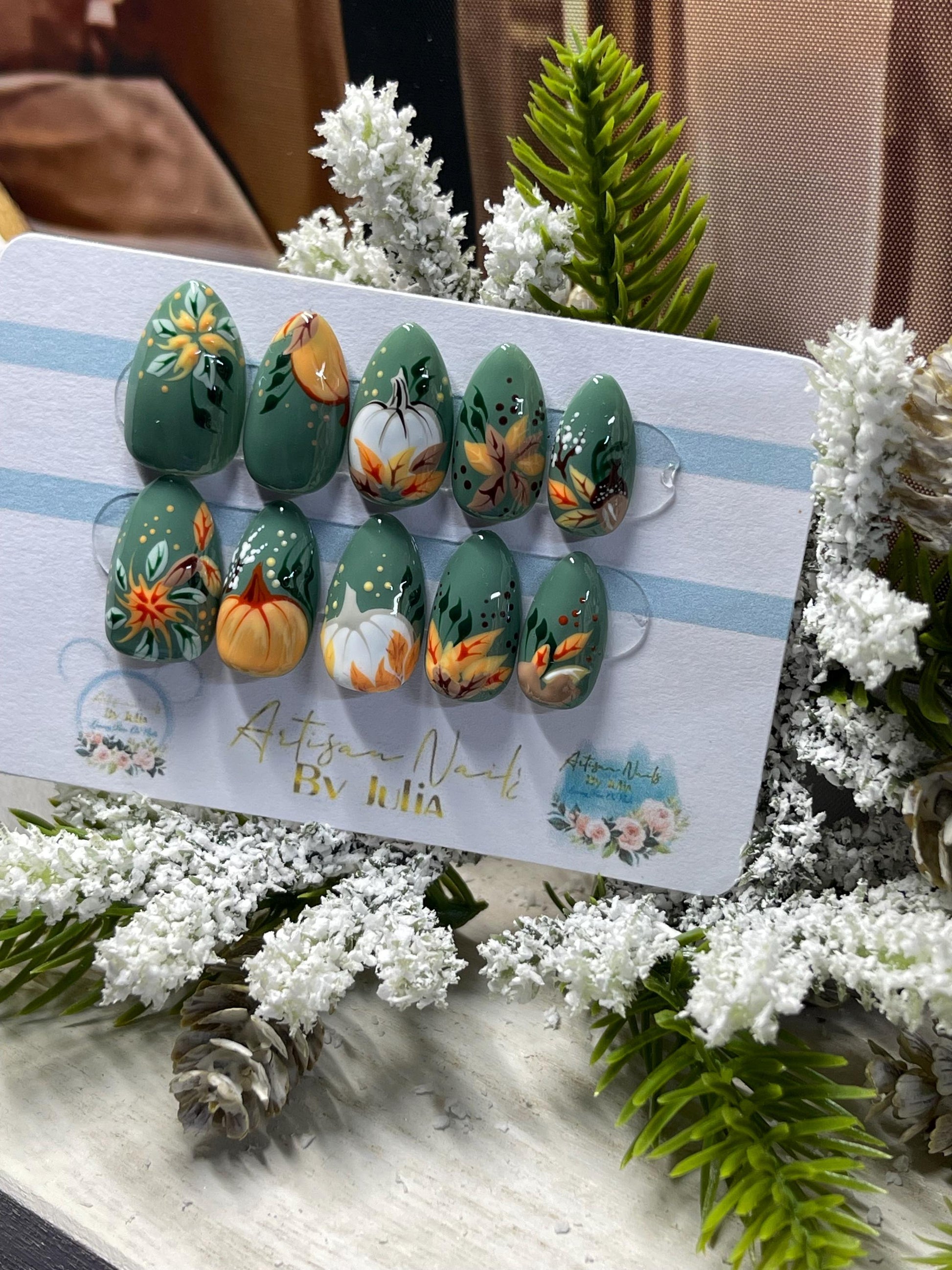THANKFUL - Set of 10 Thanksgiving Pumpkin Nails in Fall colours
