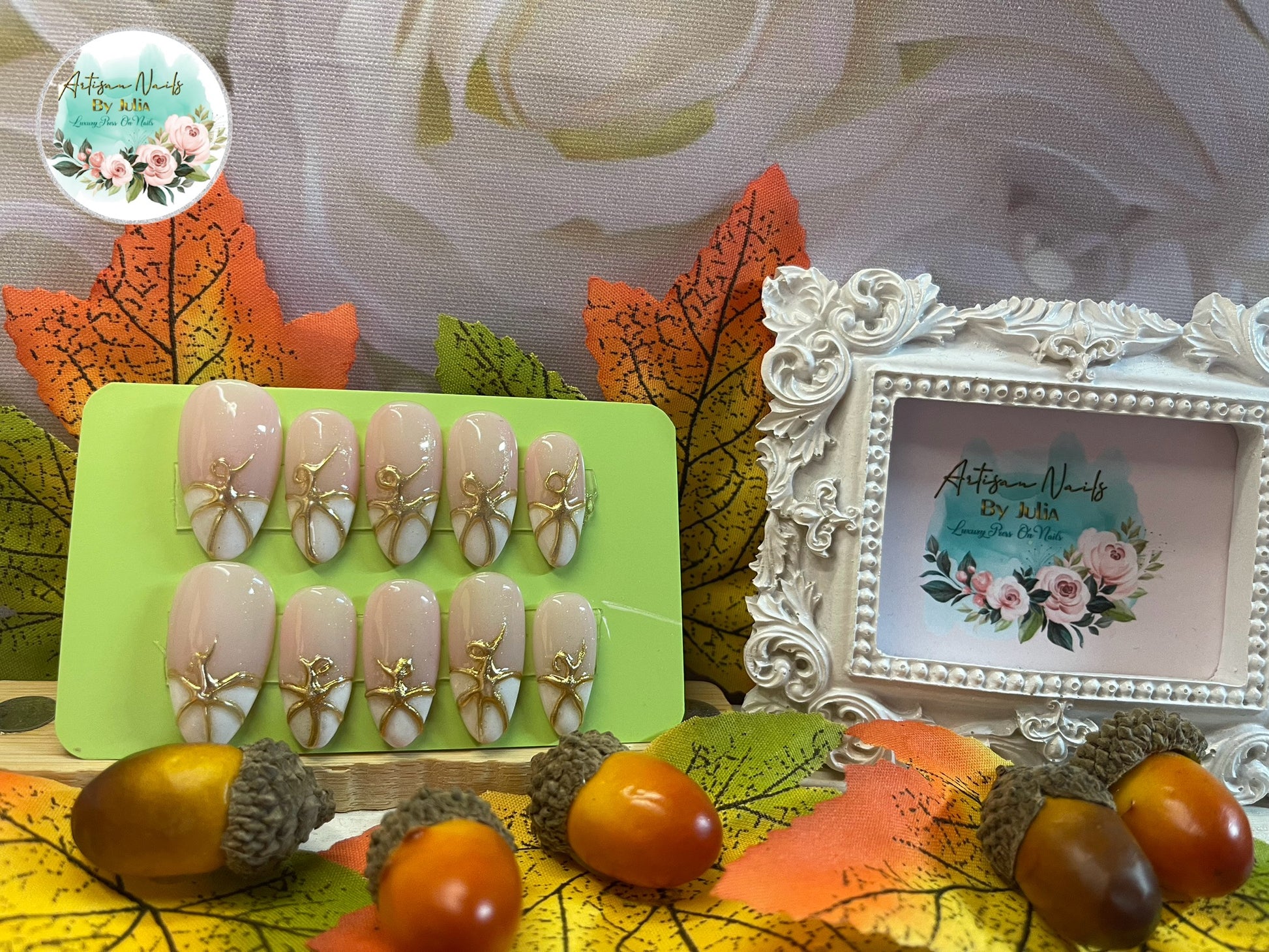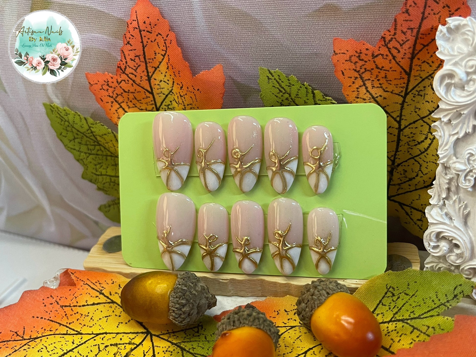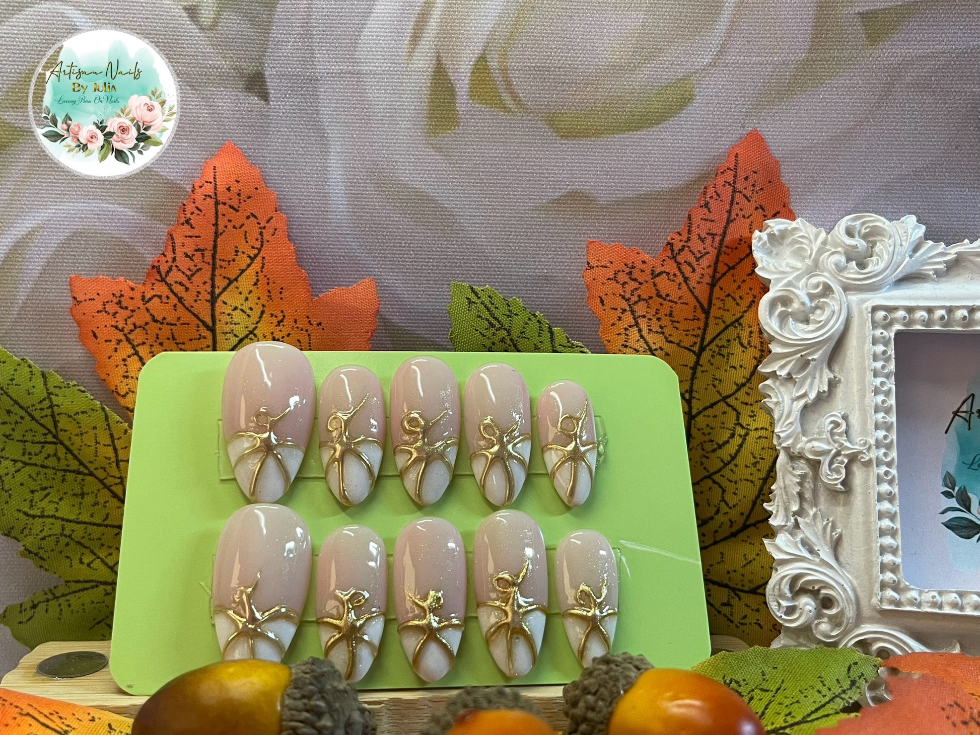 WHITE PUMPKIN - Set of 10 White and Gold Pumpkin Tip Nails