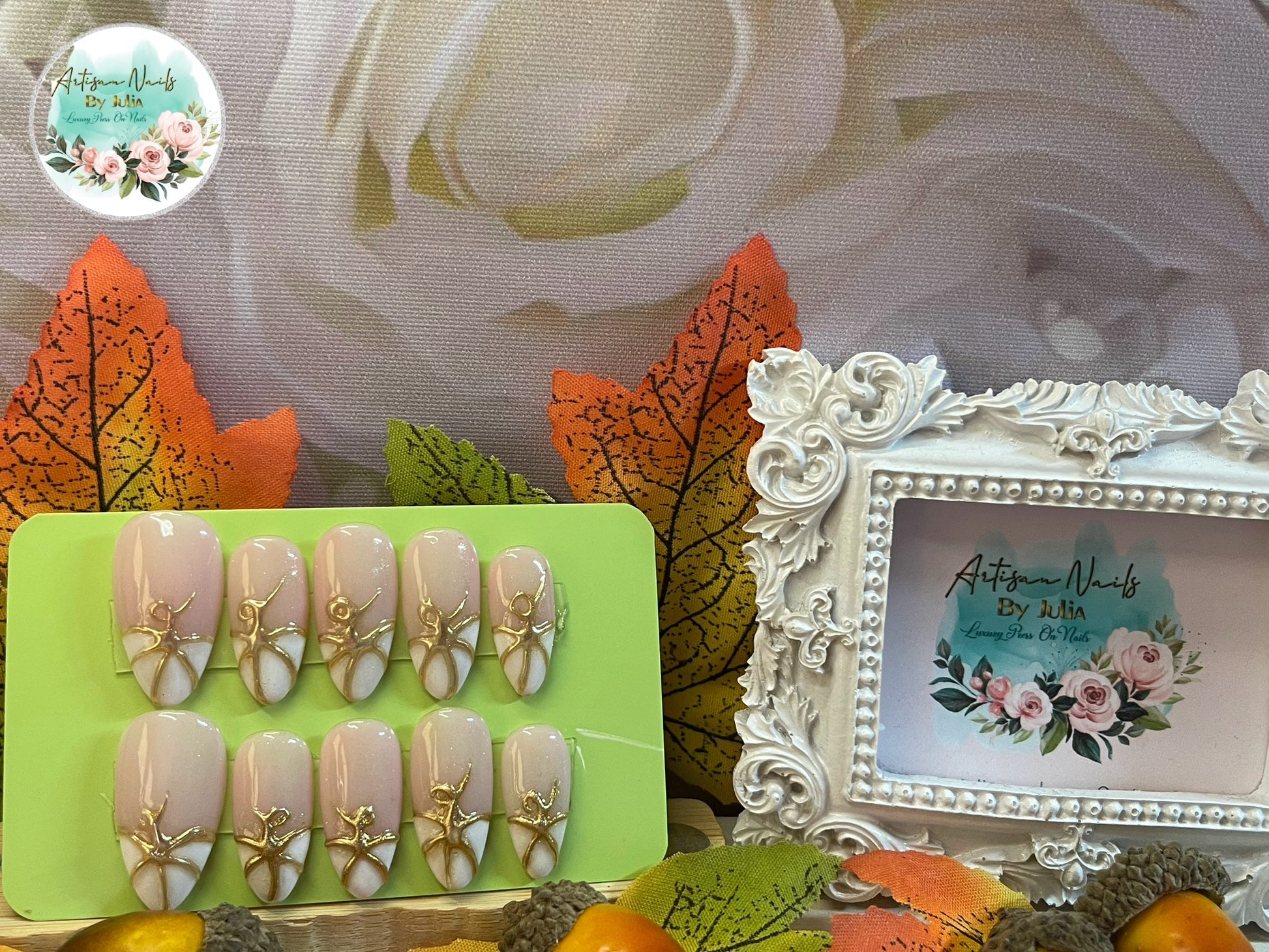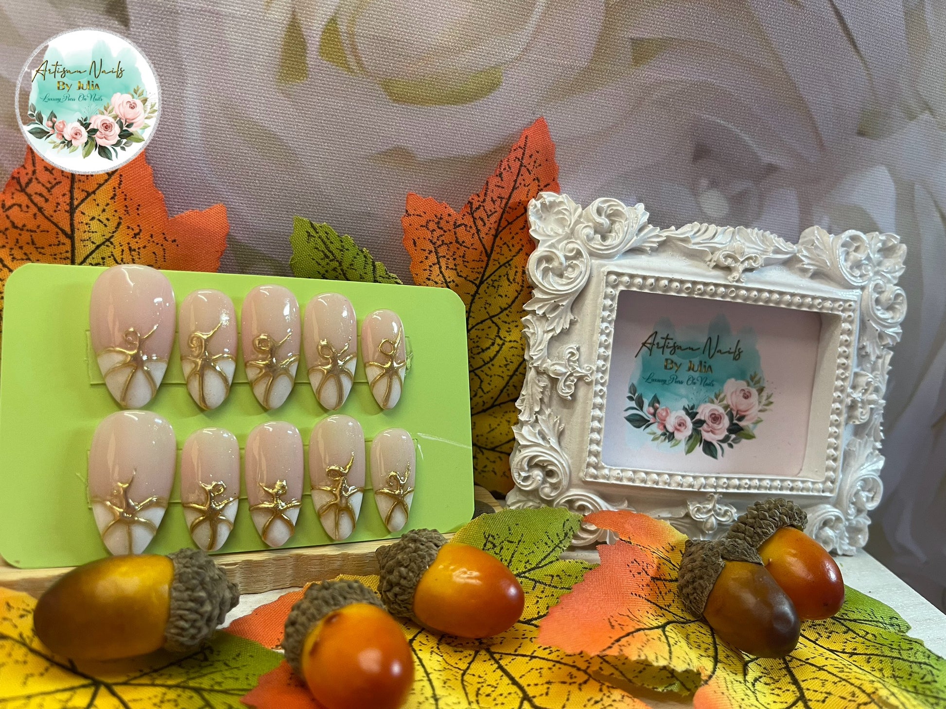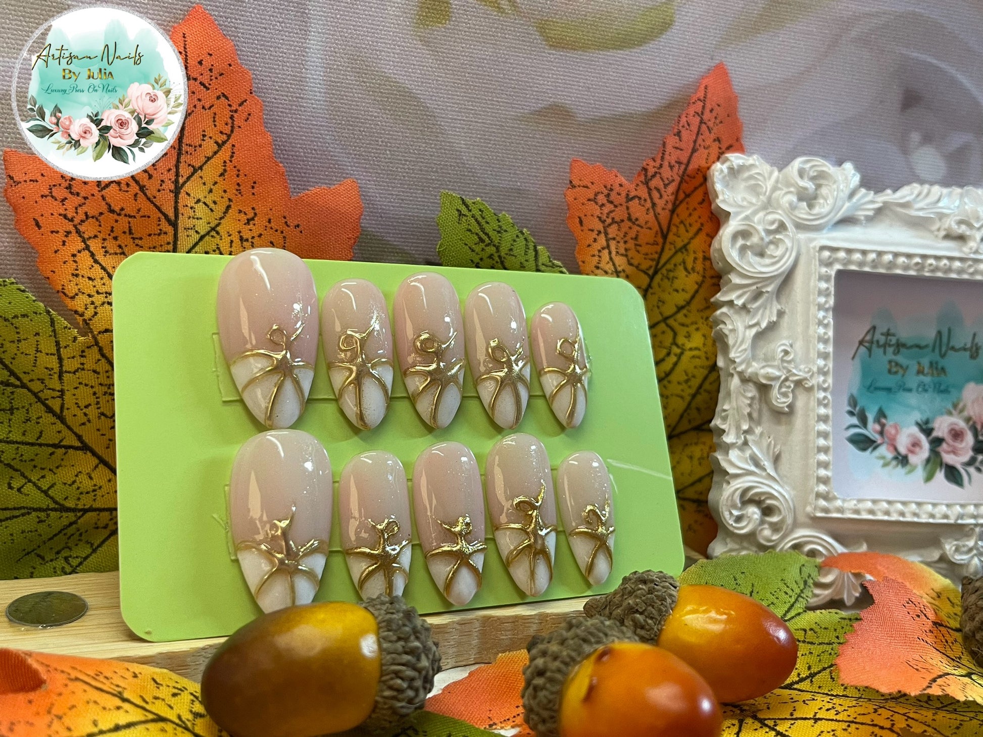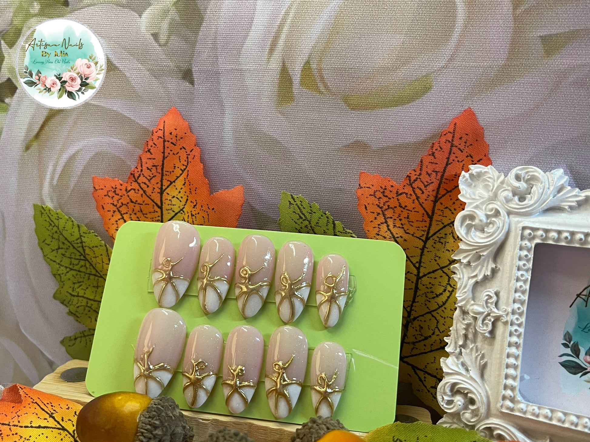 WHITE PUMPKIN - Set of 10 White and Gold Pumpkin Tip Nails
